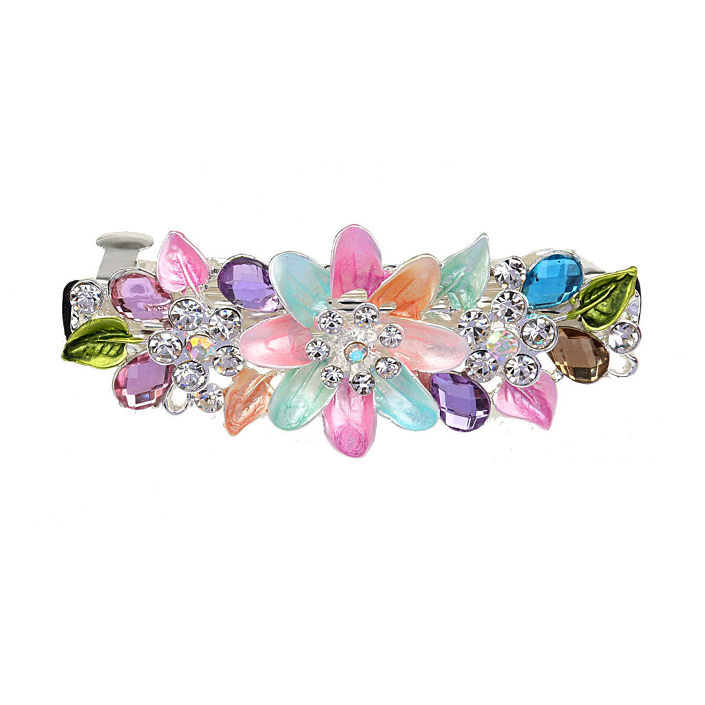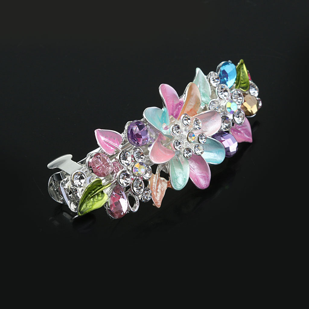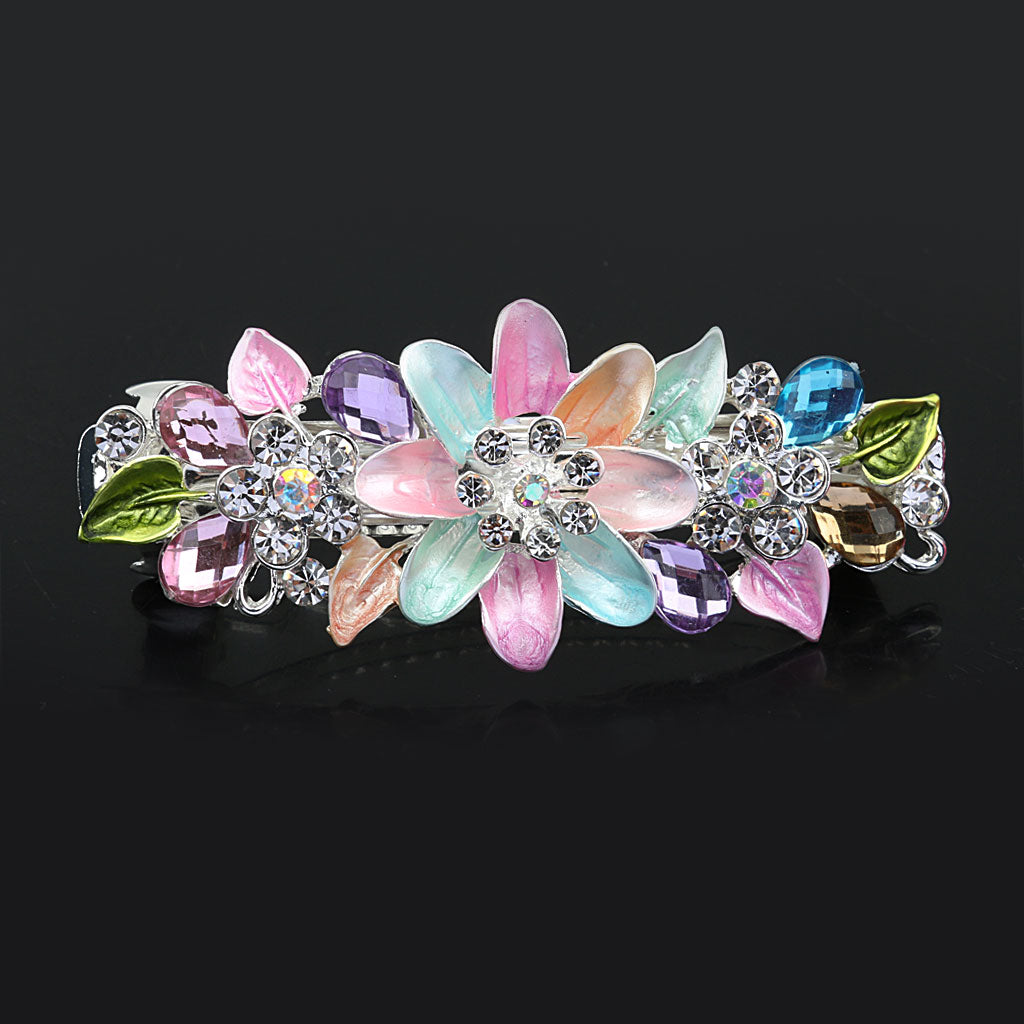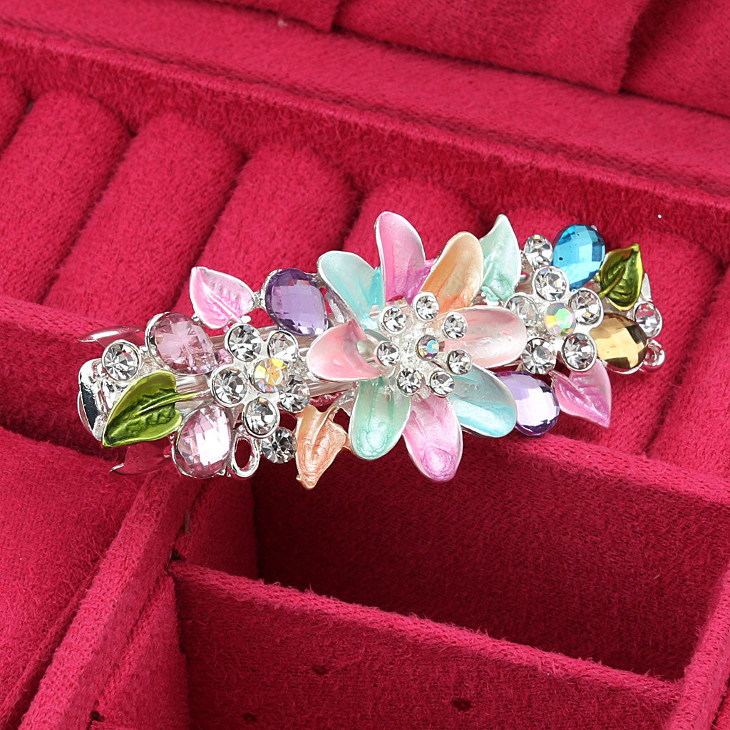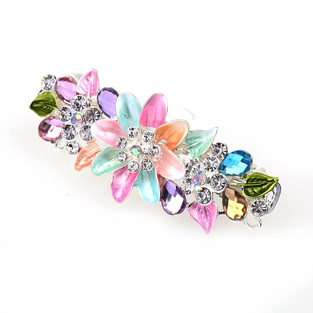 Fashion Flower Full Crystal Rhinestones Barrette Hair Clip Hairpin Colorful