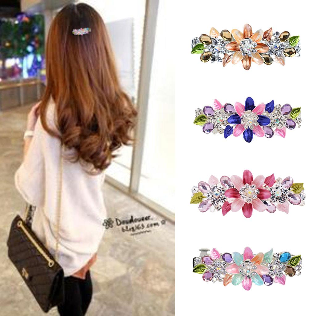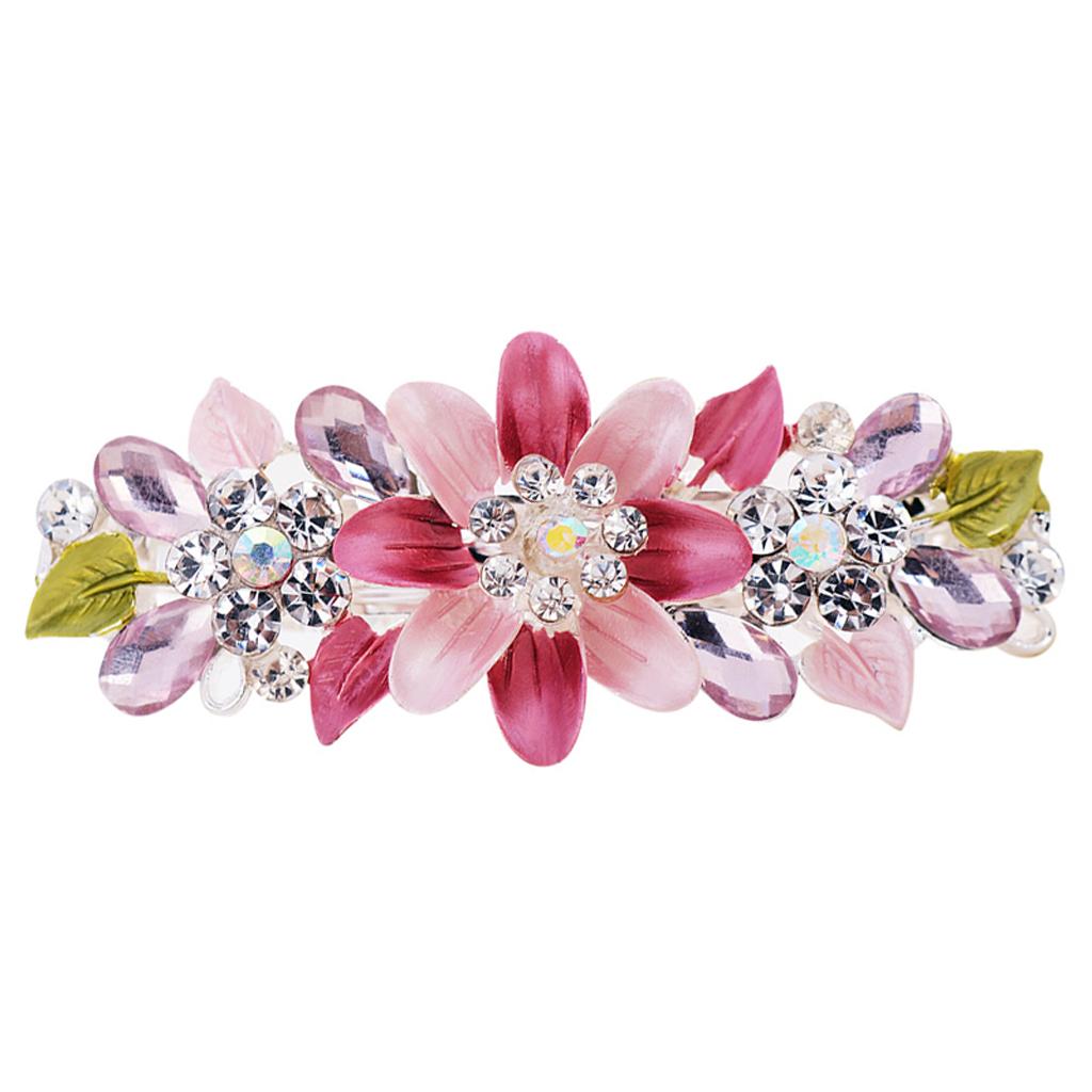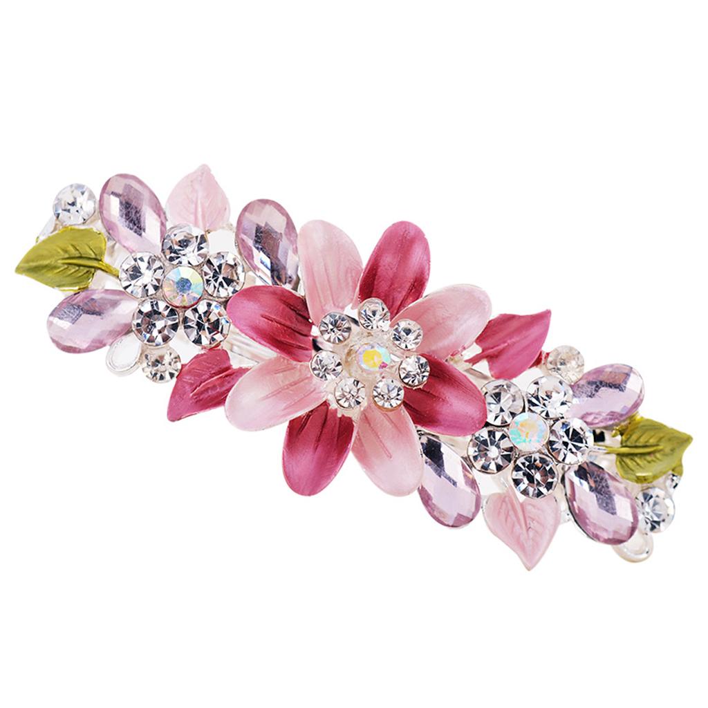 Fashion Girl Flower Full Crystal Rhinestones Barrette Hair Clip Hairpin Rose