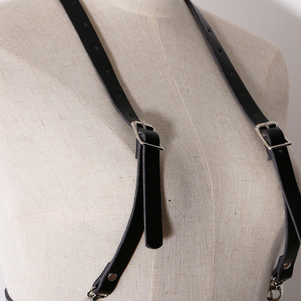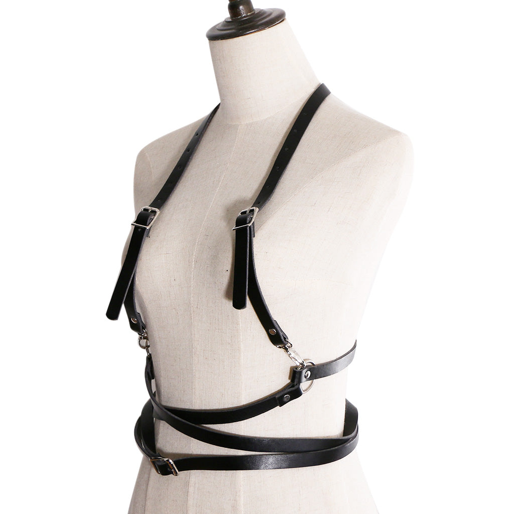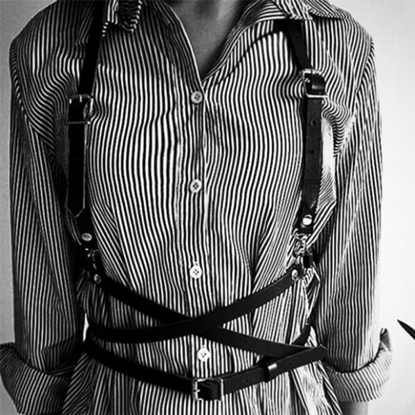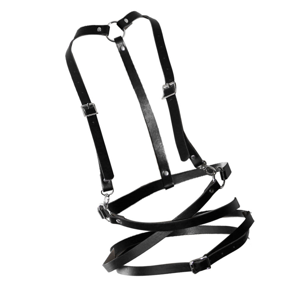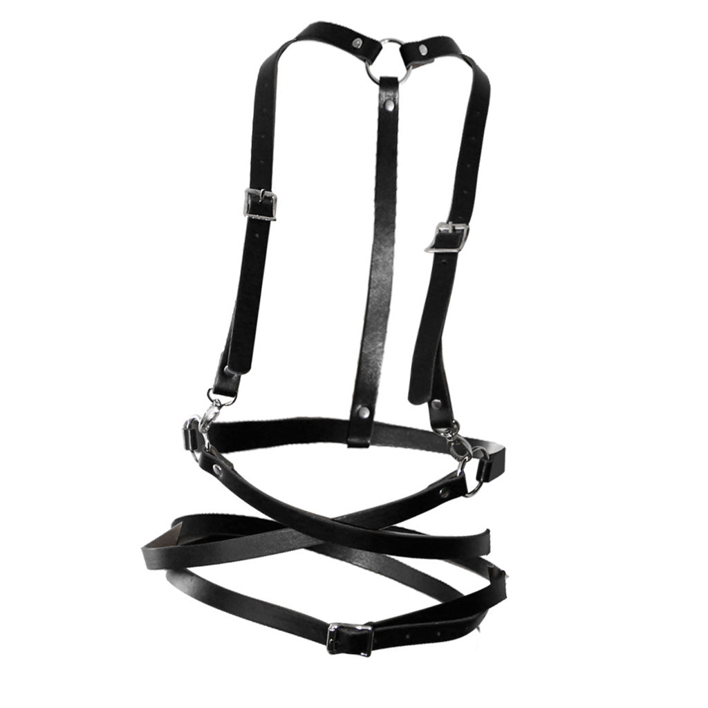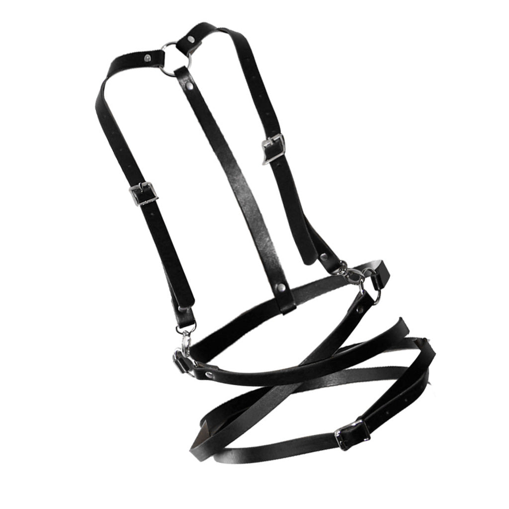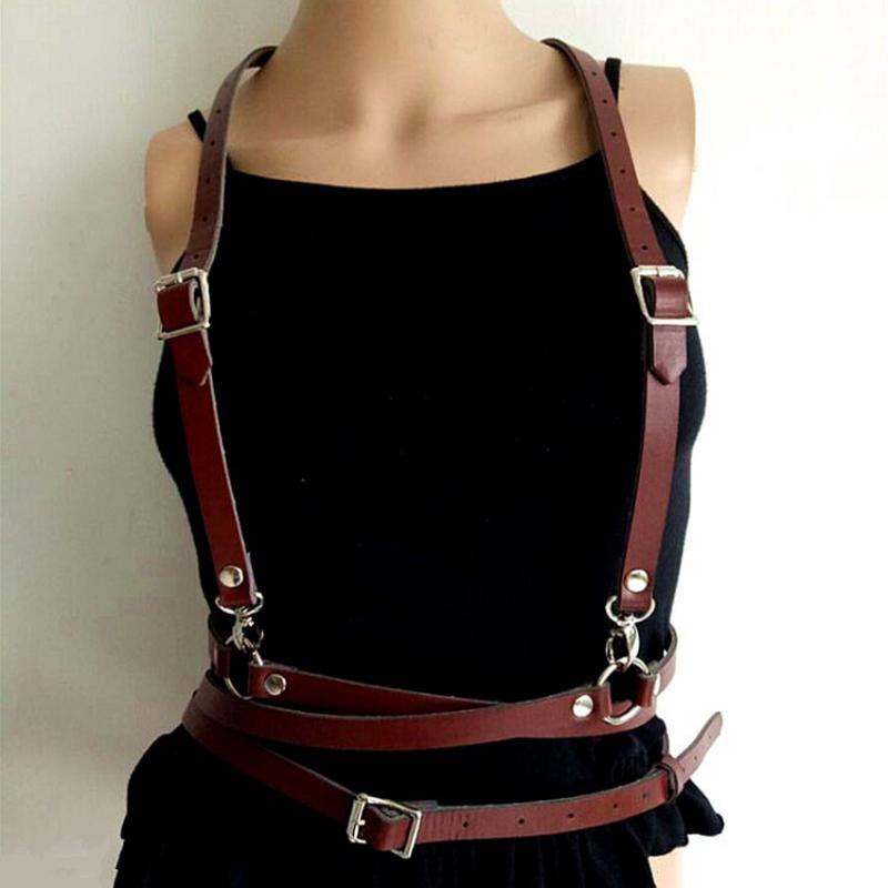 Fashion Women Faux Leather Adjustable Body Suspenders Harness Belt Lightweight