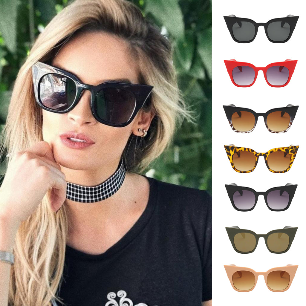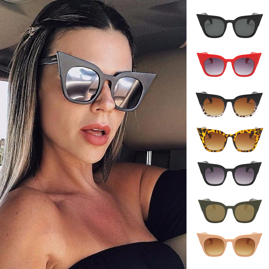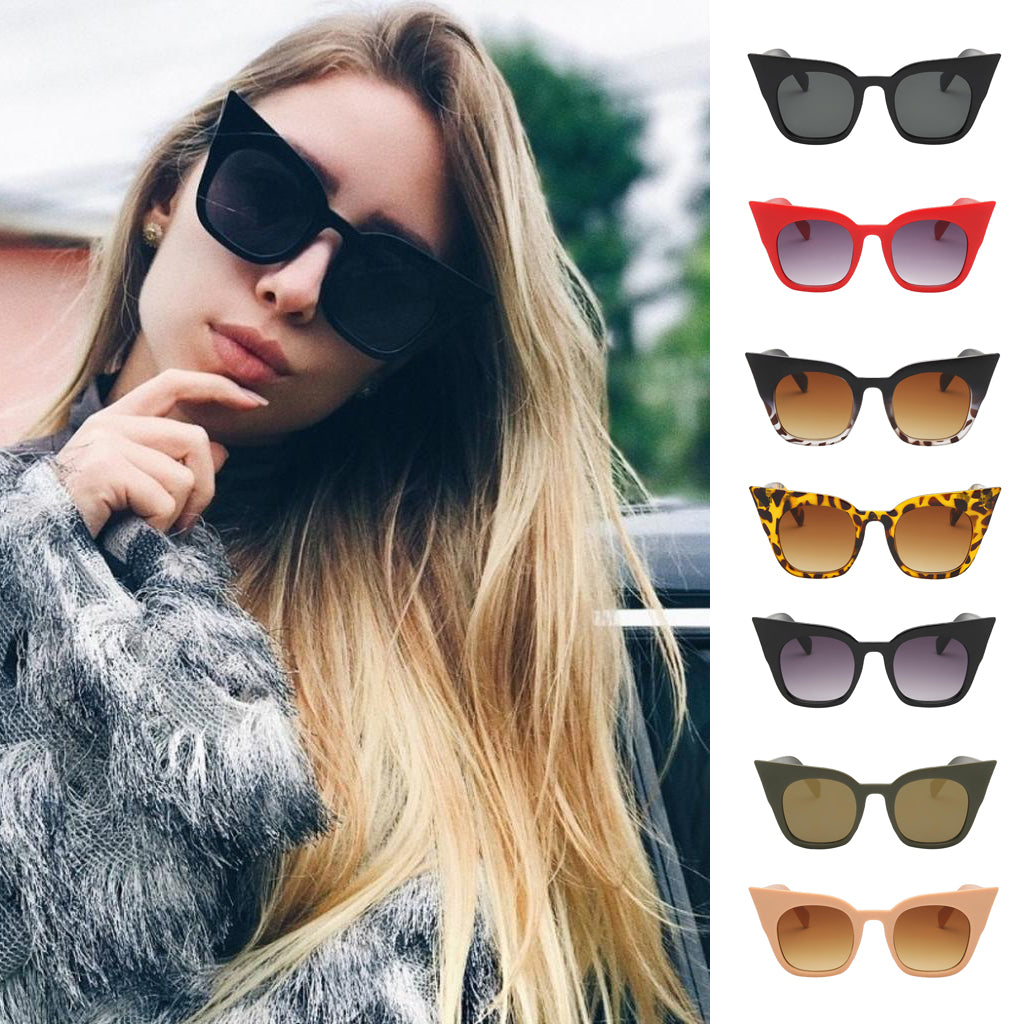 Fashion Women Men UV400 Cat Eye Frame Sunglasses Red Frame Gradient Gray Lens