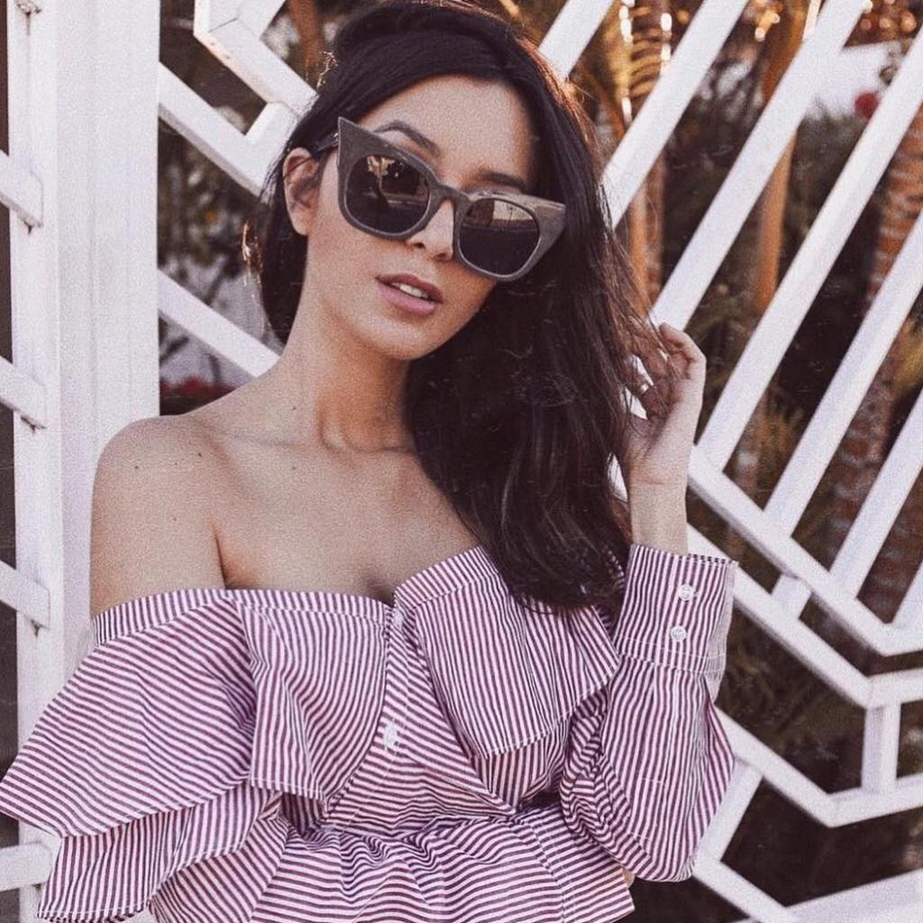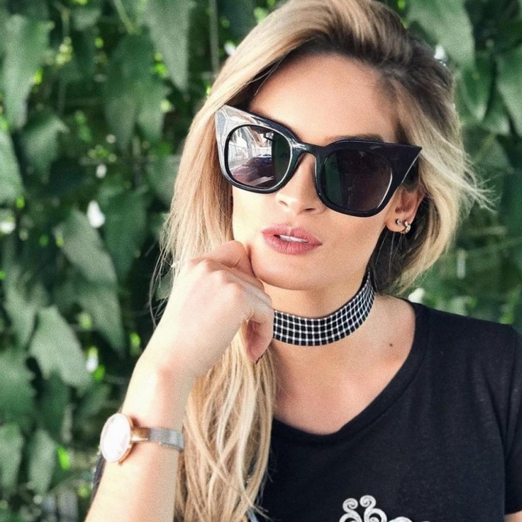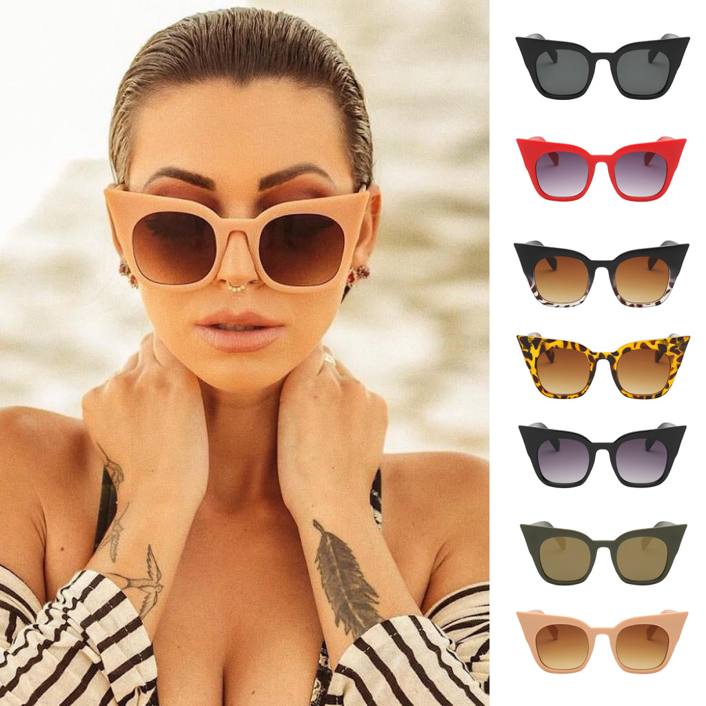Fashion Women Men UV400 Cat Eye Frame Sunglasses Red Frame Gradient Gray Lens