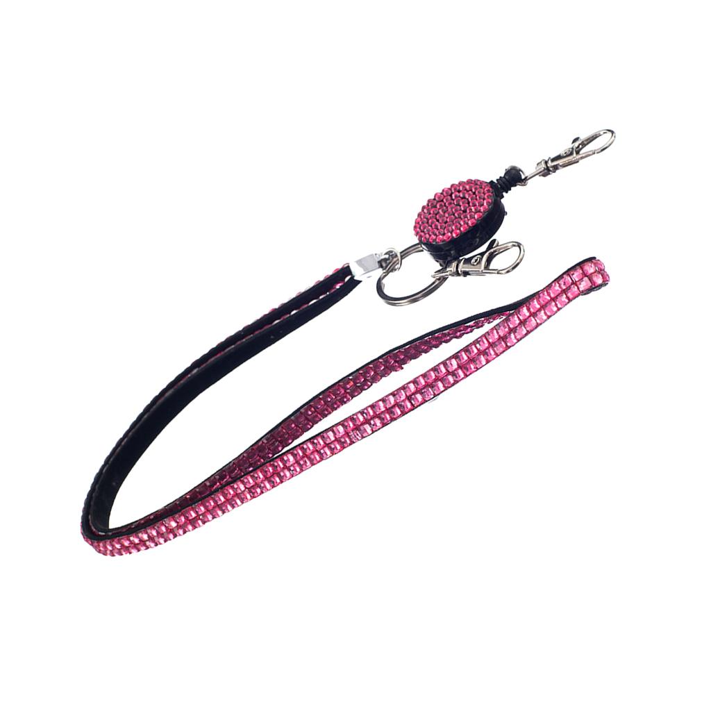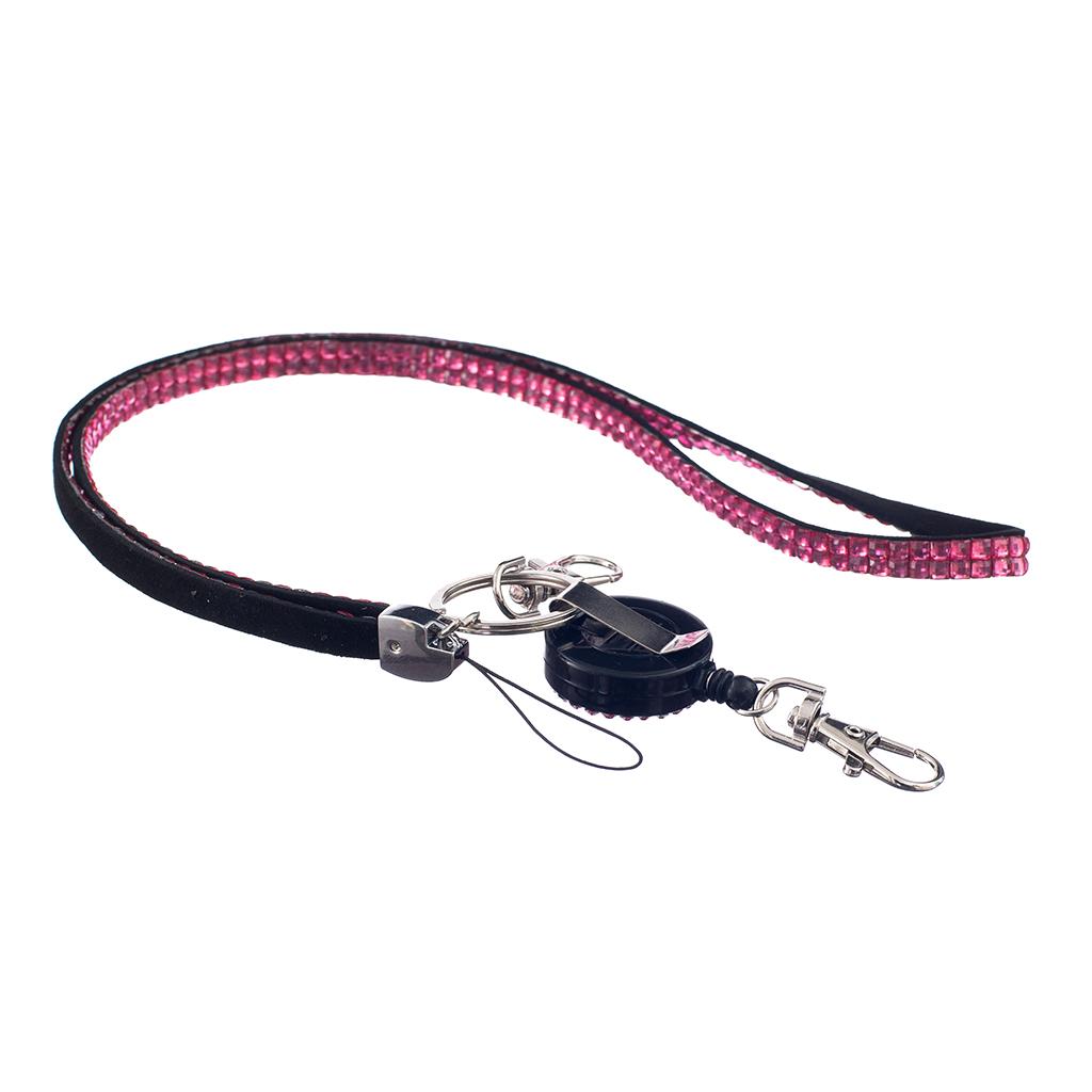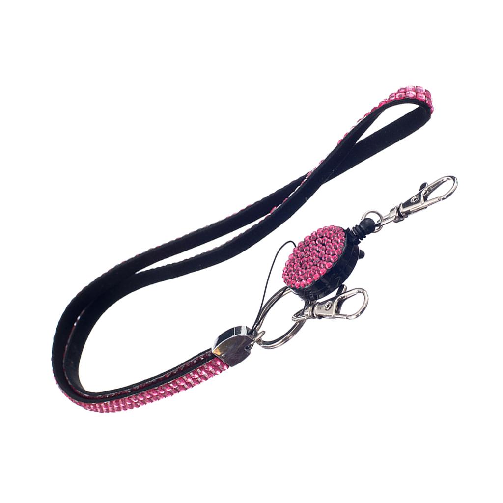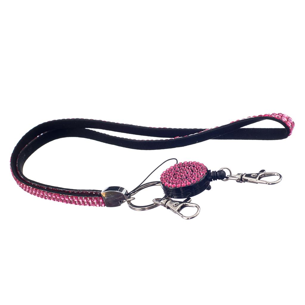 Fashionable Alloy Rhinestone Neck Lanyard Cell Phone ID Badge Key Holder Pink