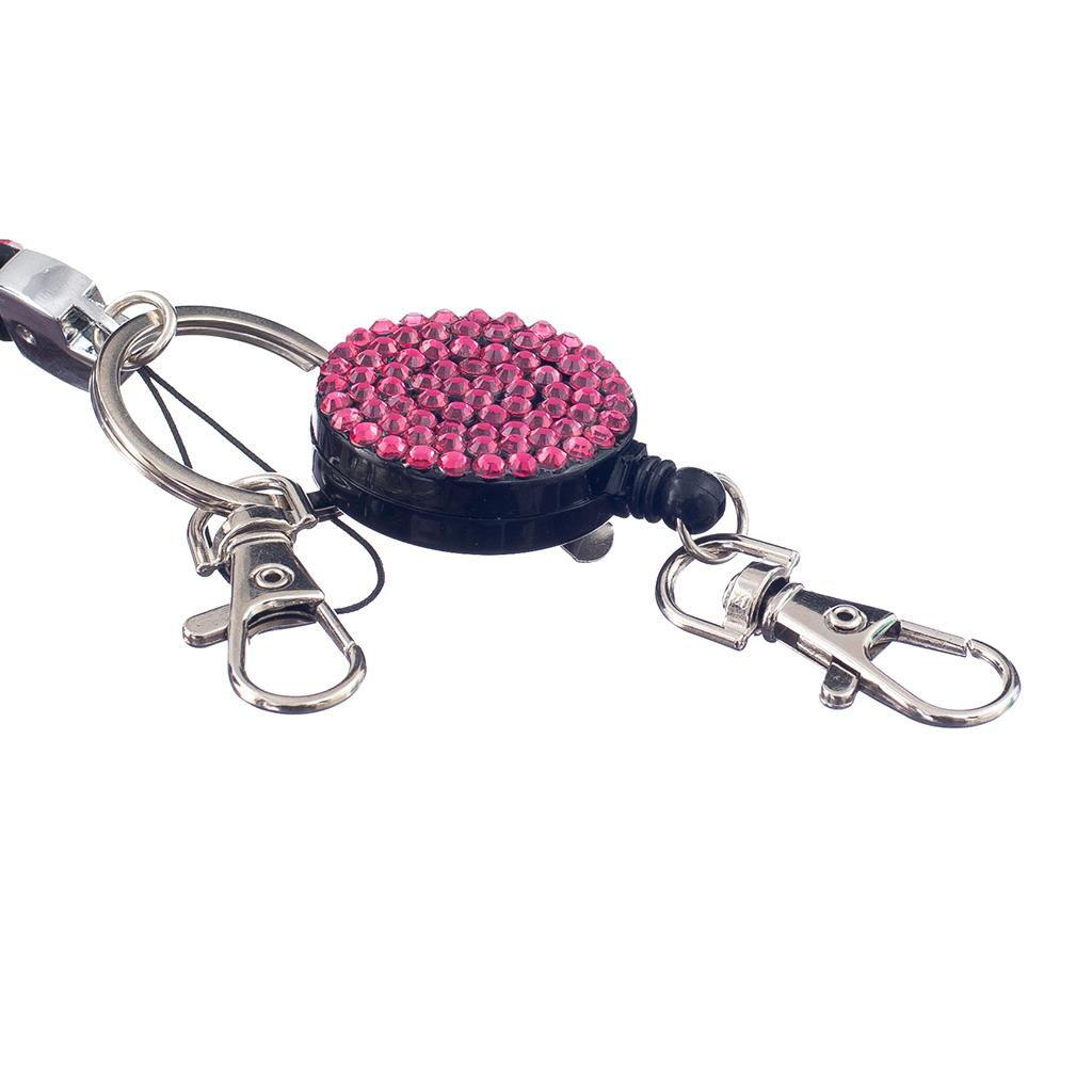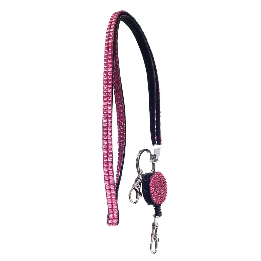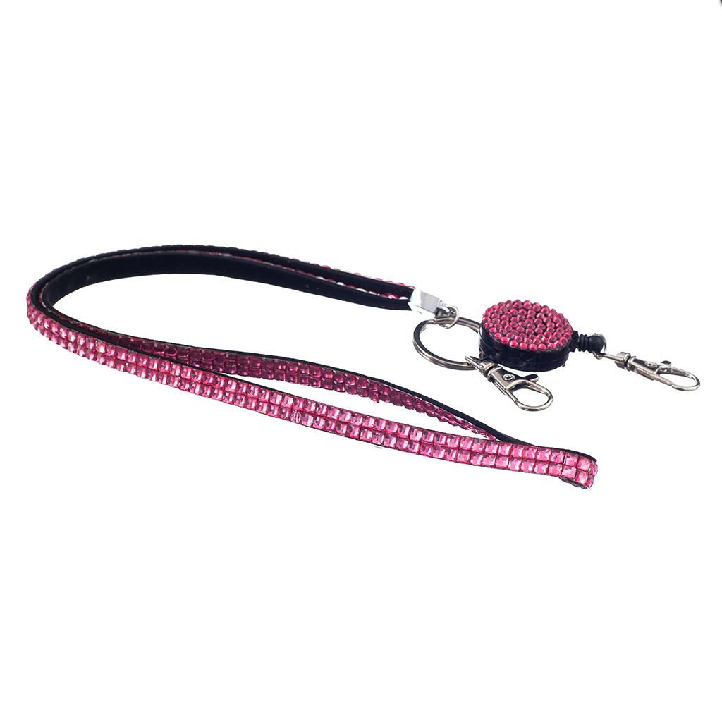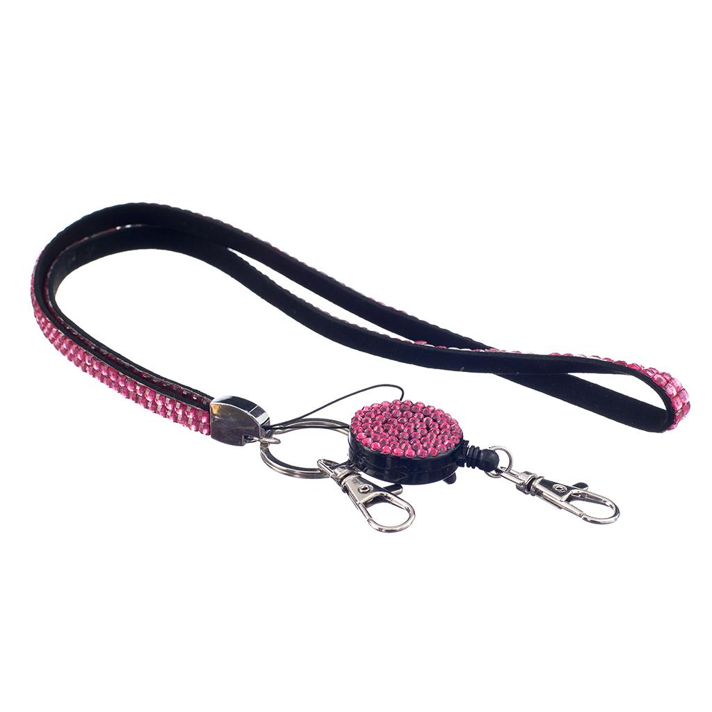 Fashionable Alloy Rhinestone Neck Lanyard Cell Phone ID Badge Key Holder Pink