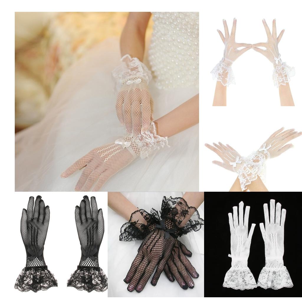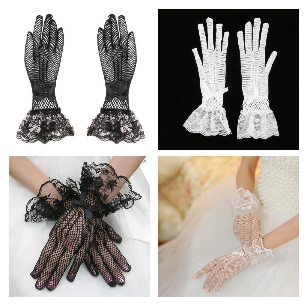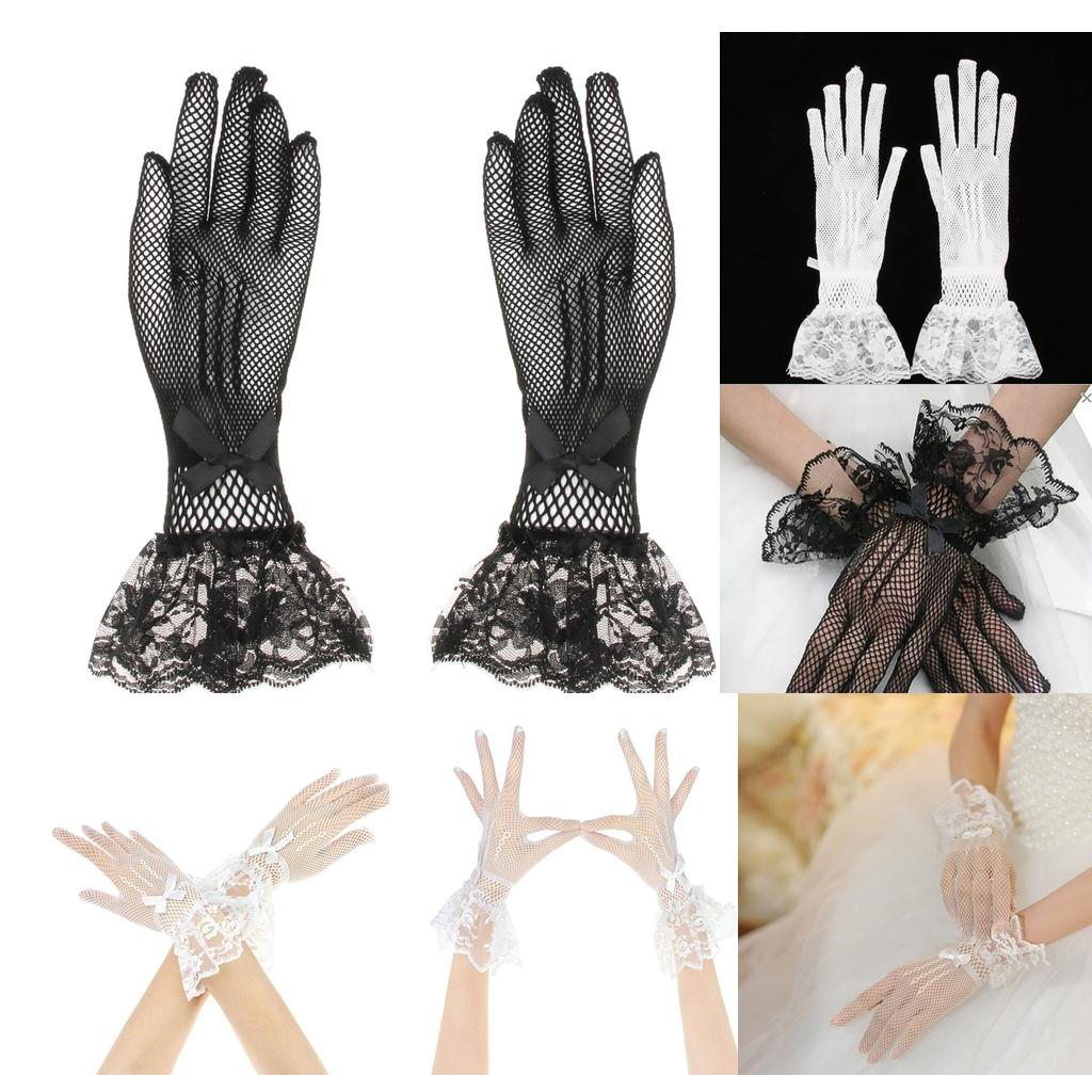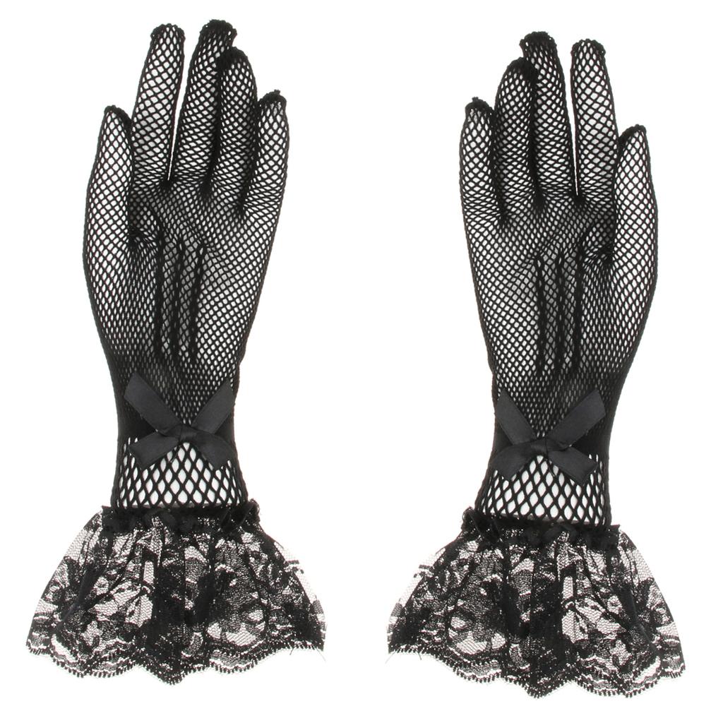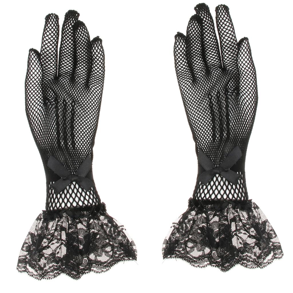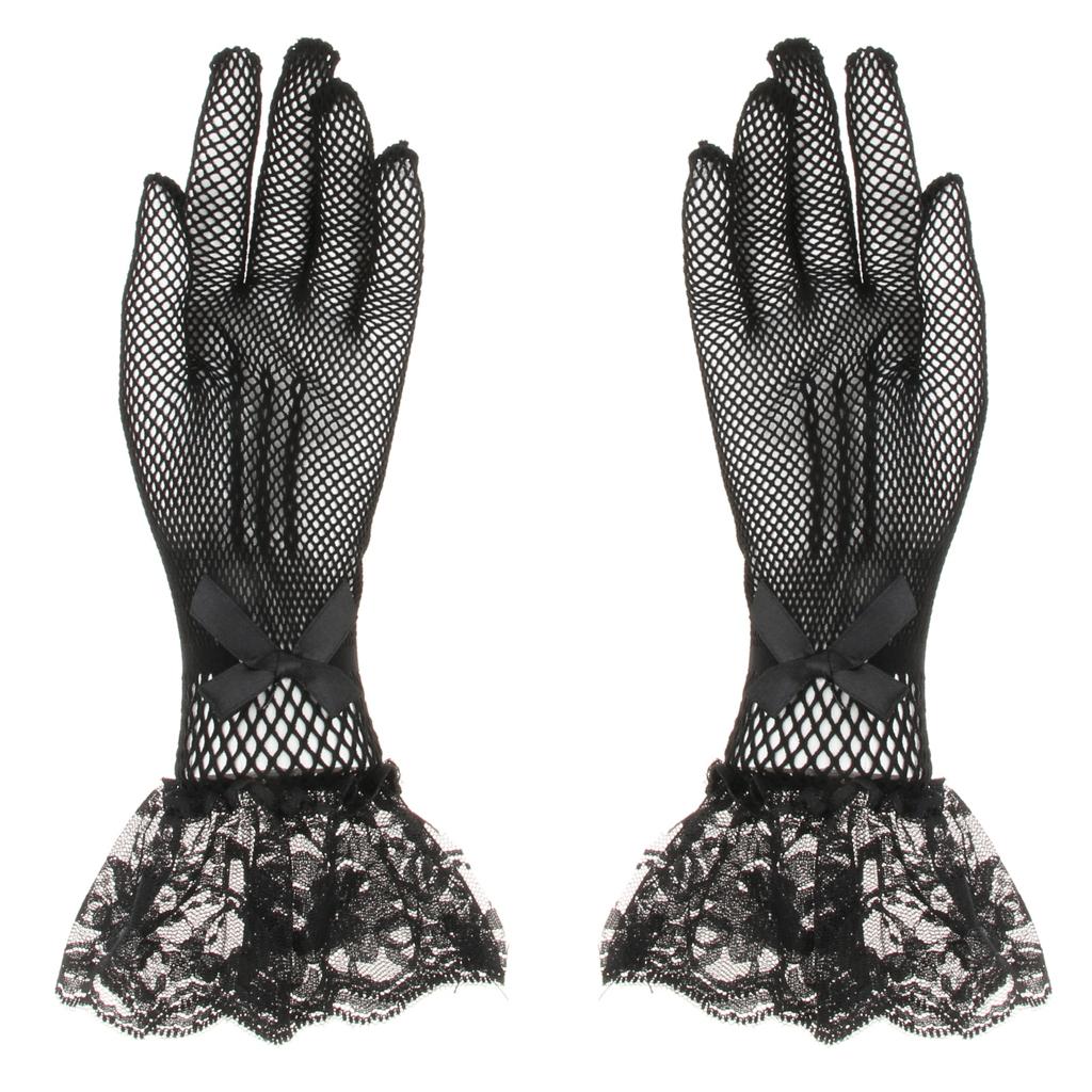 Floral Bowknot Lace Short Gloves Women Bridal Wedding Party Costumes Black