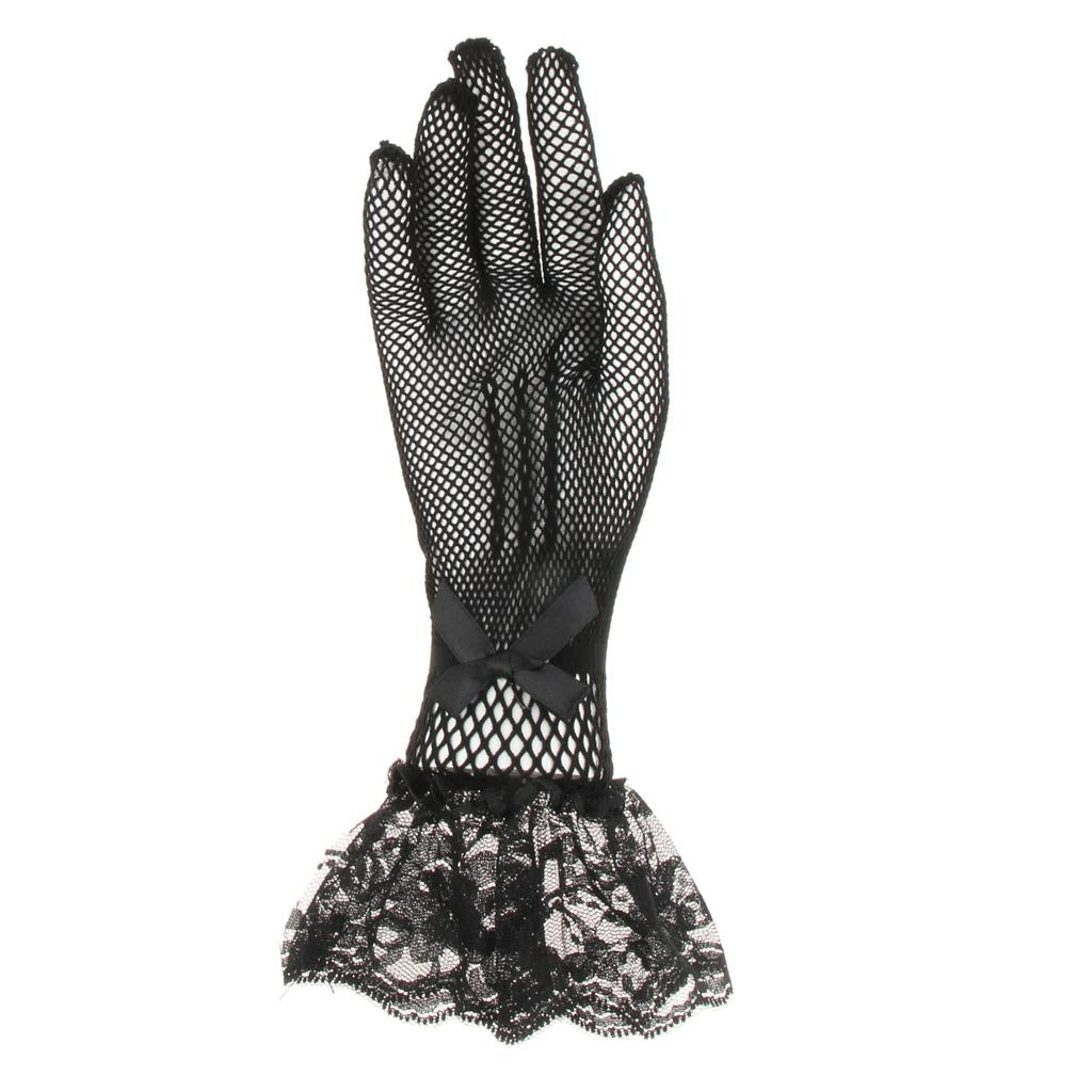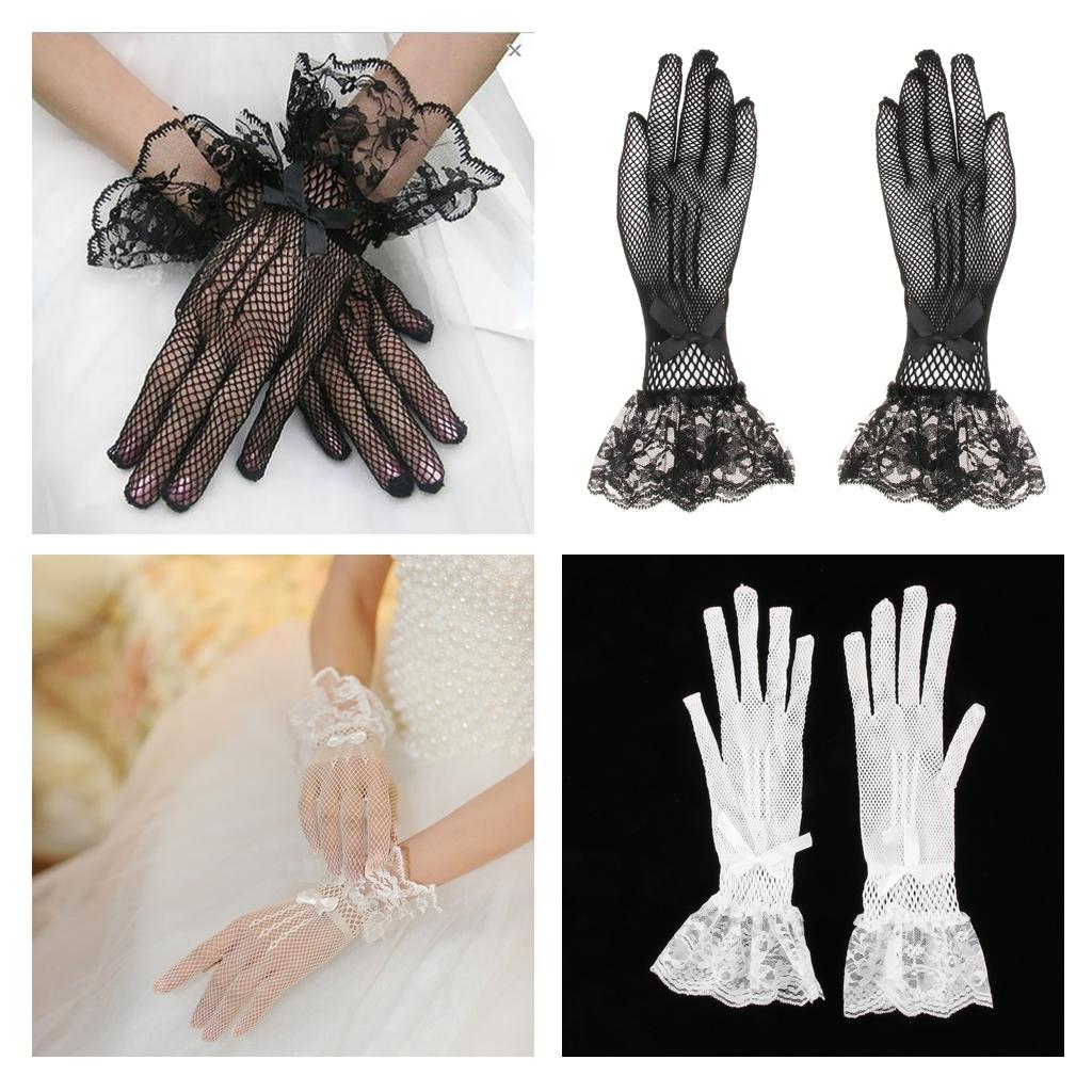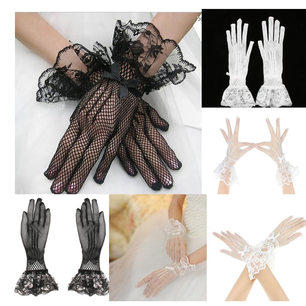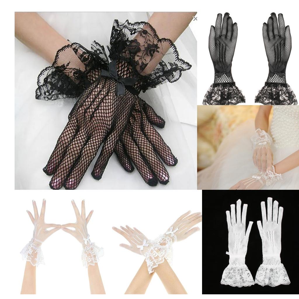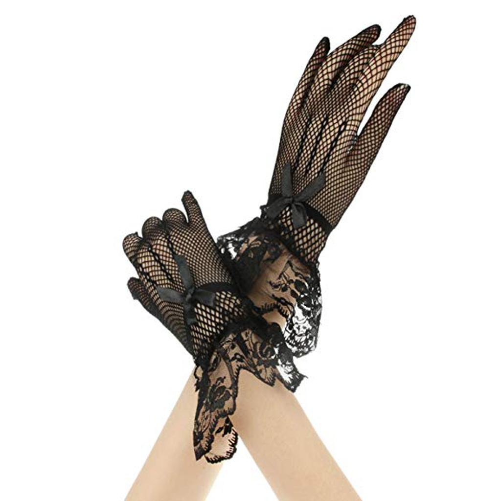 Floral Bowknot Lace Short Gloves Women Bridal Wedding Party Costumes Black