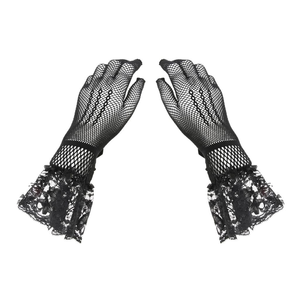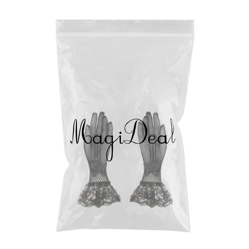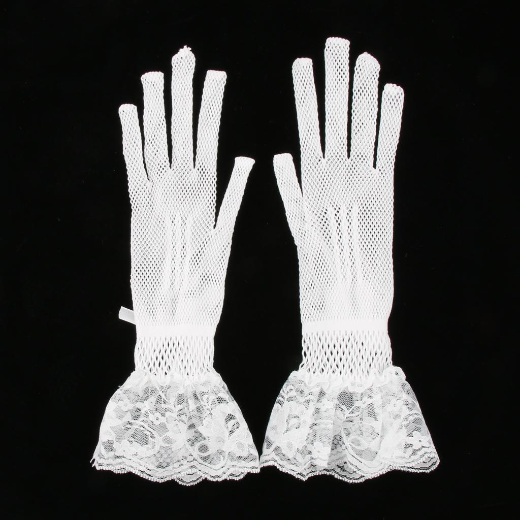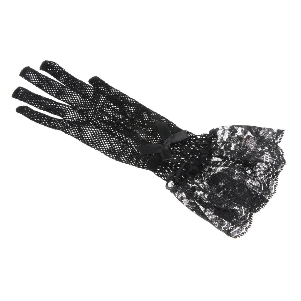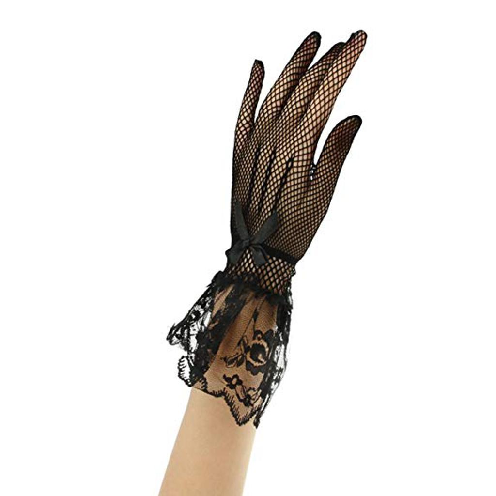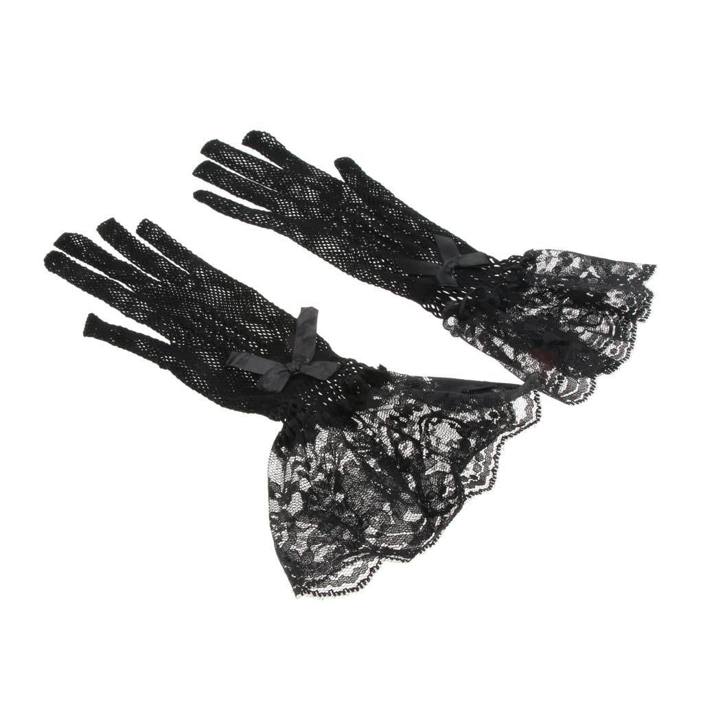 Floral Bowknot Lace Short Gloves Women Bridal Wedding Party Costumes Black