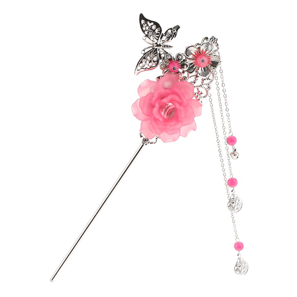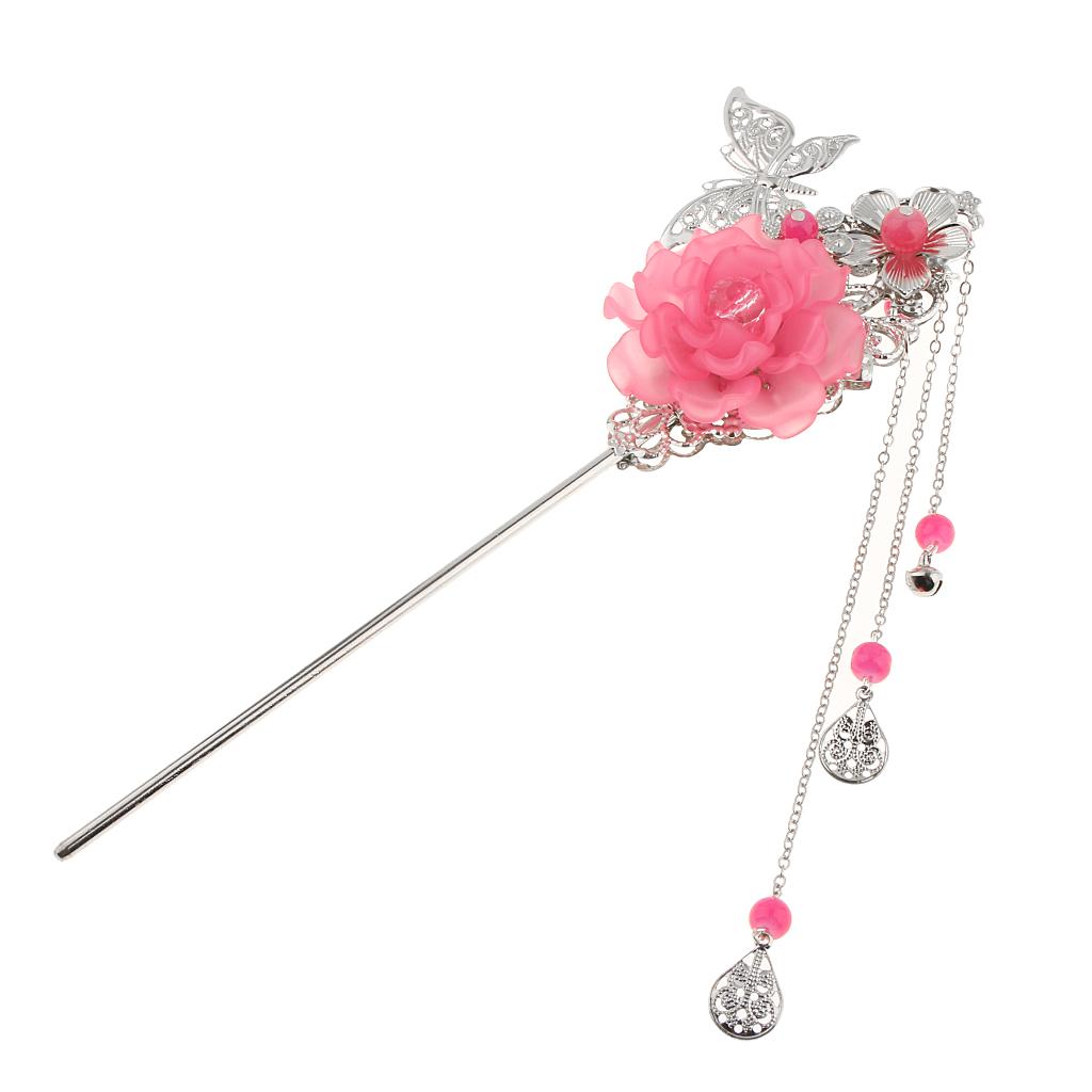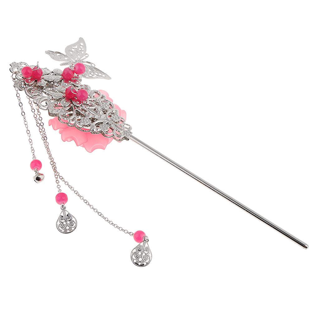 Tassel beads and jingle bell with large flower butterfly hair stick, traditional hair accessory fits for long hair.