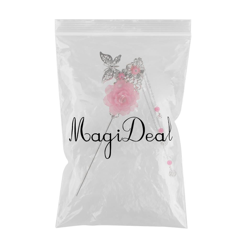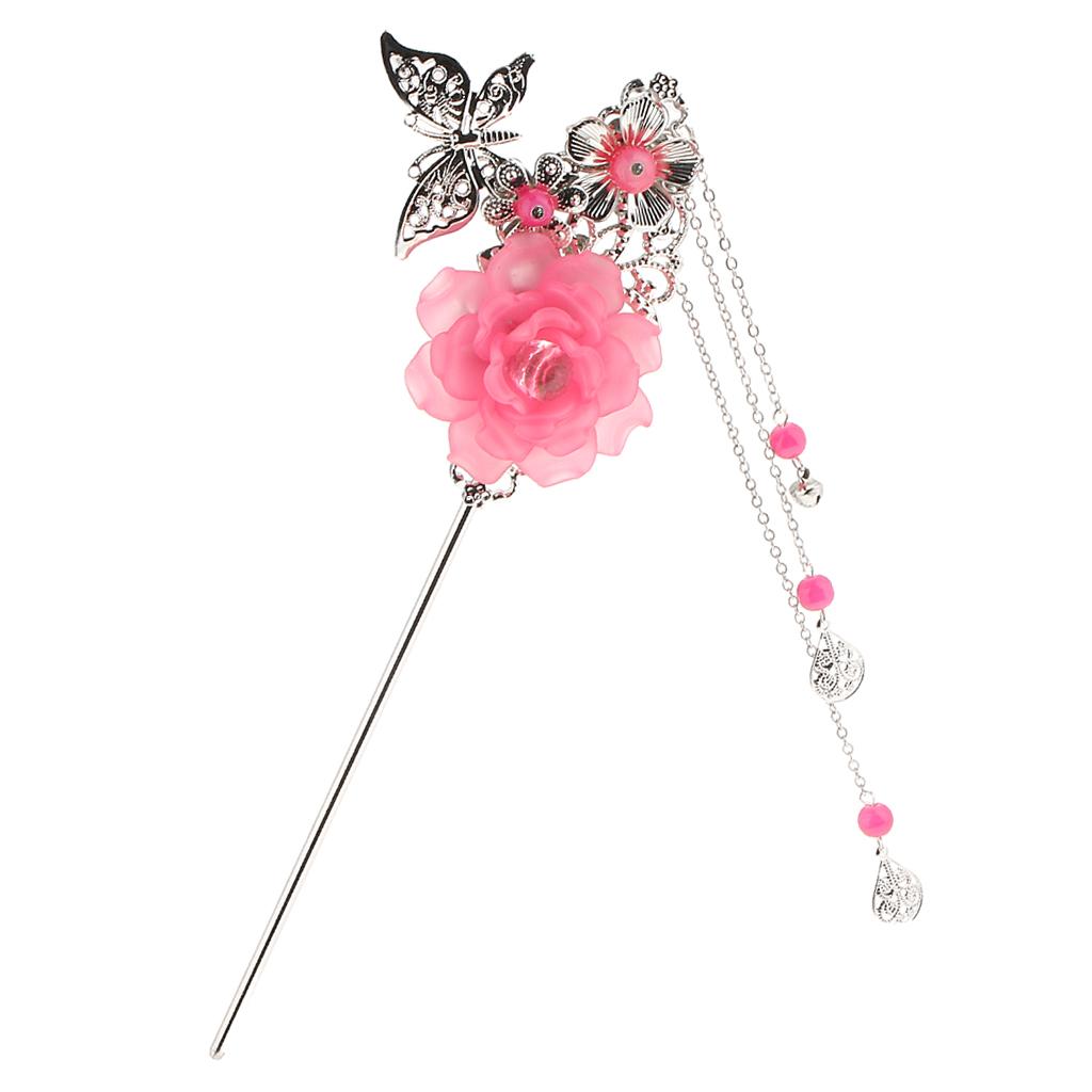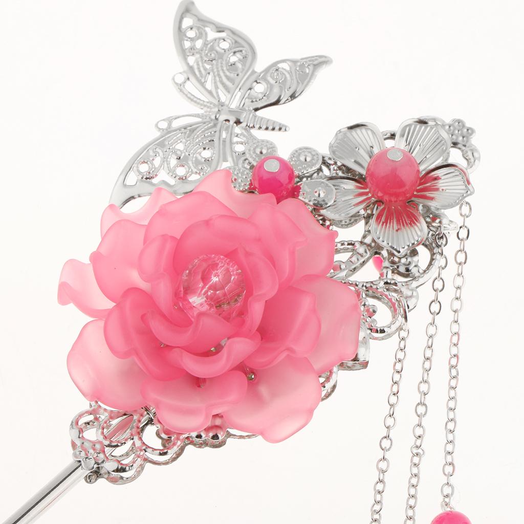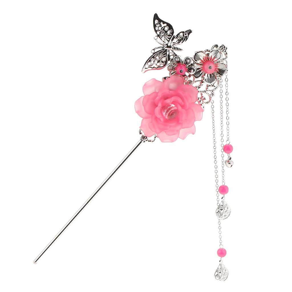 Tassel beads and jingle bell with large flower butterfly hair stick, traditional hair accessory fits for long hair.