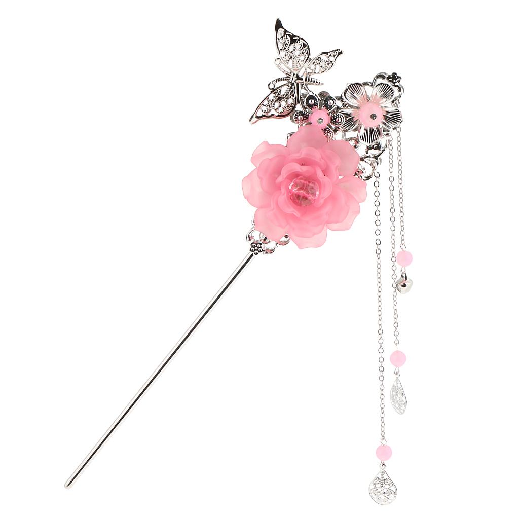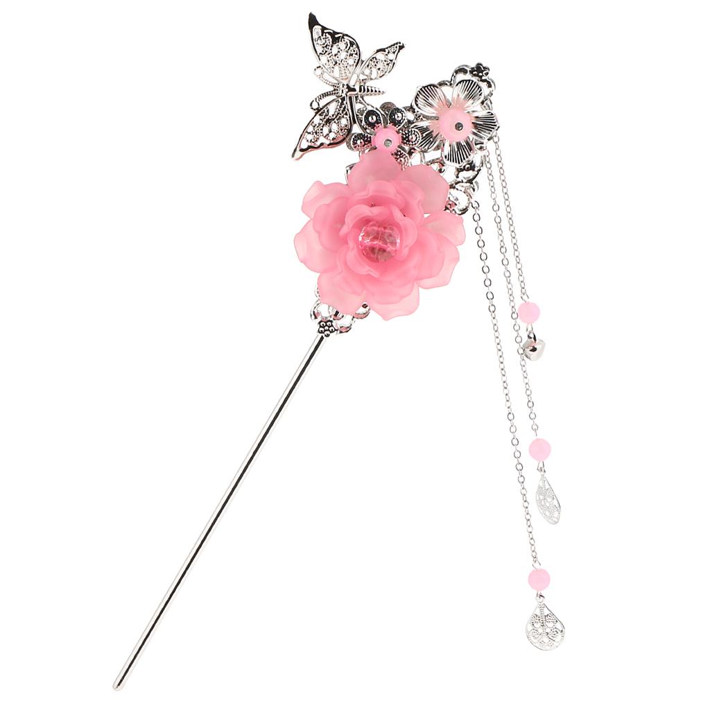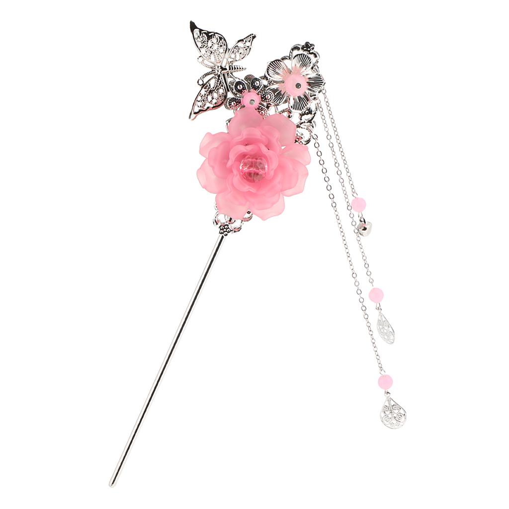 Tassel beads and jingle bell with large flower butterfly hair stick, traditional hair accessory fits for long hair.