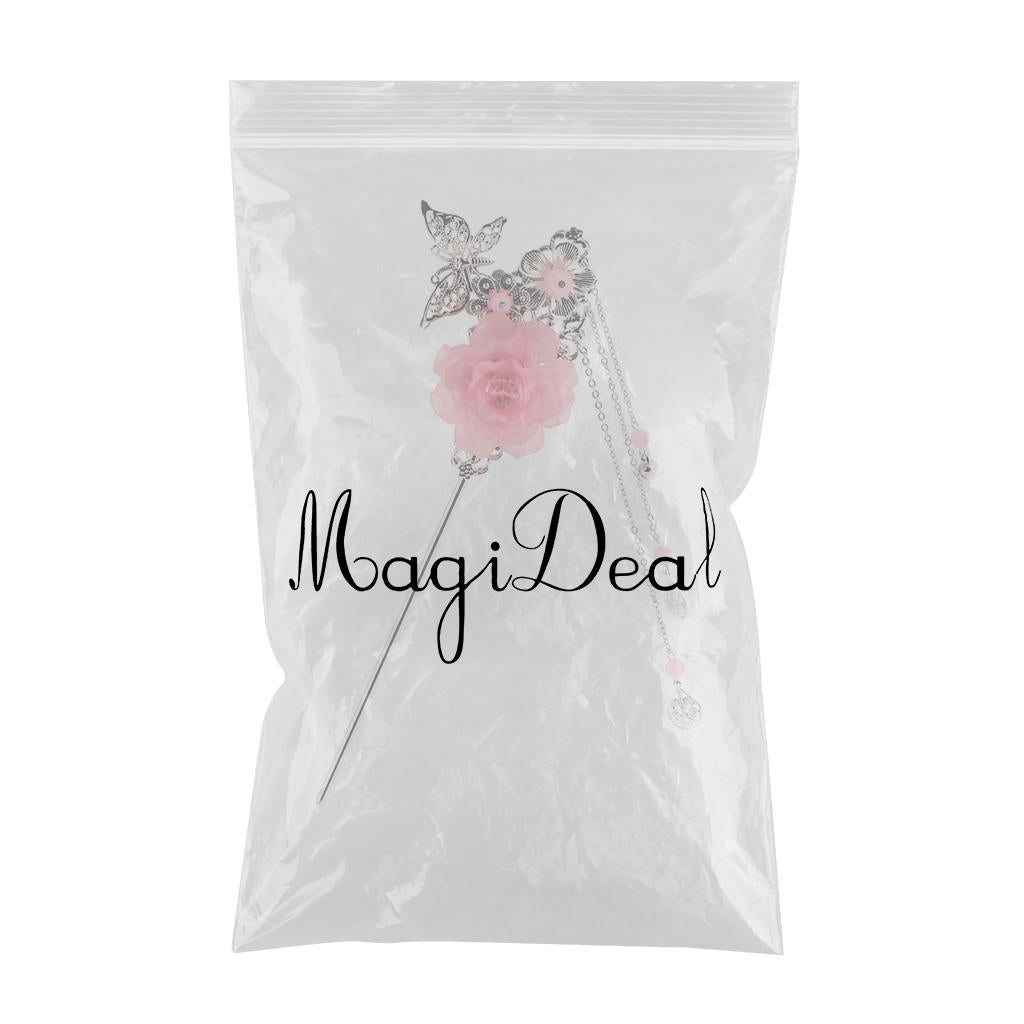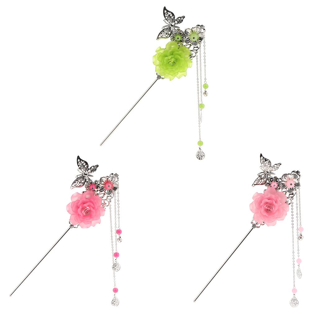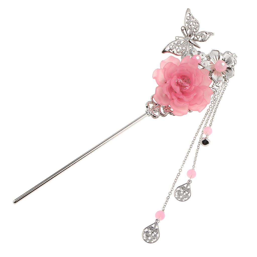 Tassel beads and jingle bell with large flower butterfly hair stick, traditional hair accessory fits for long hair.