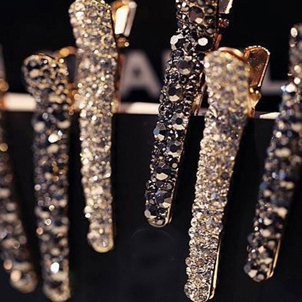 Full Black Rhinestone Duckbill Hair Clip Barrette Hairpin Clamp Gold