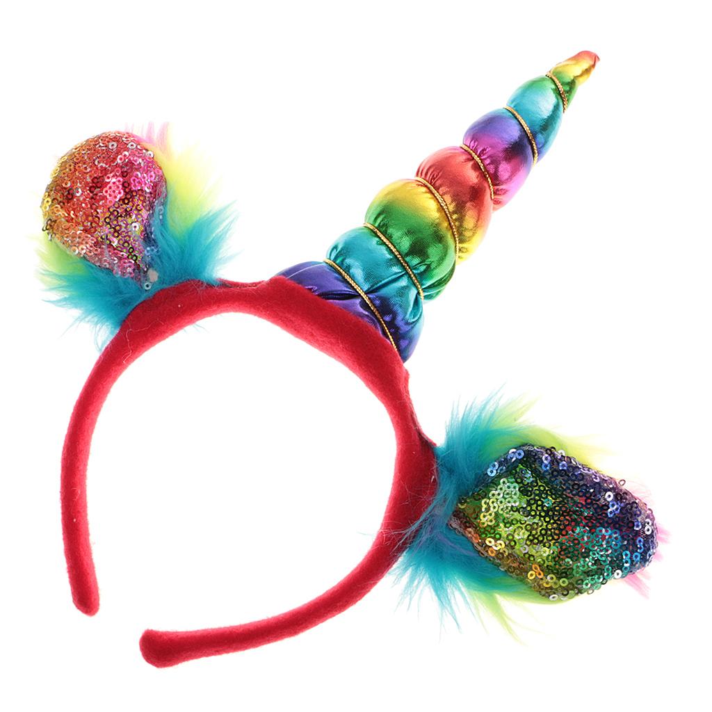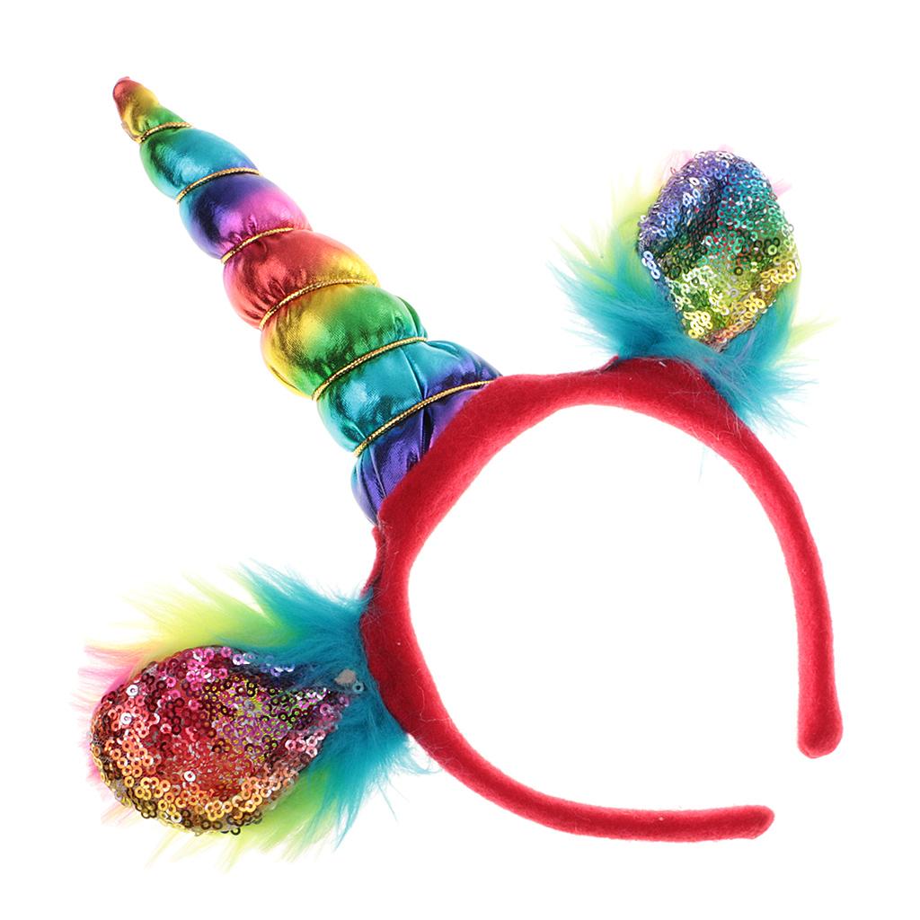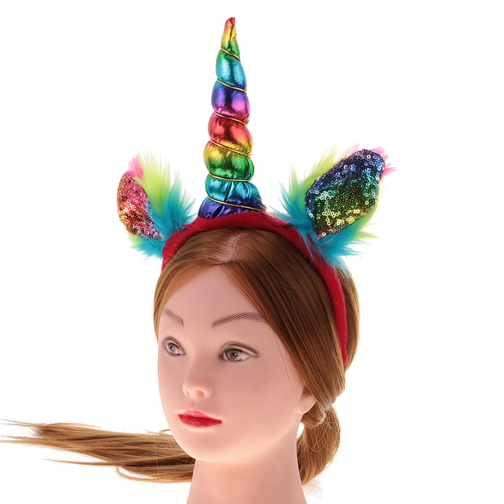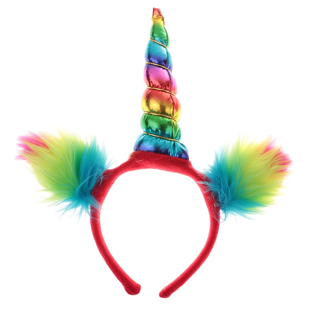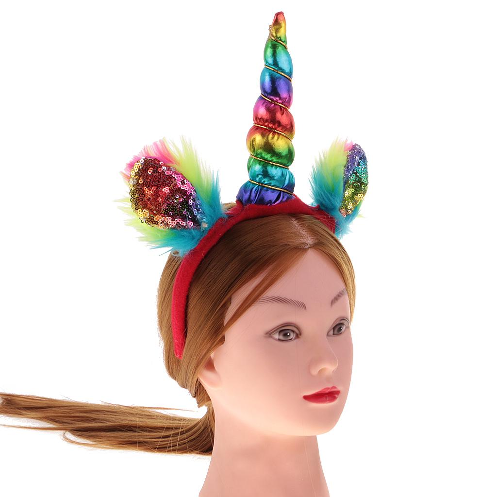 Girls Rainbow Unicorn Horn Ears Headband Costume Halloween Fancy Dress 6