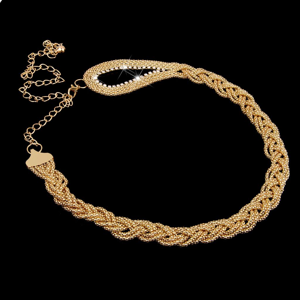 Golden Braided Alloy Waist Chain Belt for Woman Lady