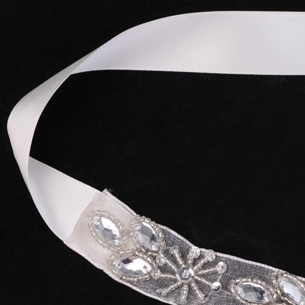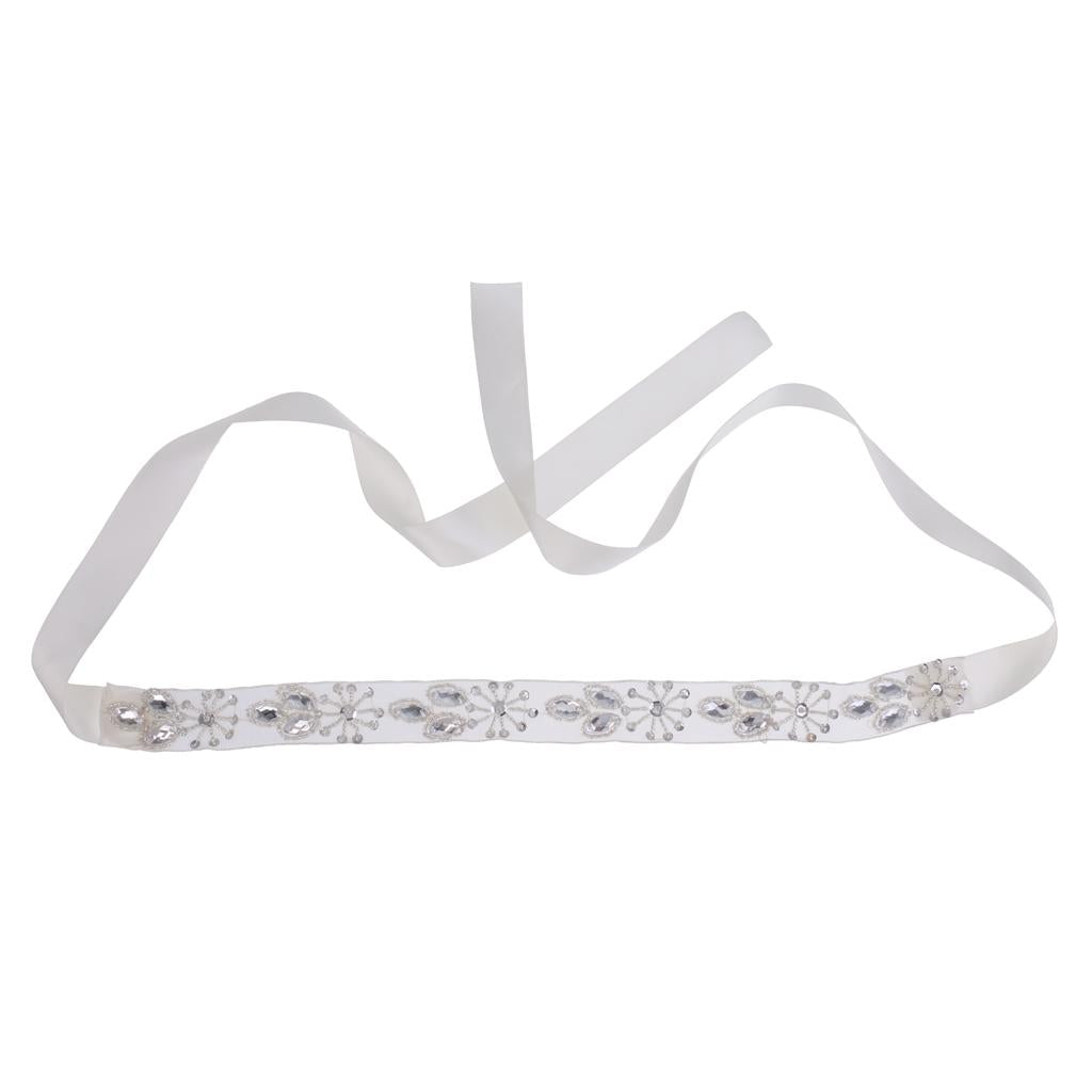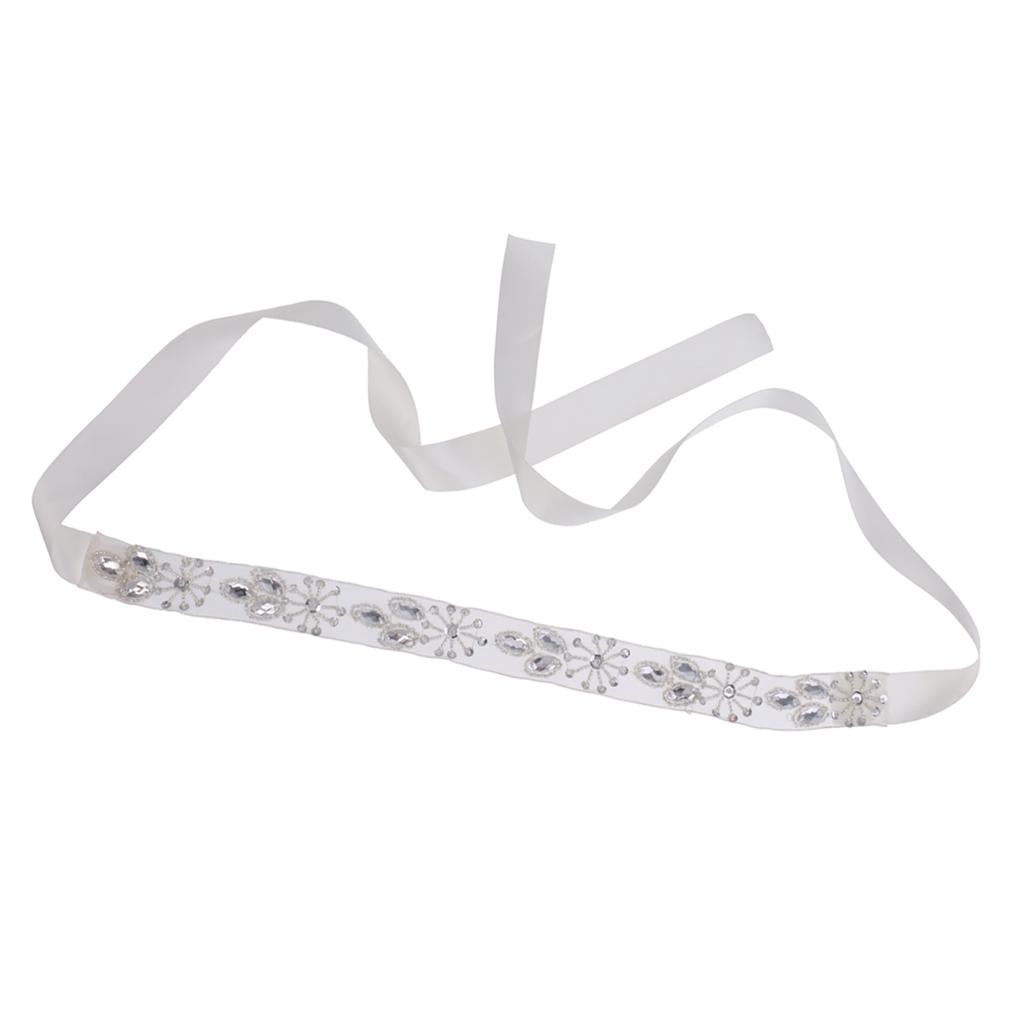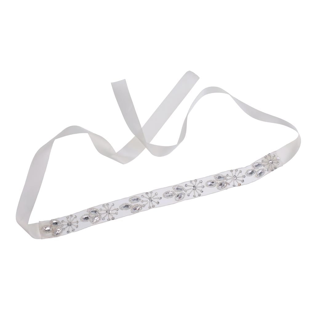 • Beautiful Rhinestone and Crystal Ivory Satin Ribbon Headband