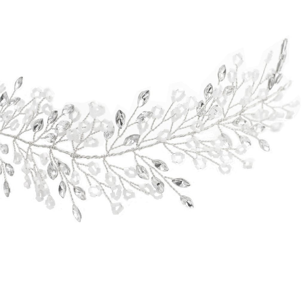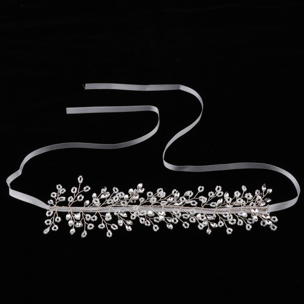 Glitter crystal rhinestone headband with white ribbon, the ribbon provides comfort, flexibility and adaptability to any hair style.