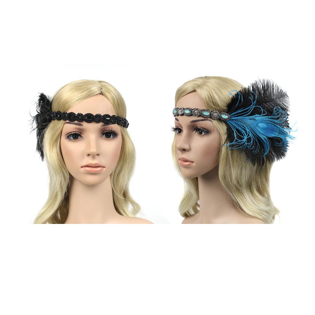 Vintage Indian feather headband with beads decorations,1920s style feather fascinator headdress