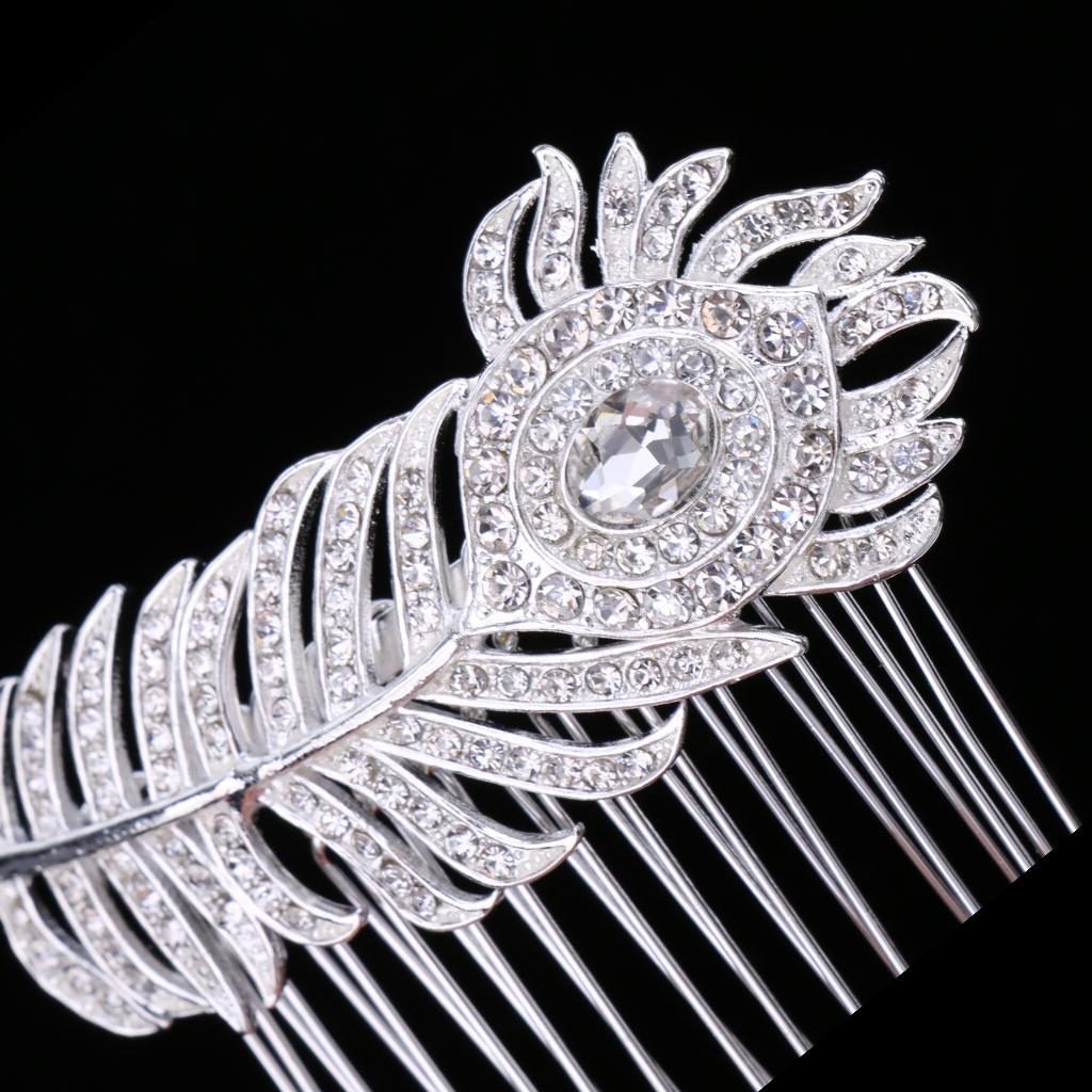 A luxury hair comb, fully inlaid with clear rhinestones and pearls, sparkling and elegant