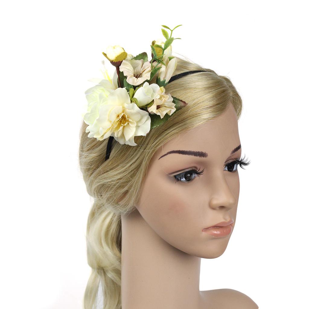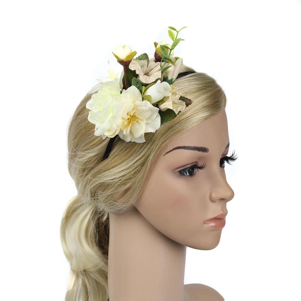 Ladies Girls Princess Boho White Flower Leaves Charms Headband Wedding Bridal Hairband Head Decor Accessory