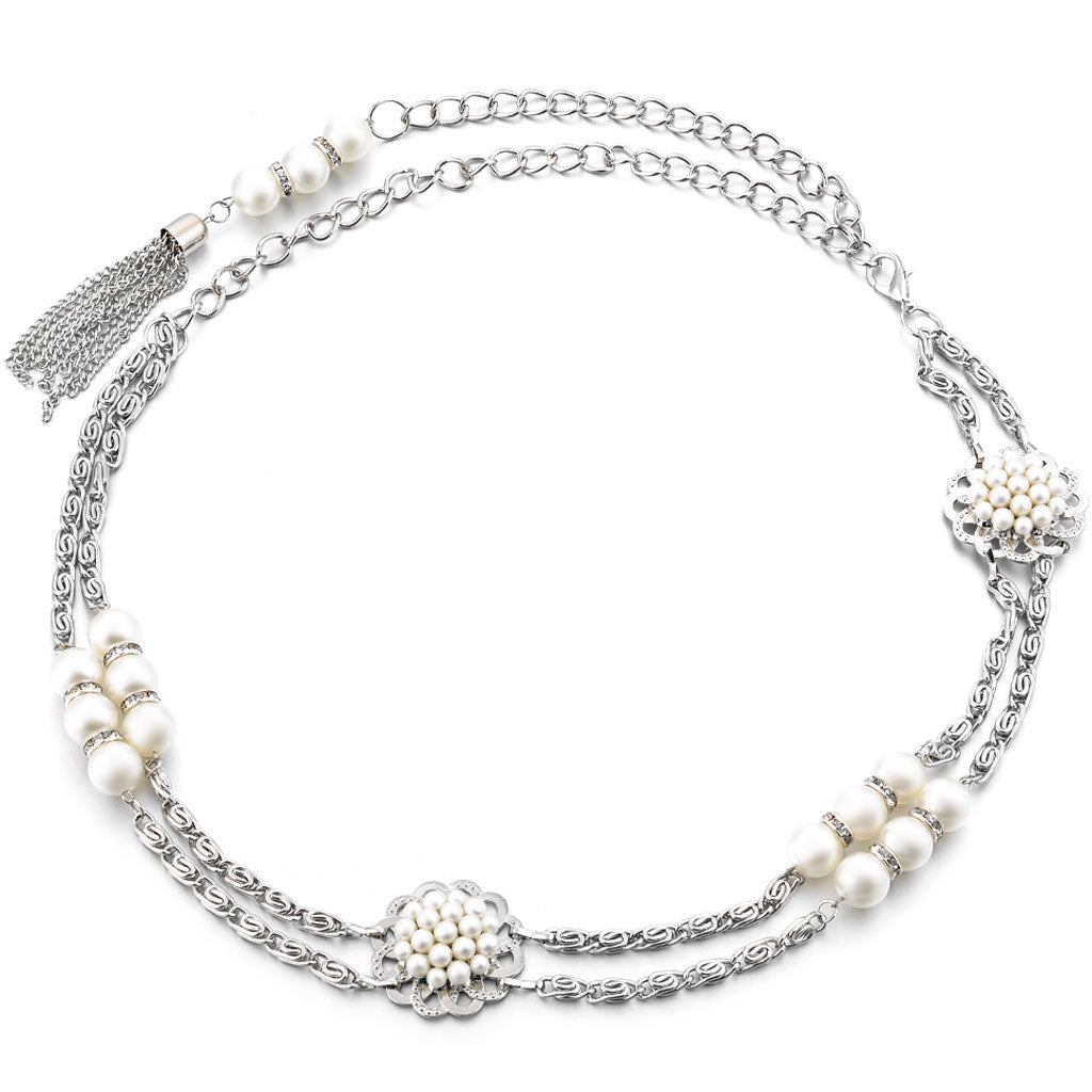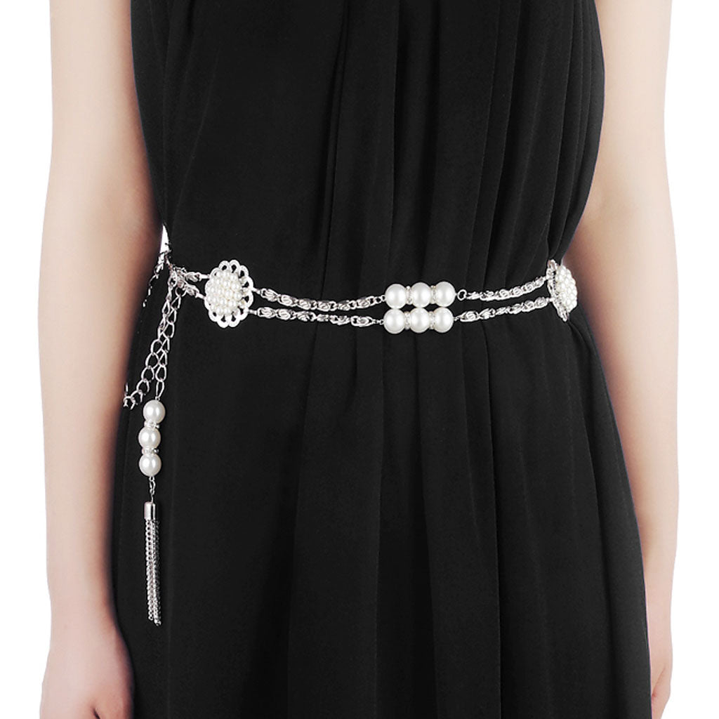 Ladies Pearl Tassels Embellishment Waist Chain Belt Body Belly Bikini Beach