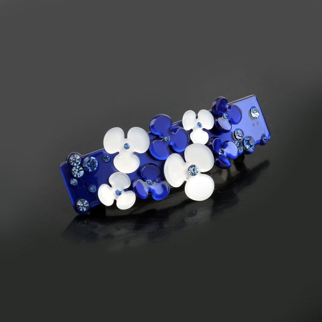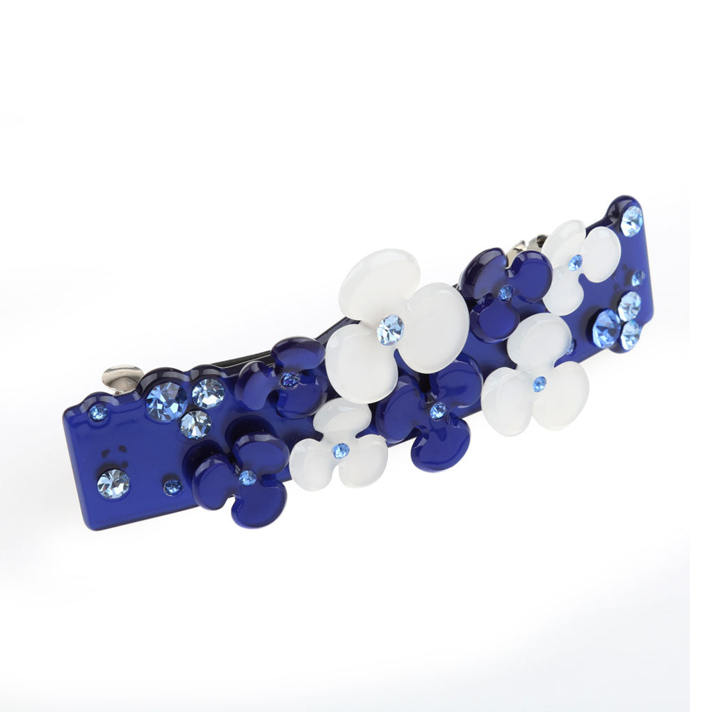 Lady Fashion Crystal Rhinestone Flower Hair Barrette Clip Hairpin Royal Blue