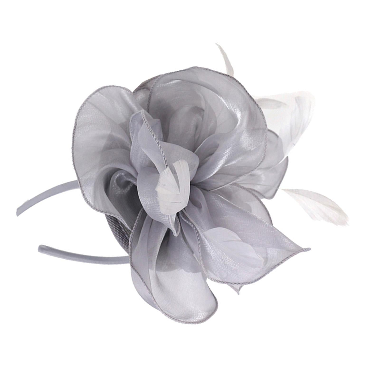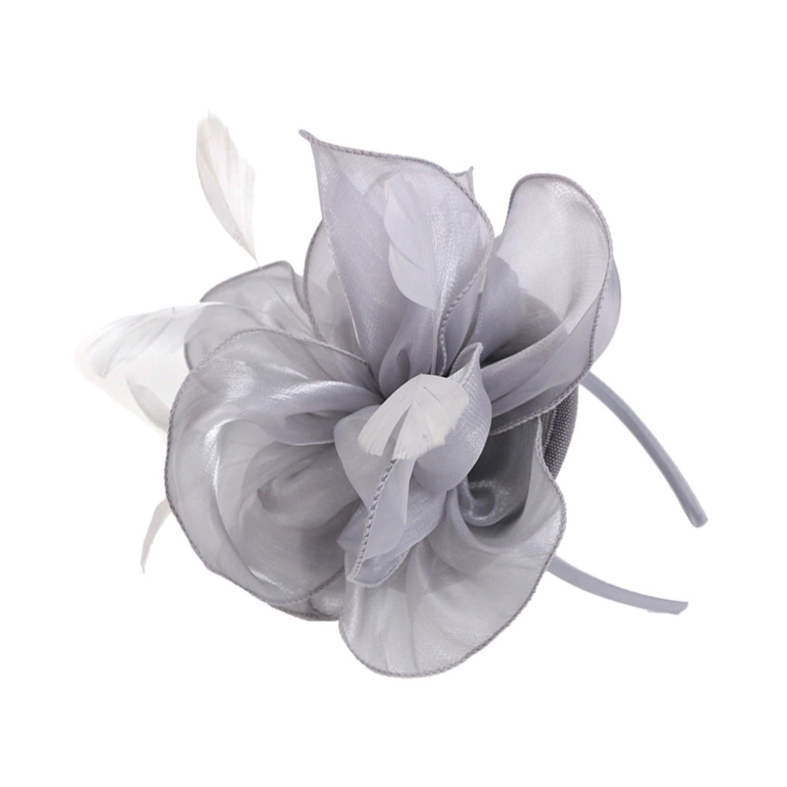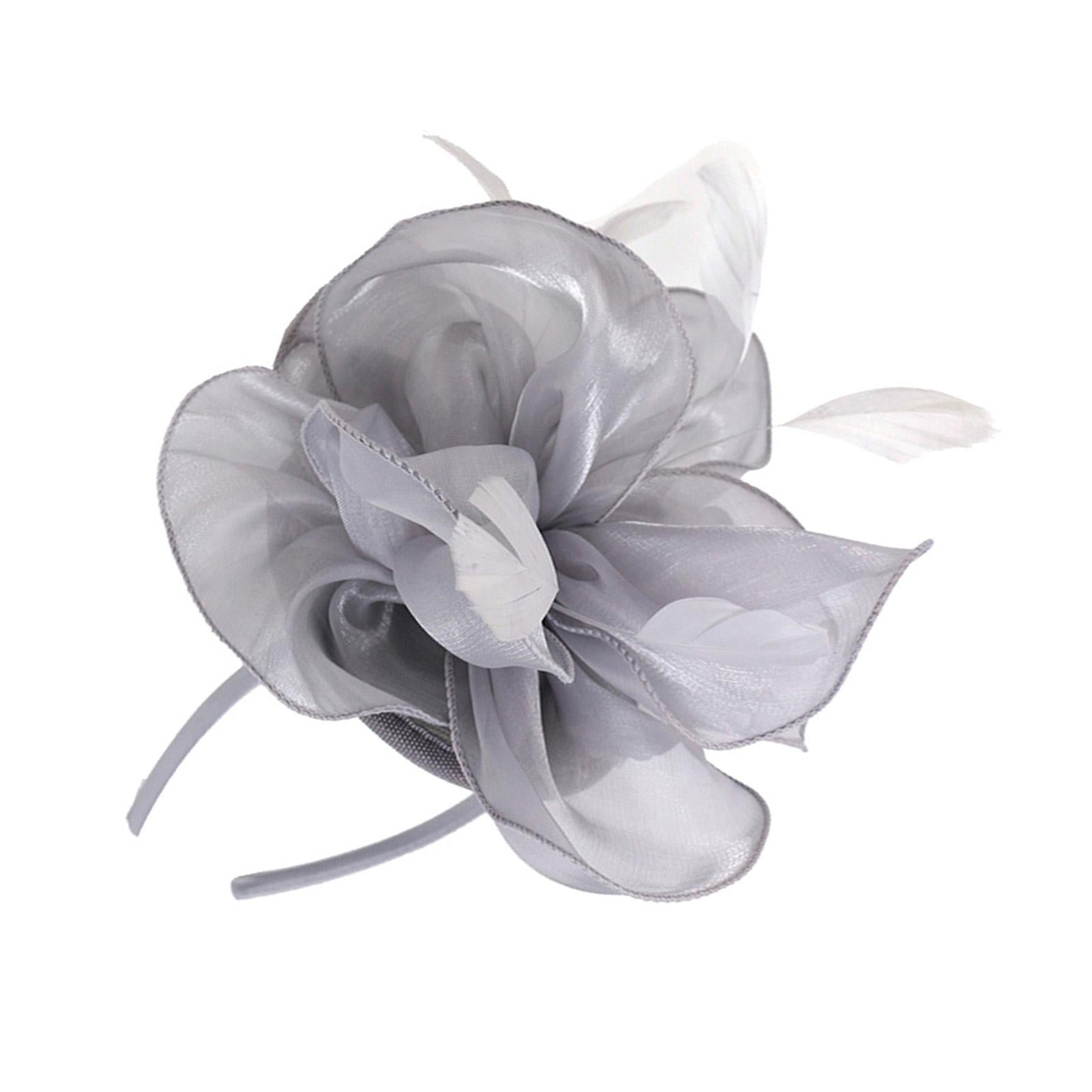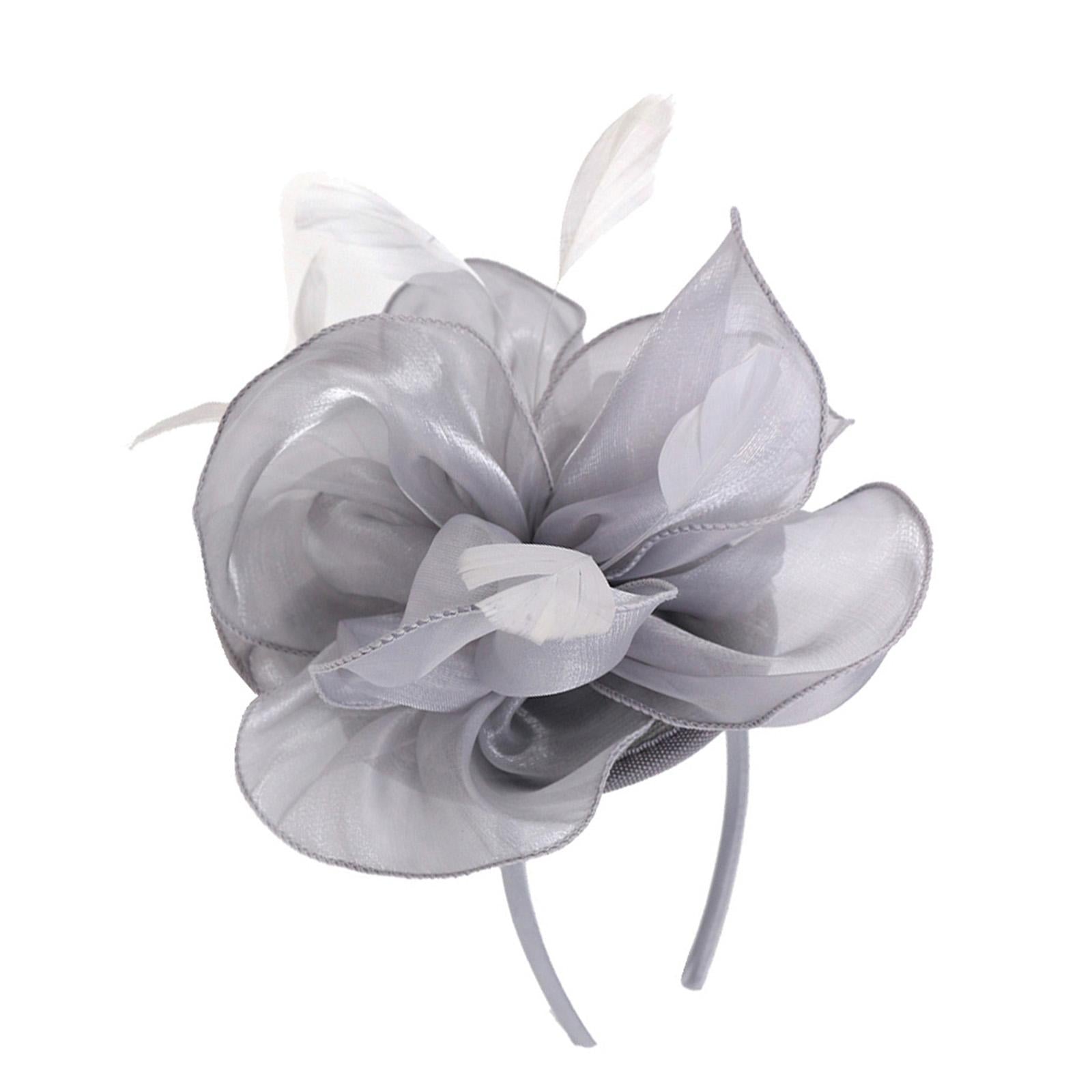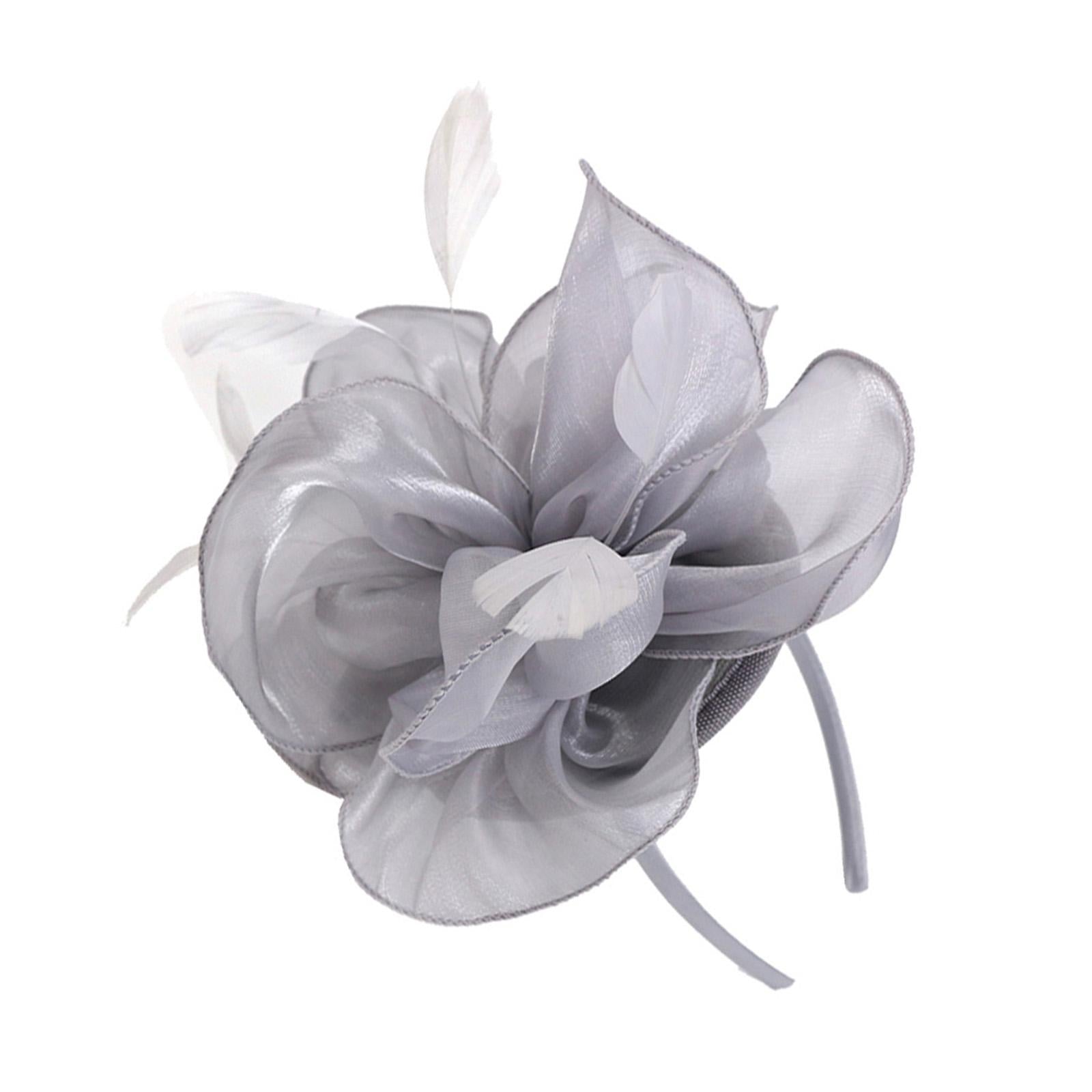 Lady Flower Fascinator Hat 1920s Gatsby Bridal Headband Cocktail Party Gray