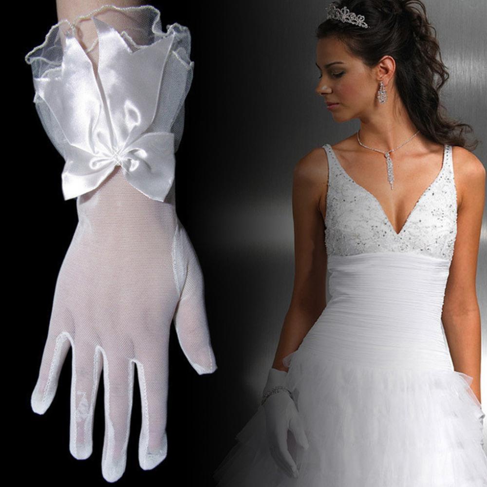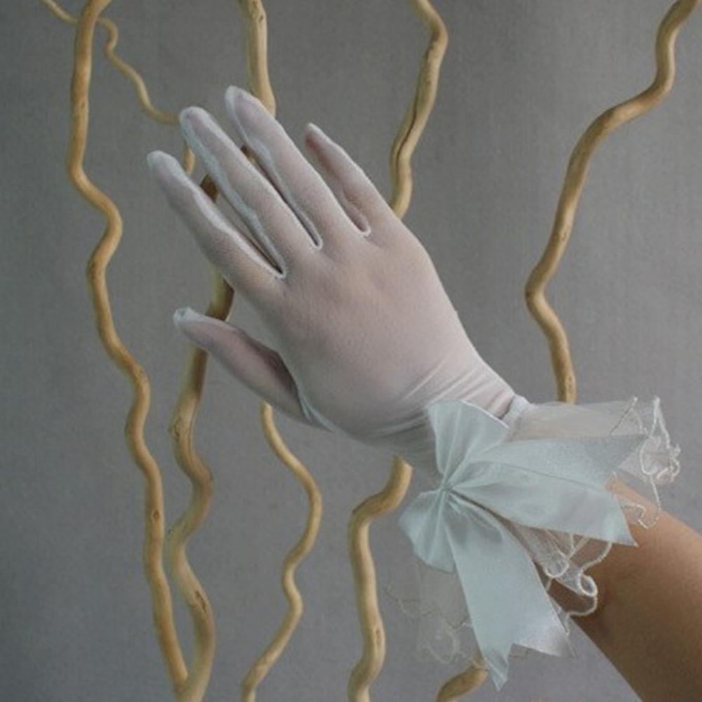 • Ladies elastic short lace gloves,elegant with bowknot design