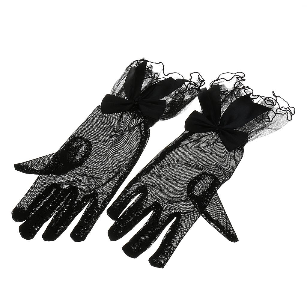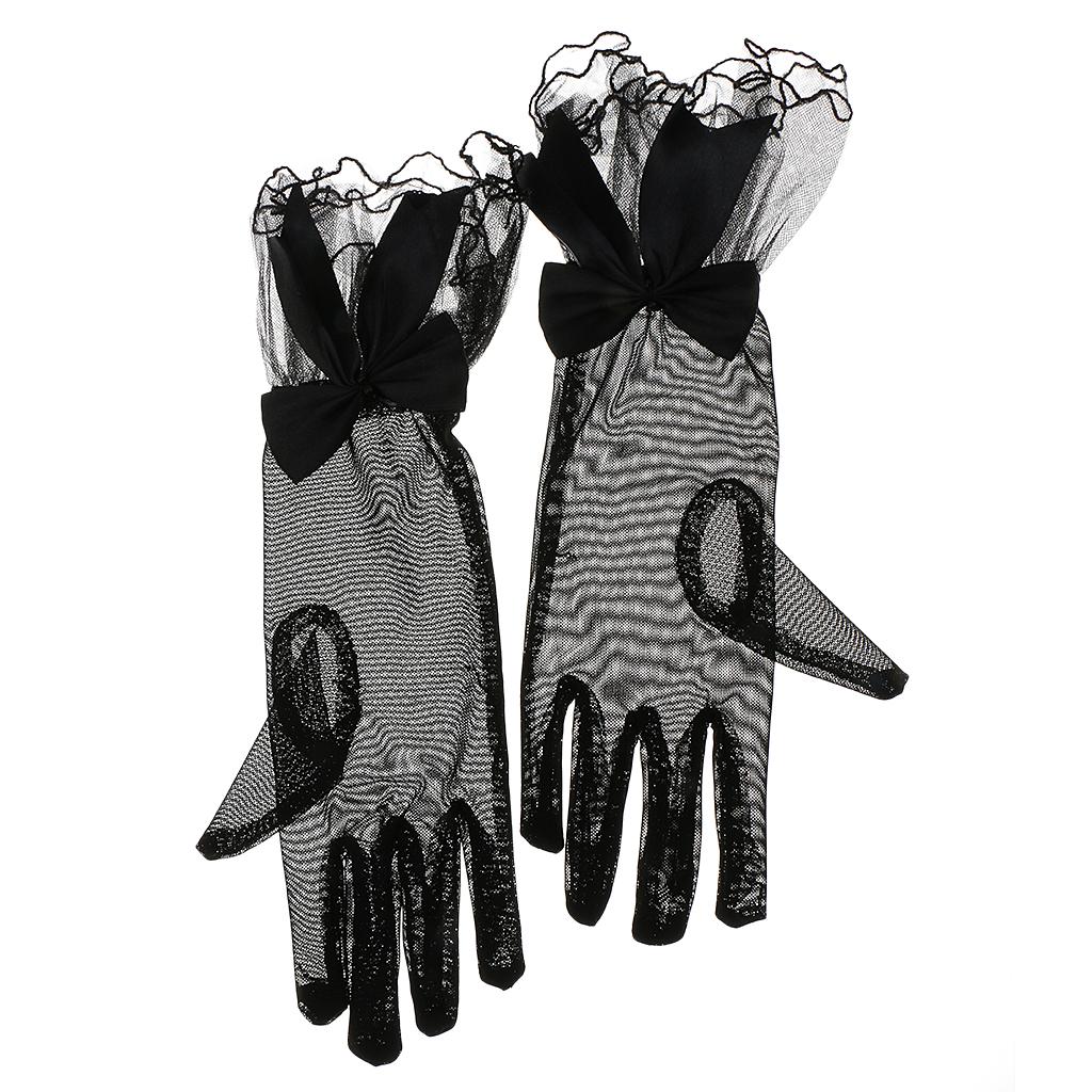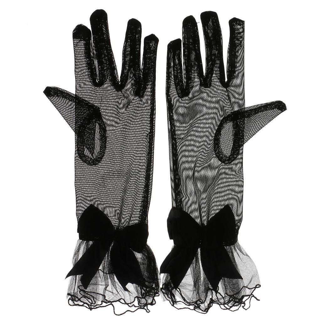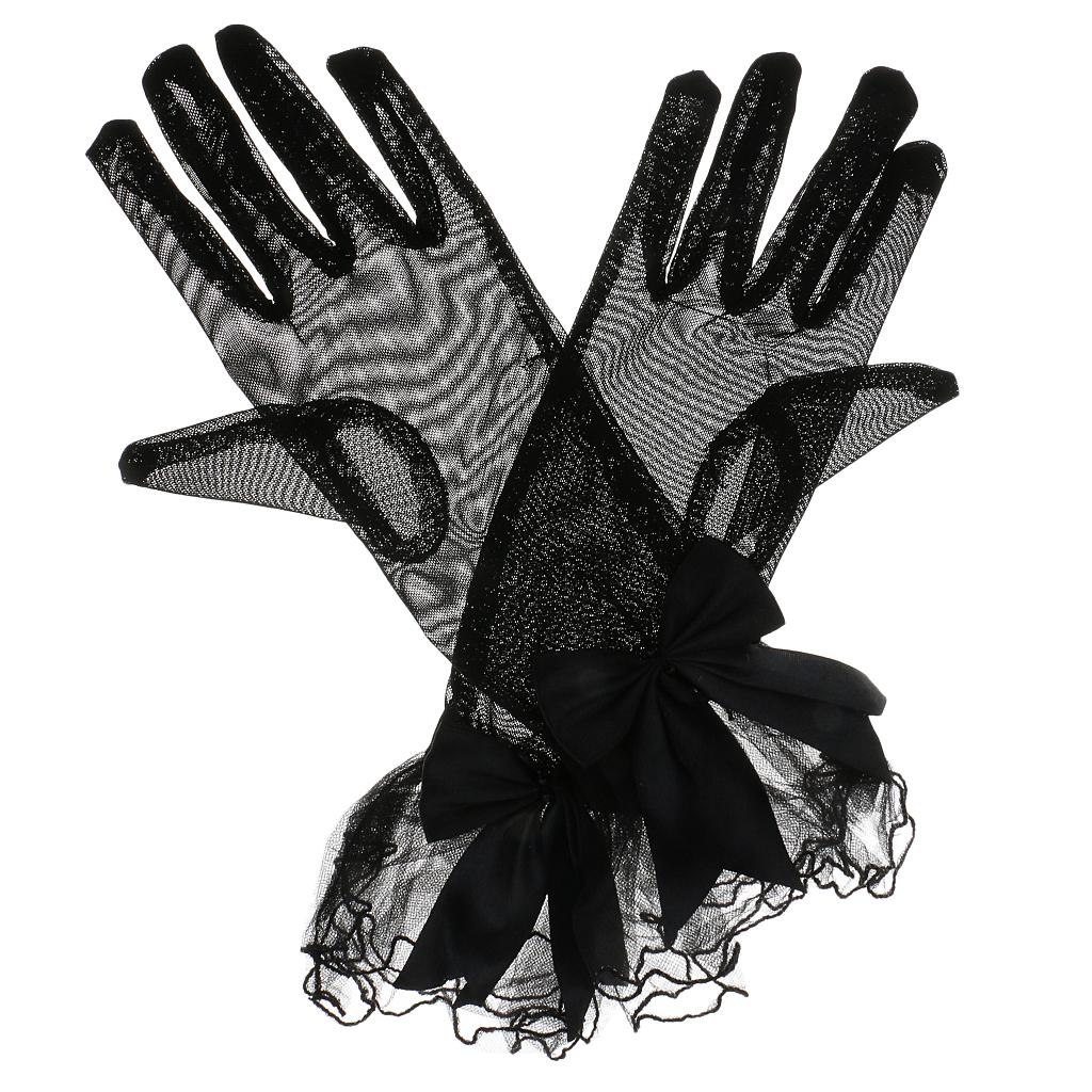 Lady Stretch Lace Gloves Finger Short Wedding Dance Fancy Dress Black