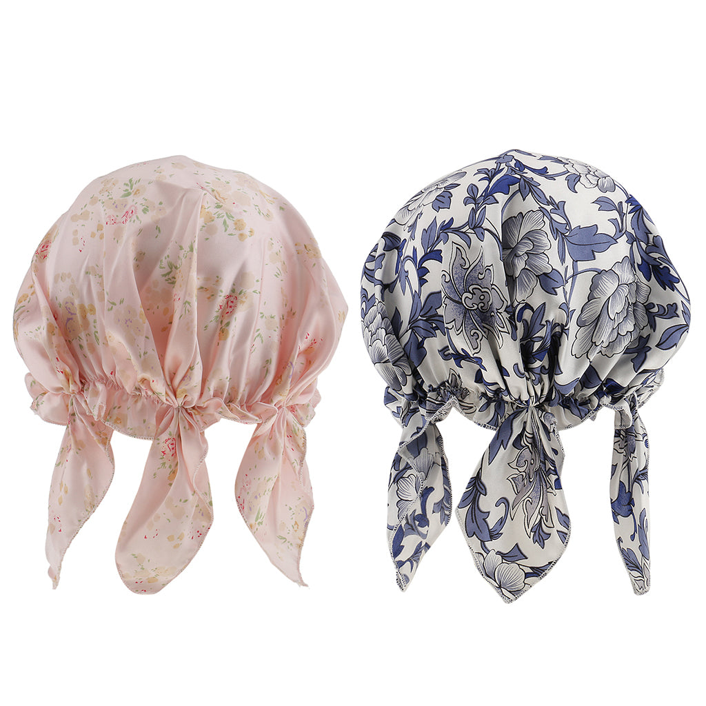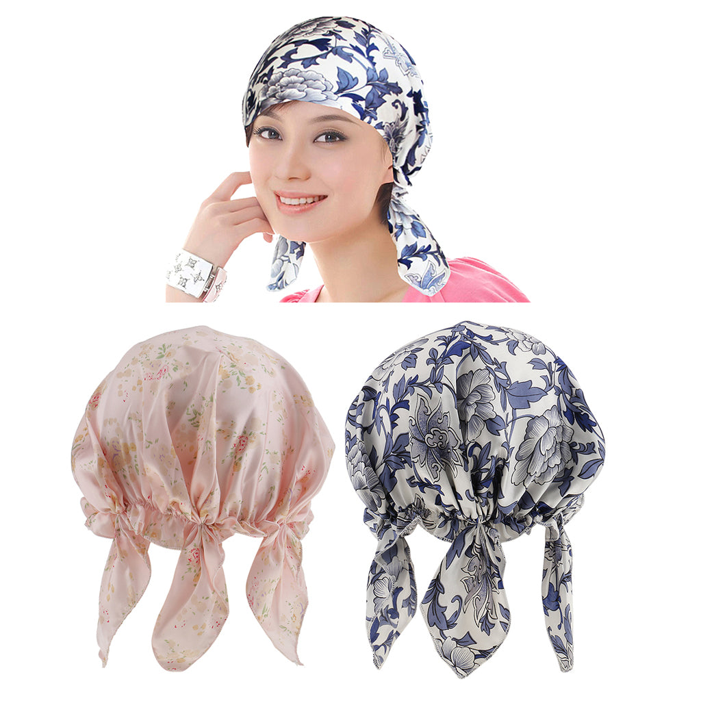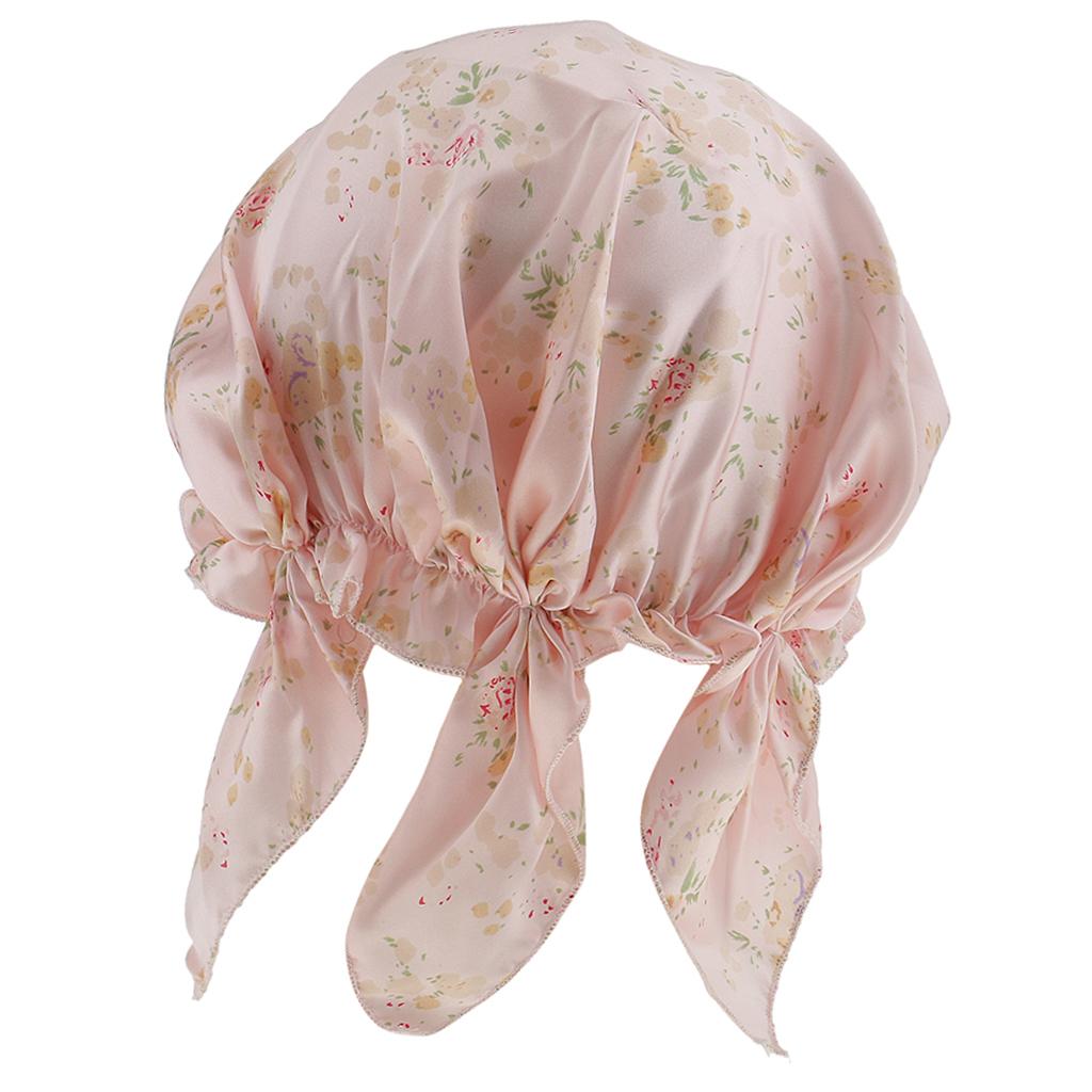 Light Weight Silk Bonnet Night Sleeping Hat Head Cover Eye Mask Beanie Cap Pink
