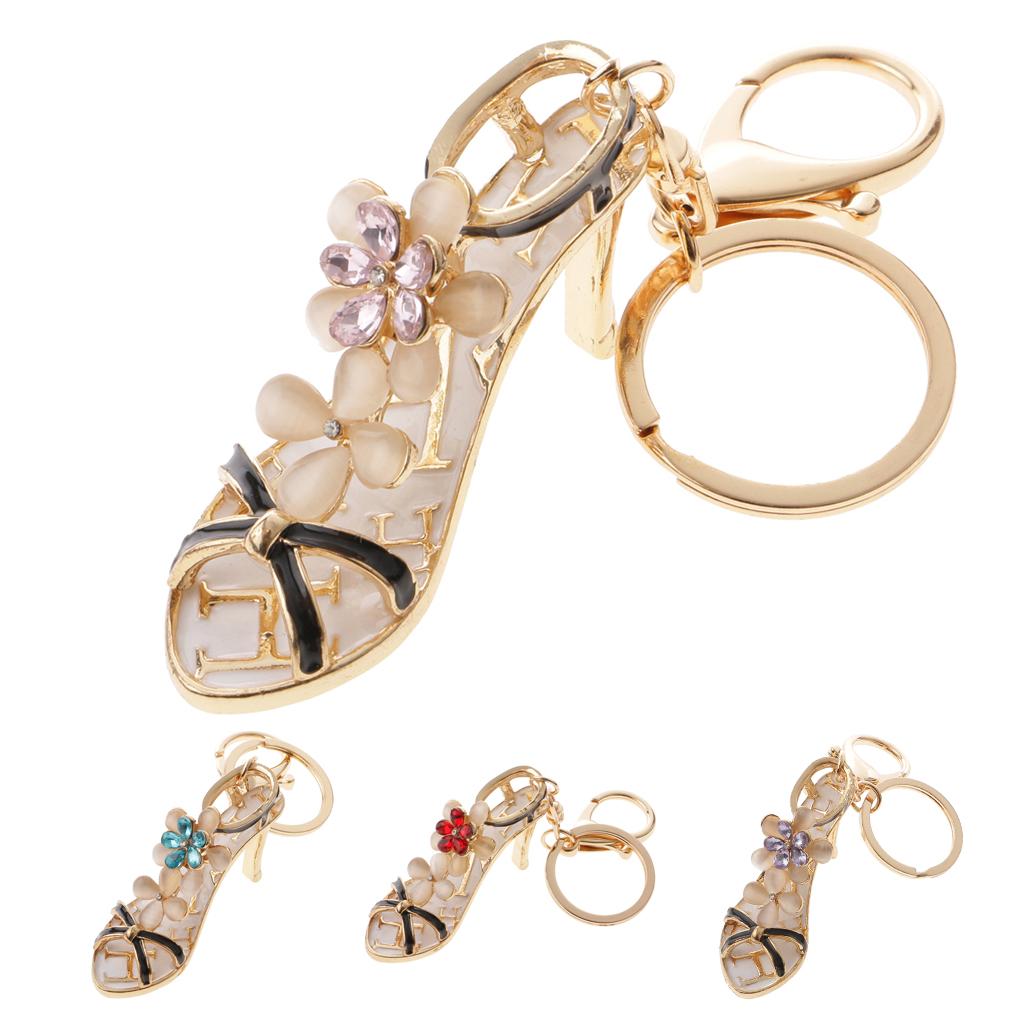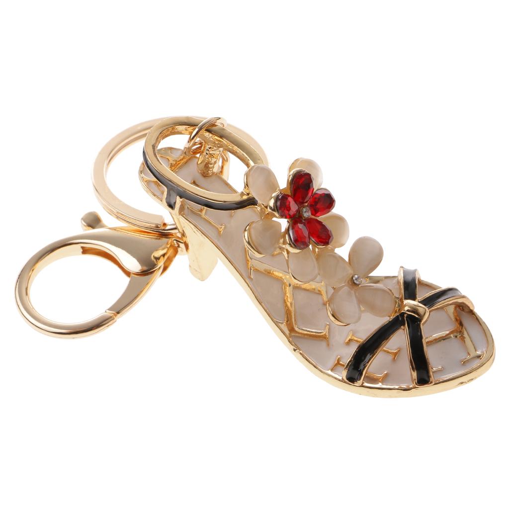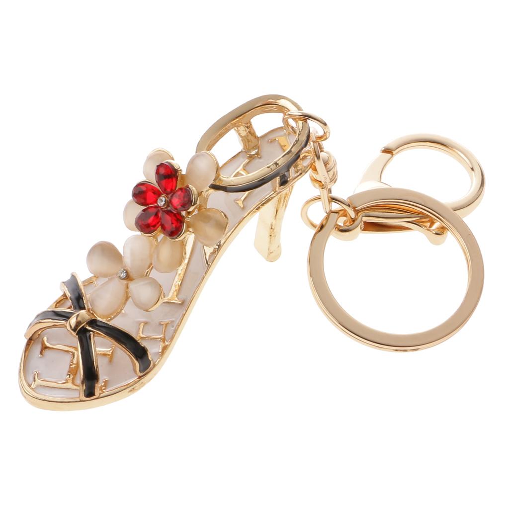 Opal Crystal High-heeled Shoes Crystal Keyring Keychain Purse Bag Key Chain Ring Red