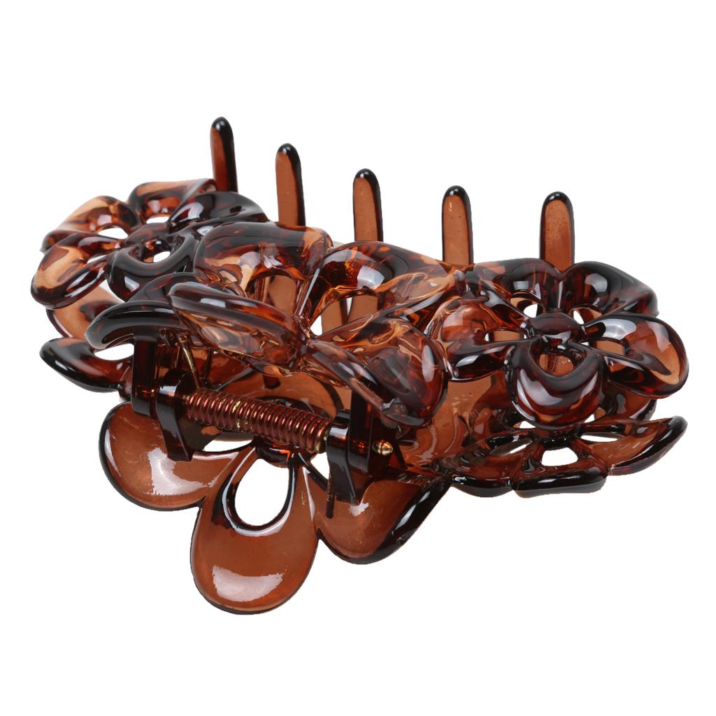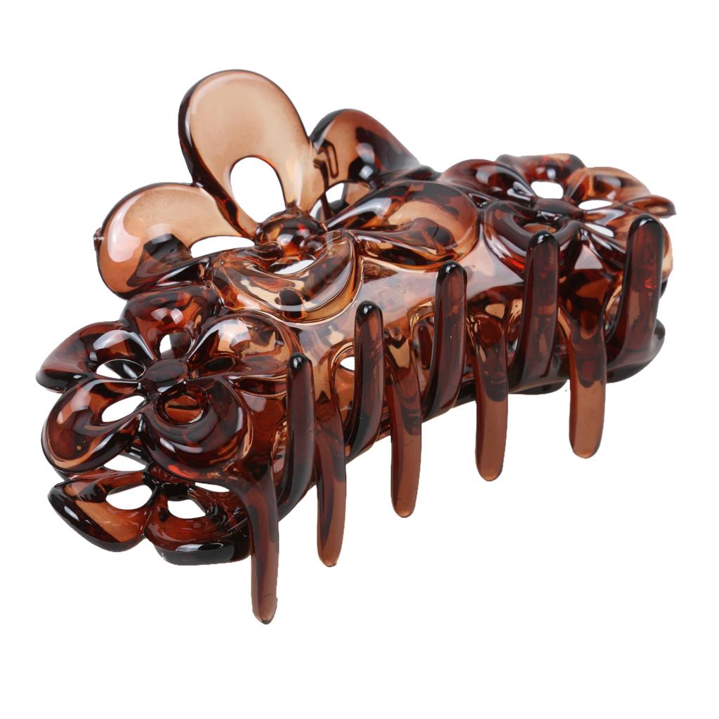 Phenovo Large Flowers Floral Hair Clamp Claw Clip Comb Grip Brown