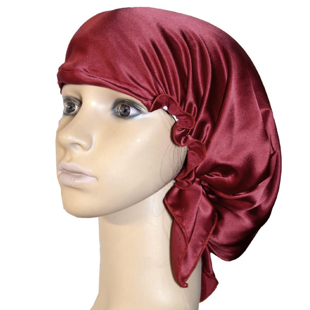 Phenovo Pure Silk Sleeping Cap Night Head Cover Bonnet Beanie Hat Wine Red