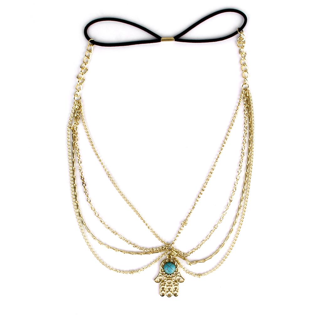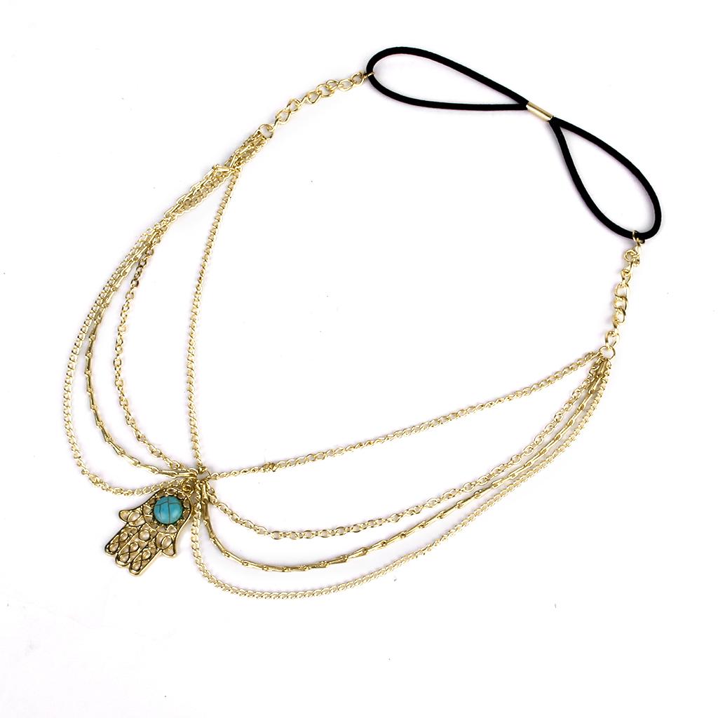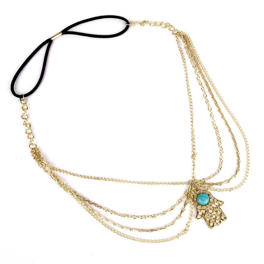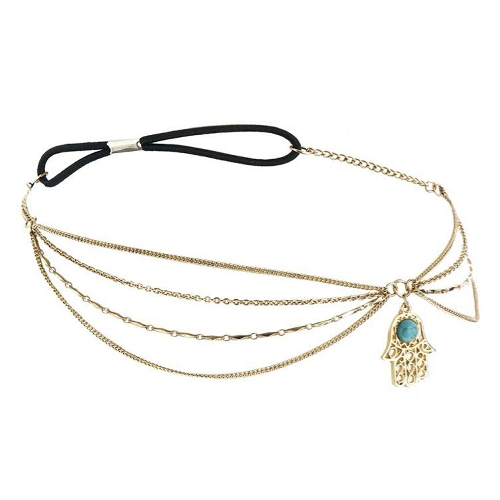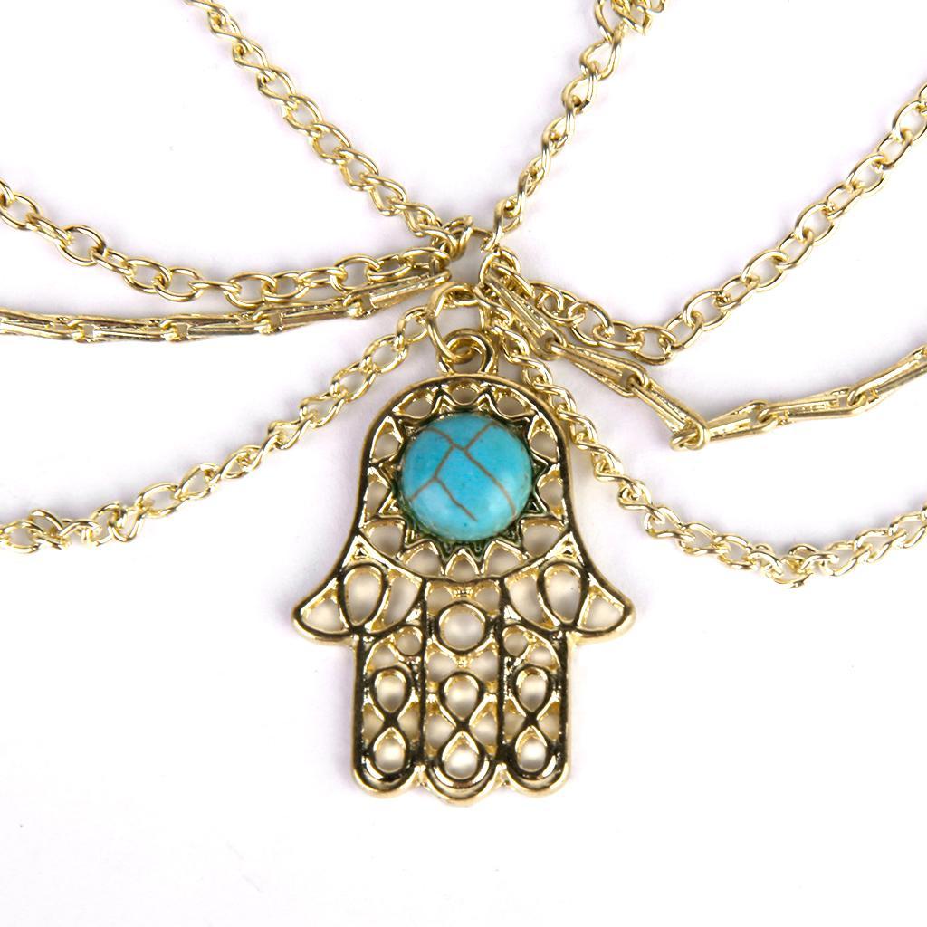Phenovo Turquoise Palm Pendant Head Chain Headband Head Piece Hair band