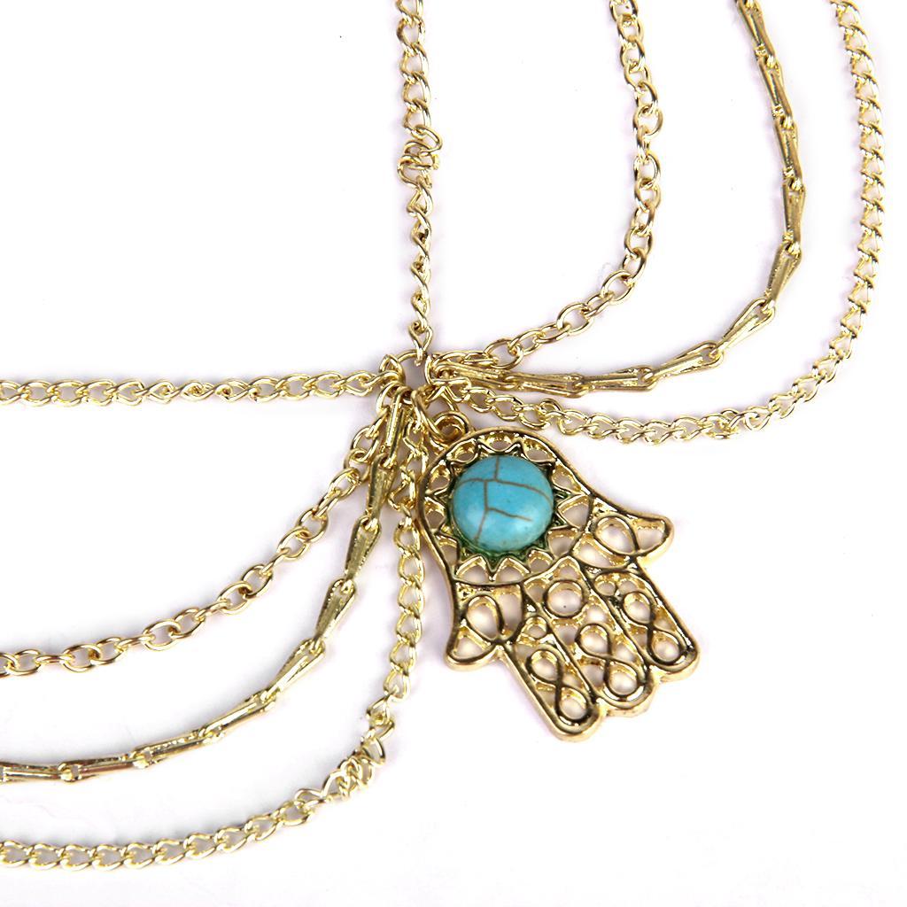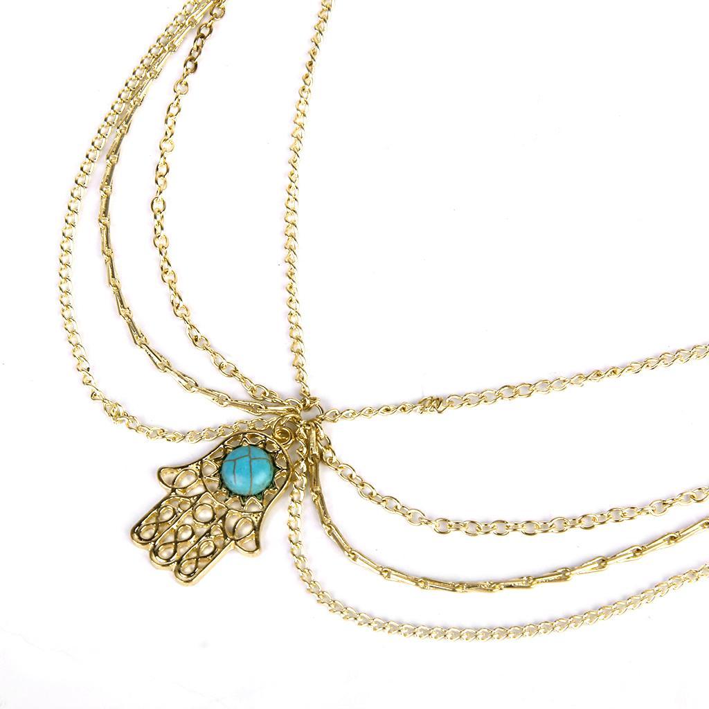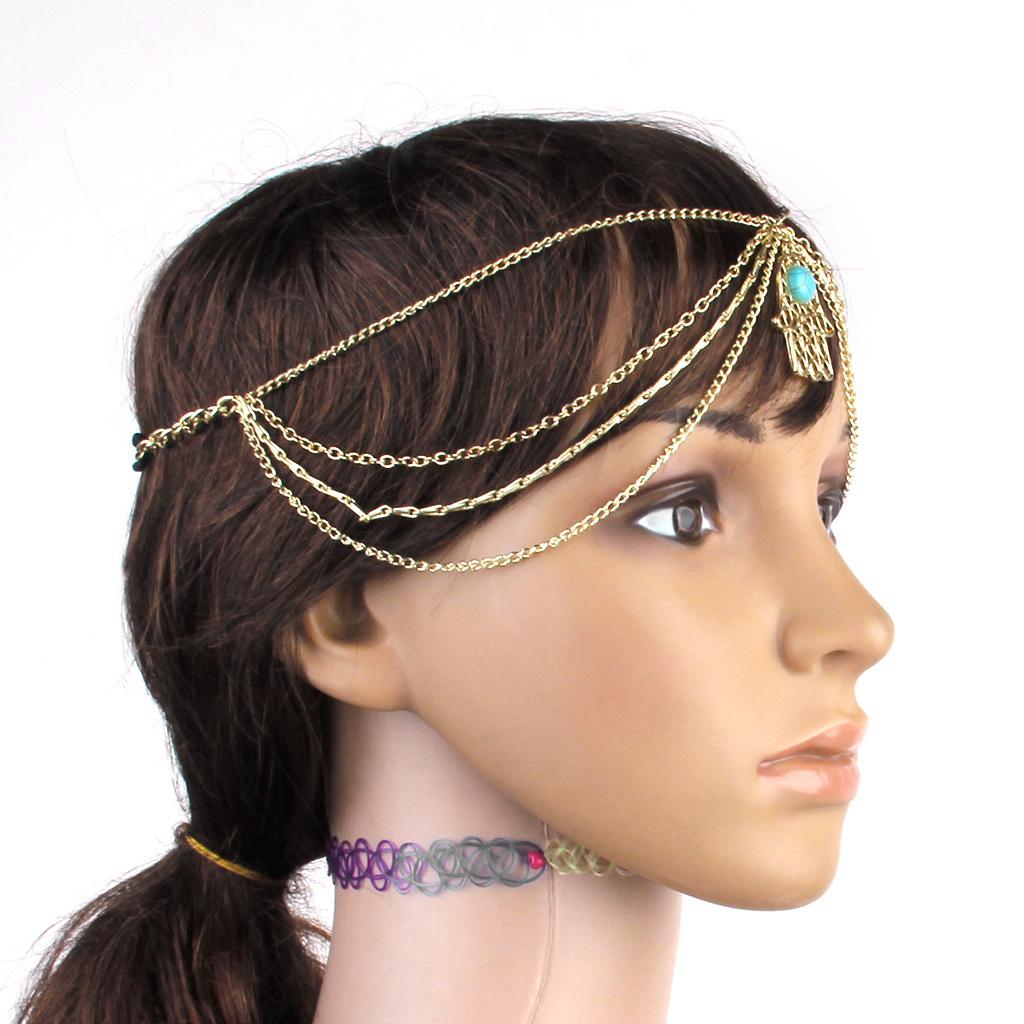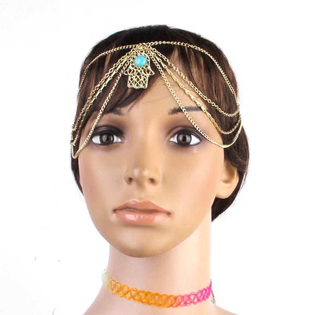 Phenovo Turquoise Palm Pendant Head Chain Headband Head Piece Hair band