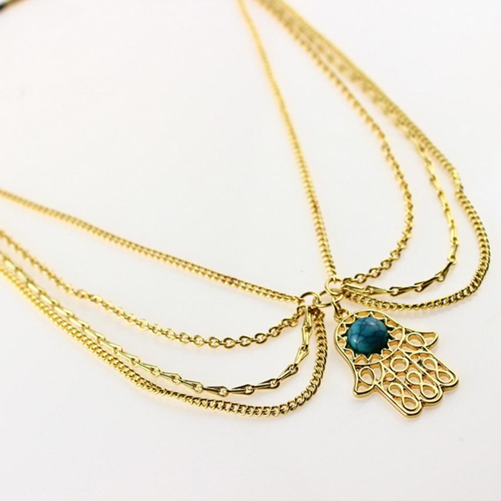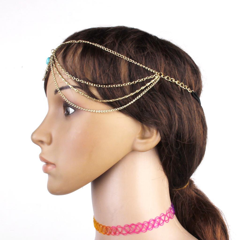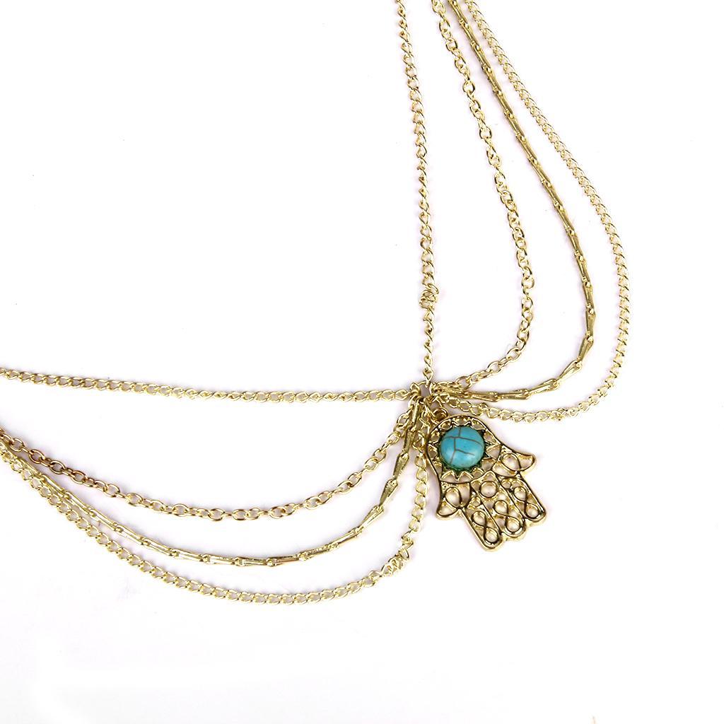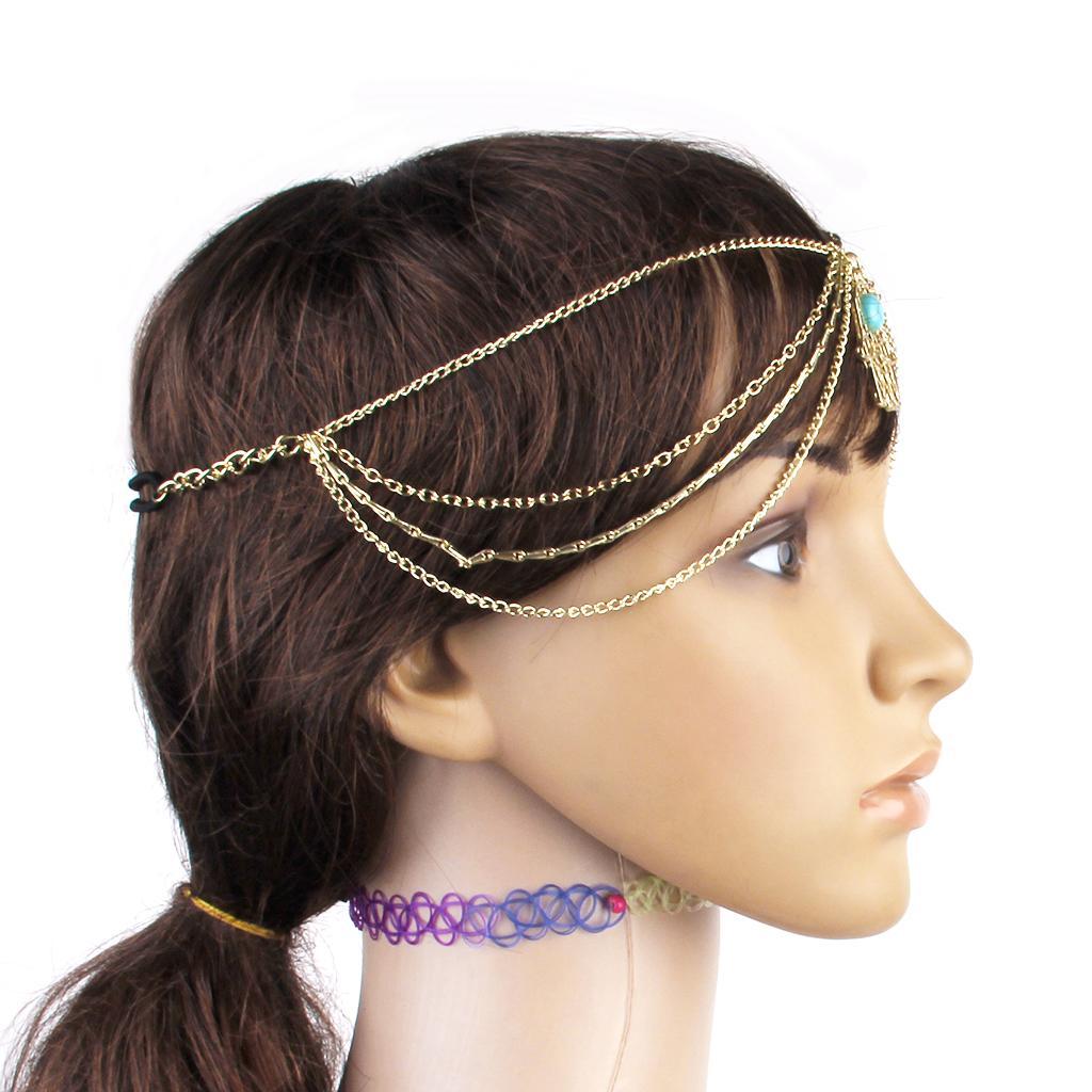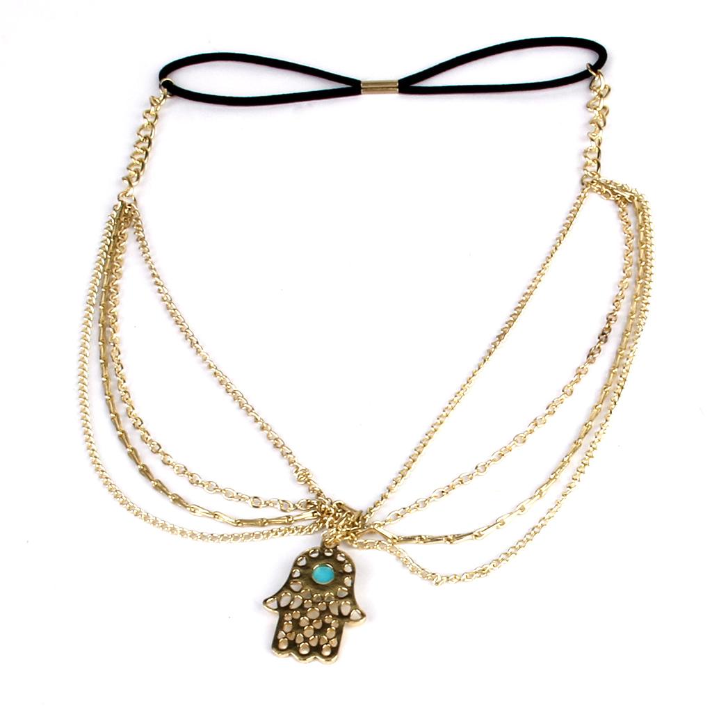Phenovo Turquoise Palm Pendant Head Chain Headband Head Piece Hair band