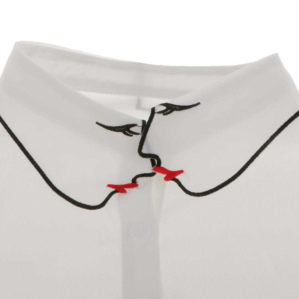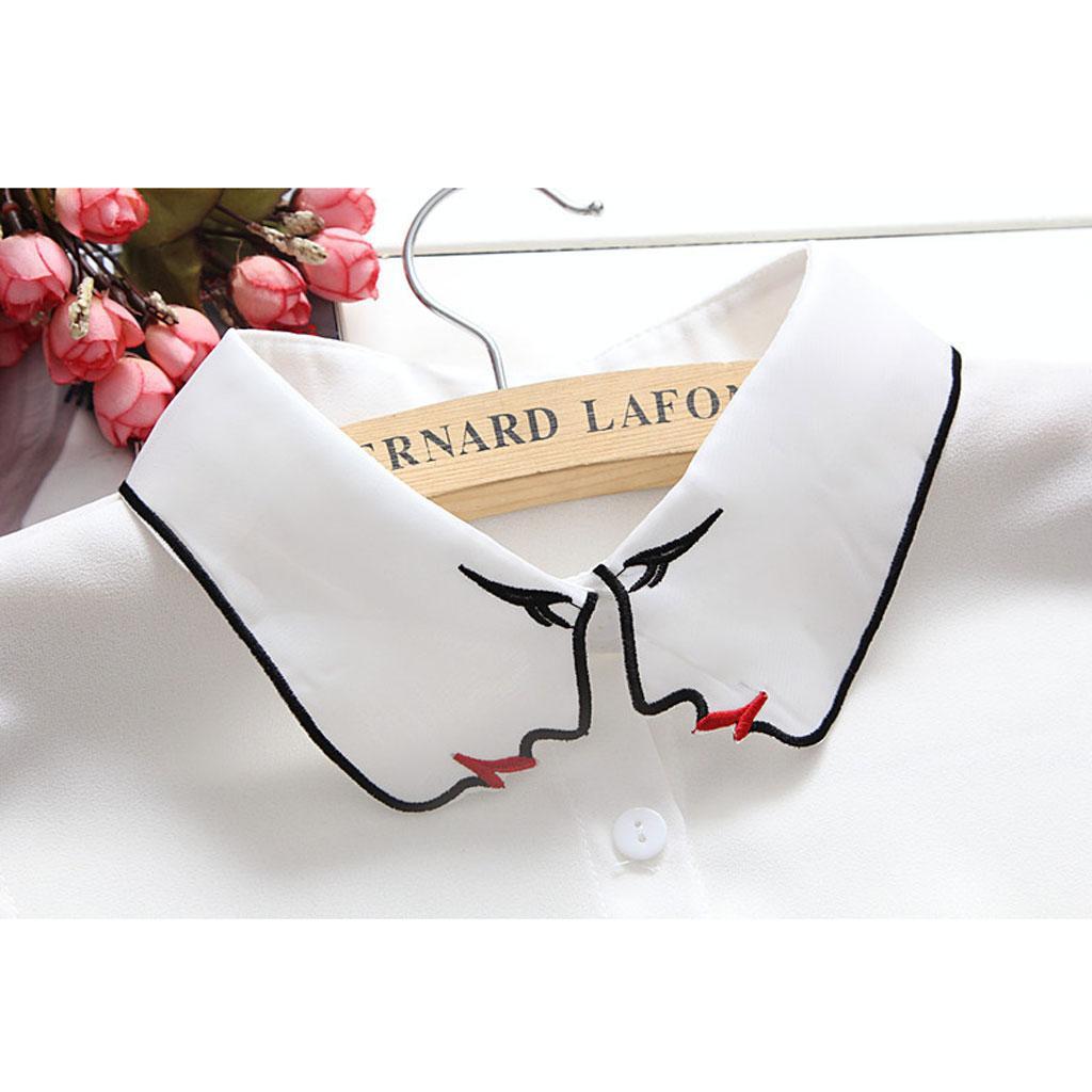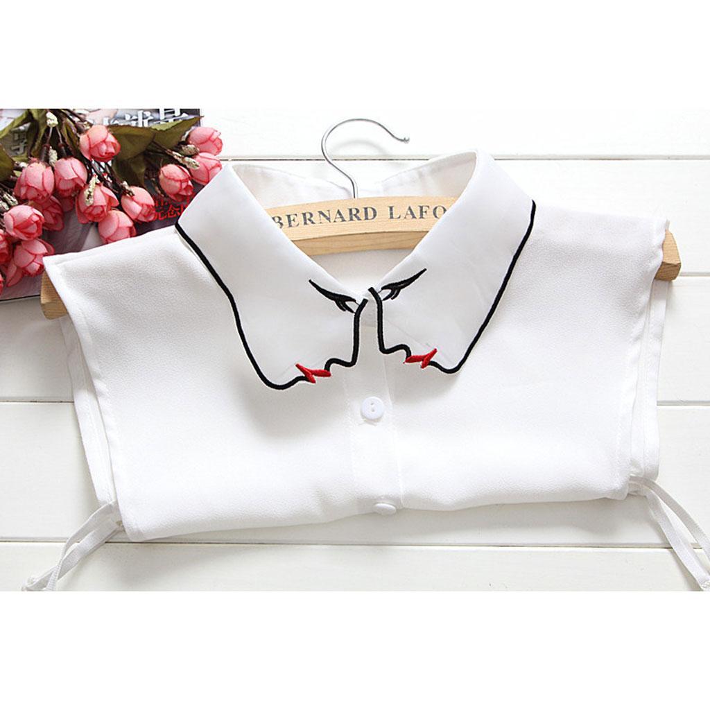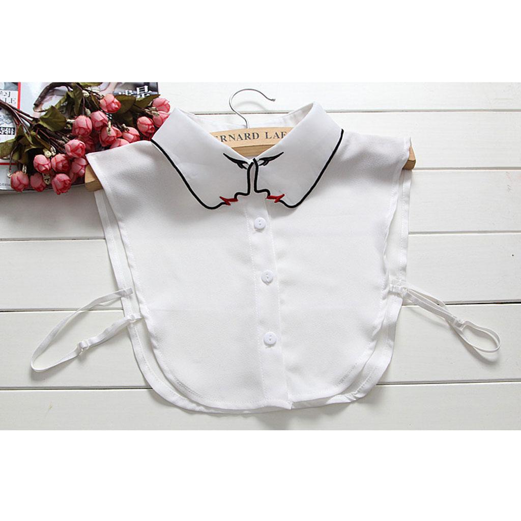 Phenovo Womens Embroidered Half Shirts Detachable Blouse Faux Collar White