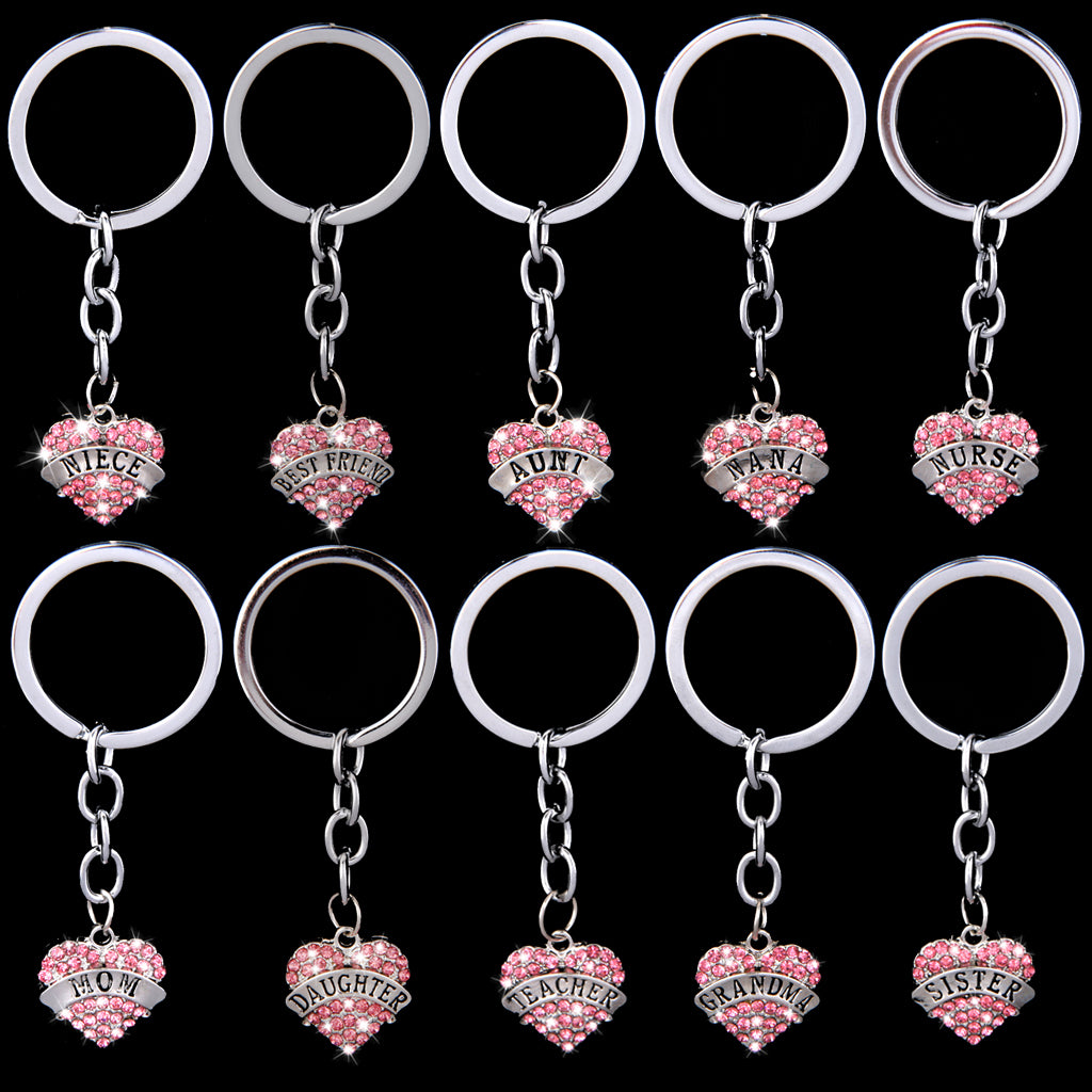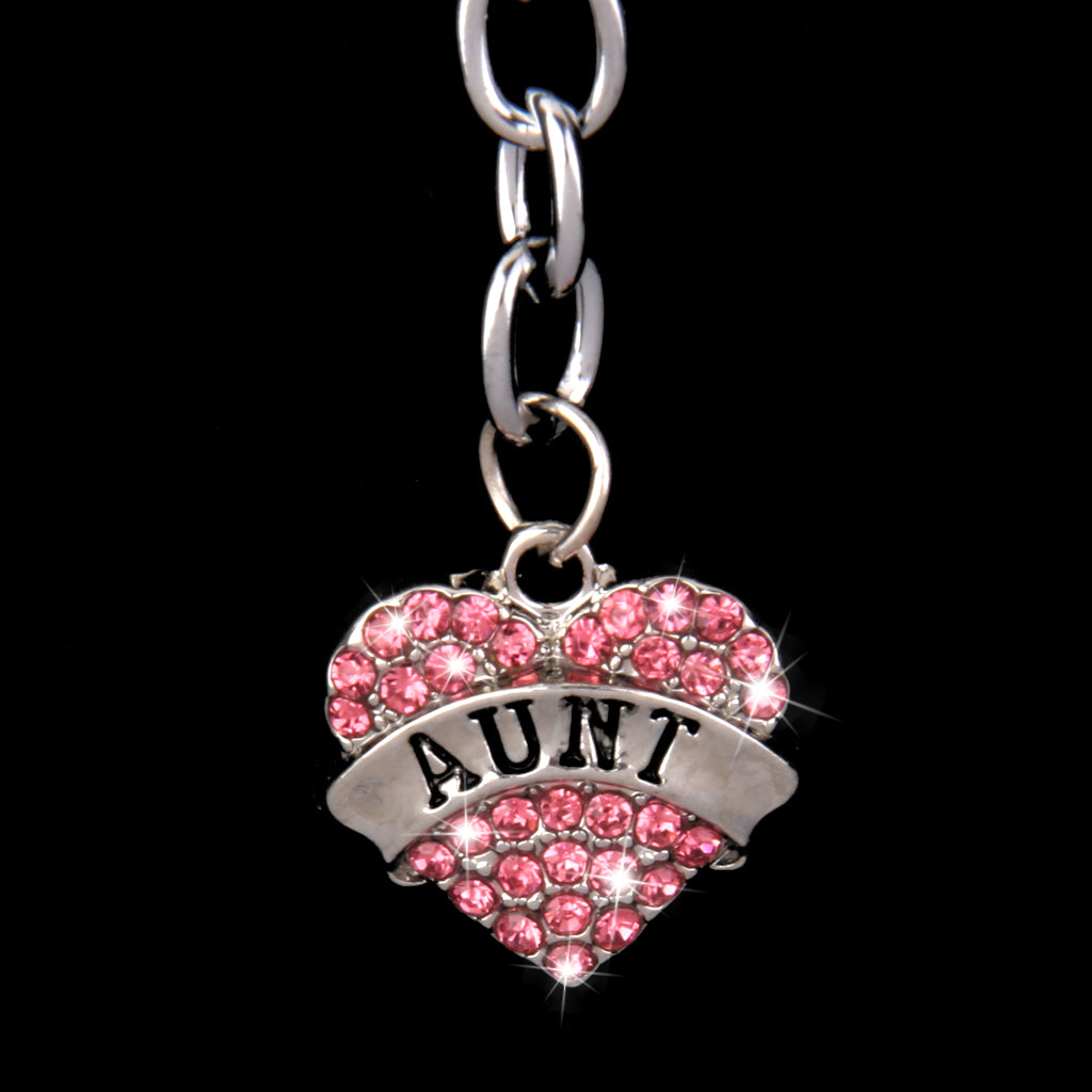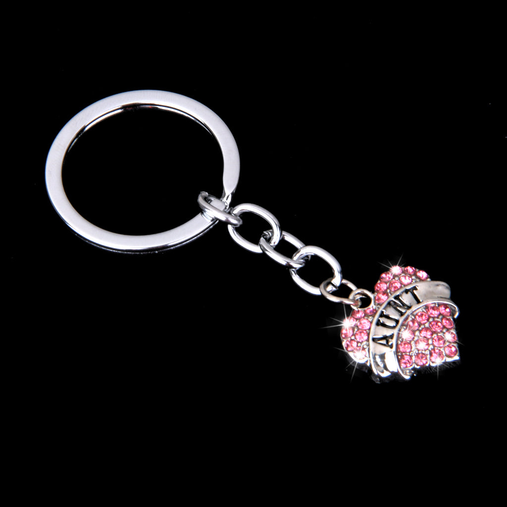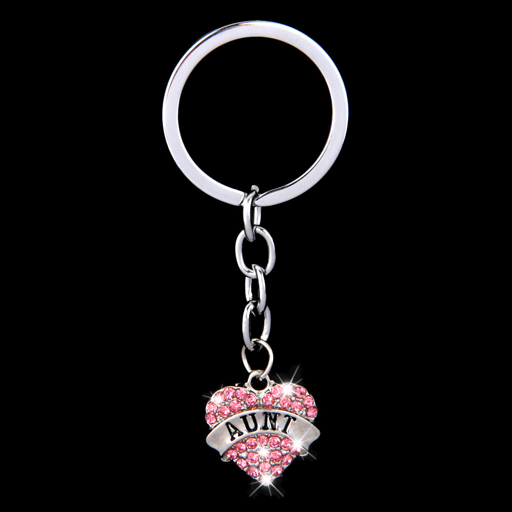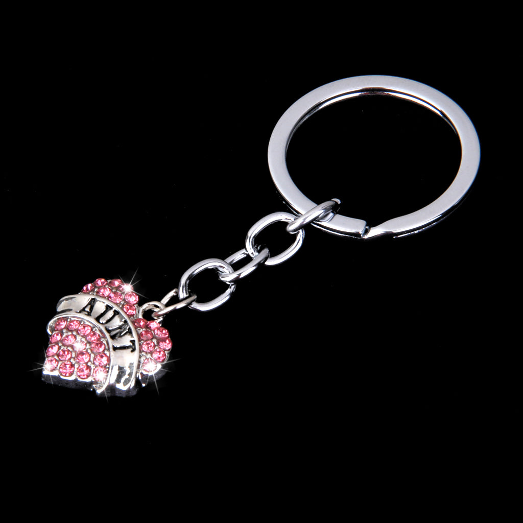 Pink Crystal Rhinestone Heart Pendant Keyring Keychain Key Chain--aunt