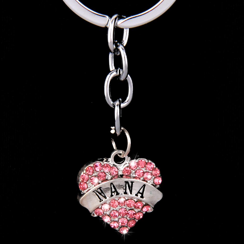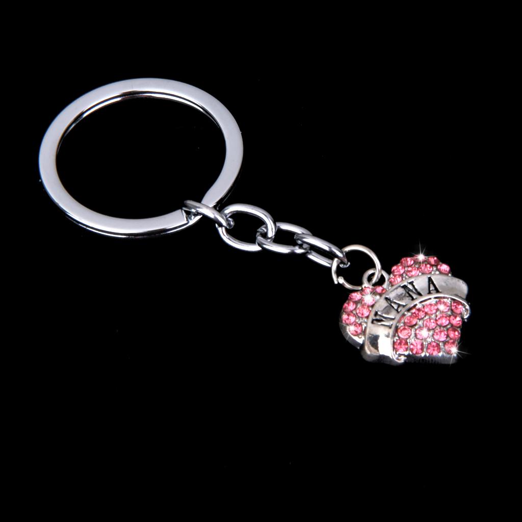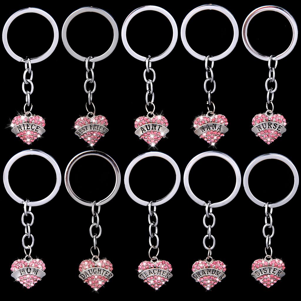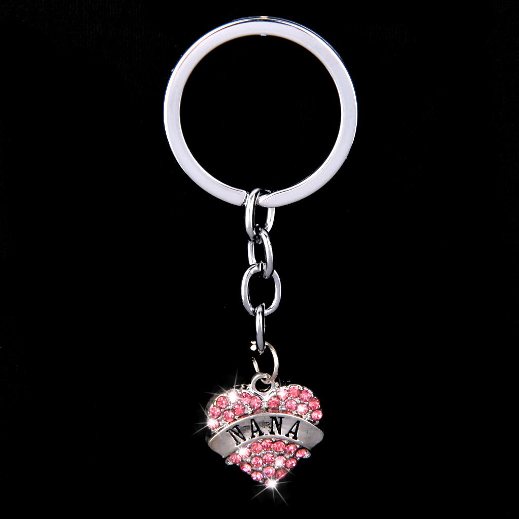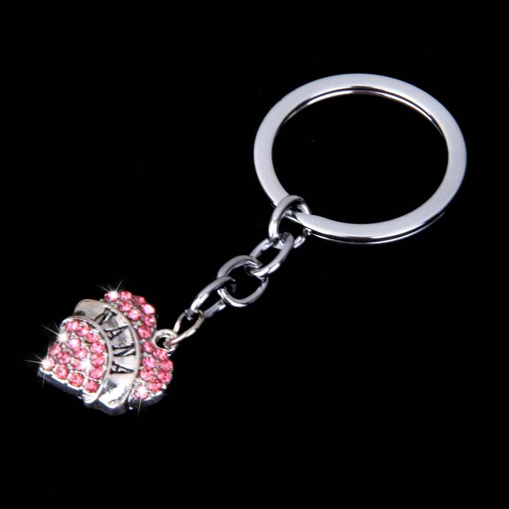 Pink Crystal Rhinestone Heart Pendant Keyring Keychain Key Chain-nana