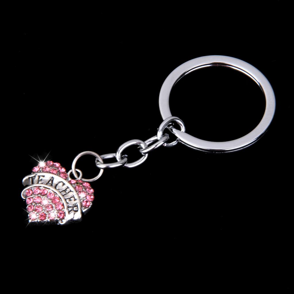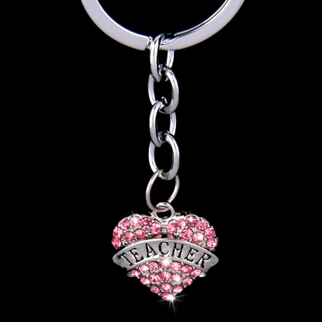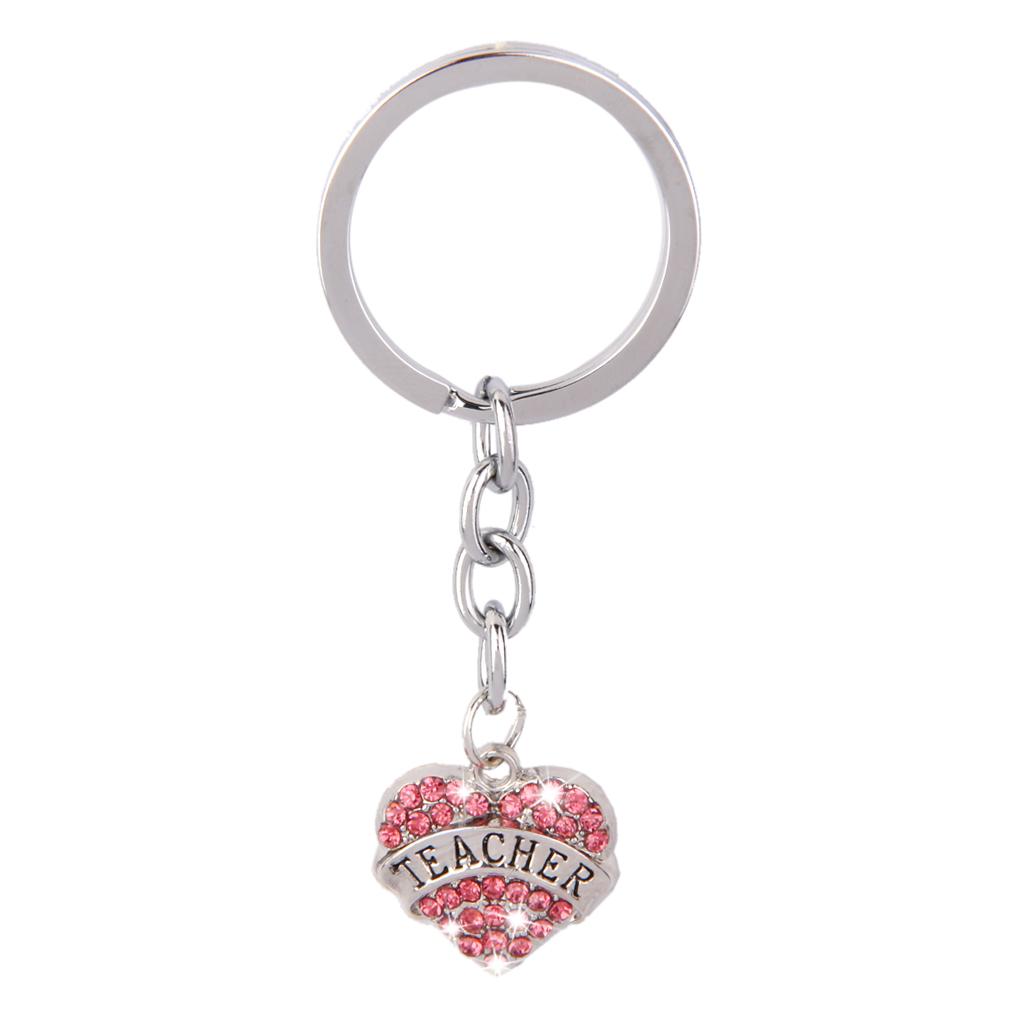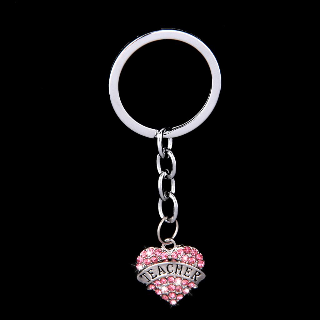 Pink Crystal Rhinestone Heart Pendant Keyring Keychain Key Chain--teacher