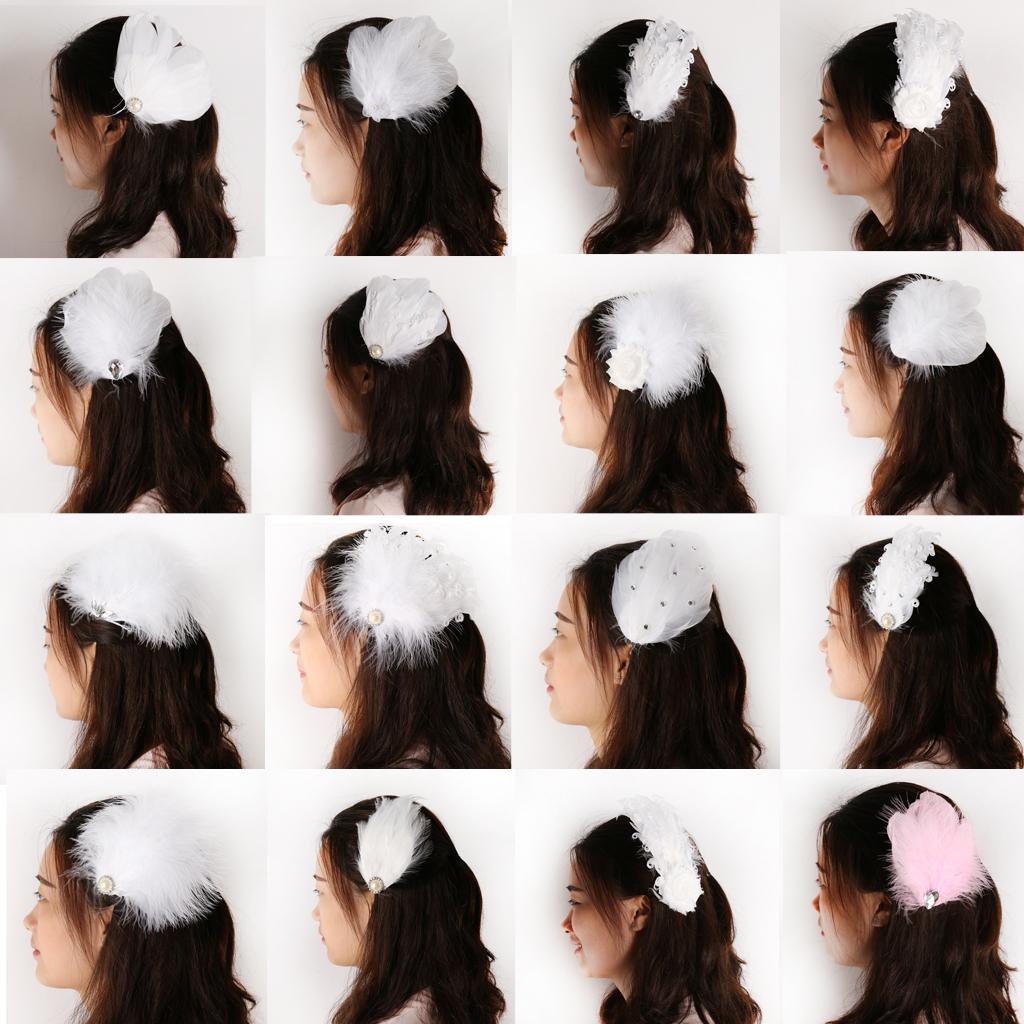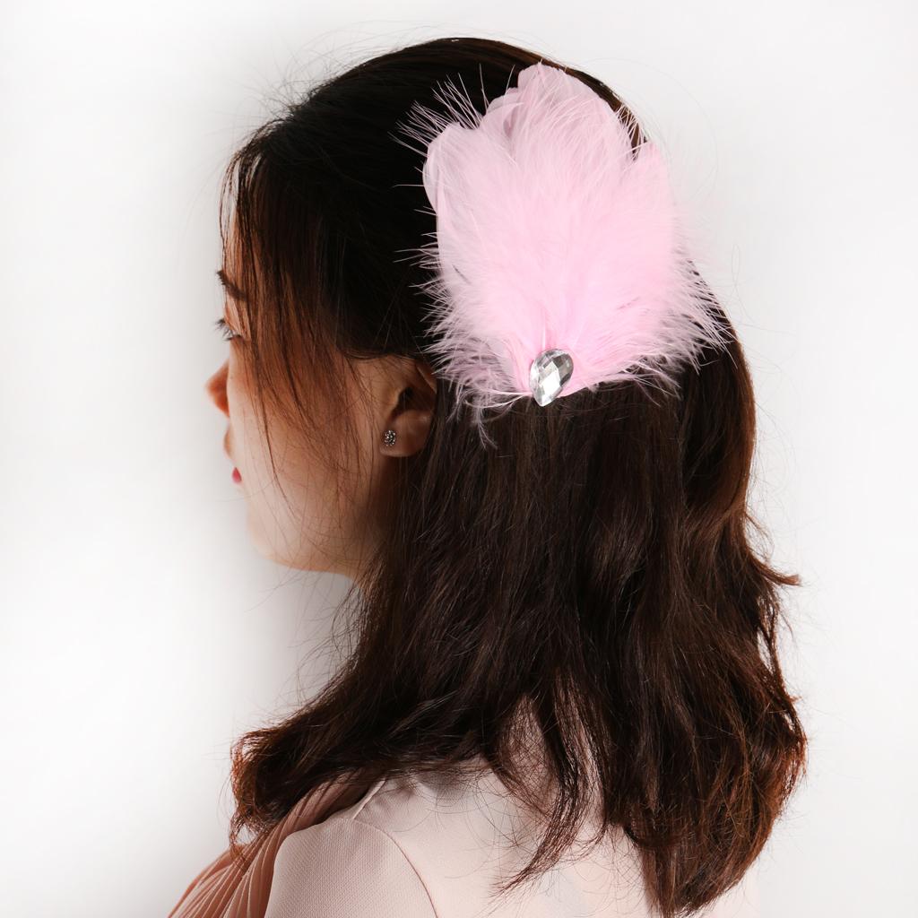• Fluffy Feather Hair Clip Rhinestone Hair Fascinator Wedding Party Ladies Bridal Hair Decor