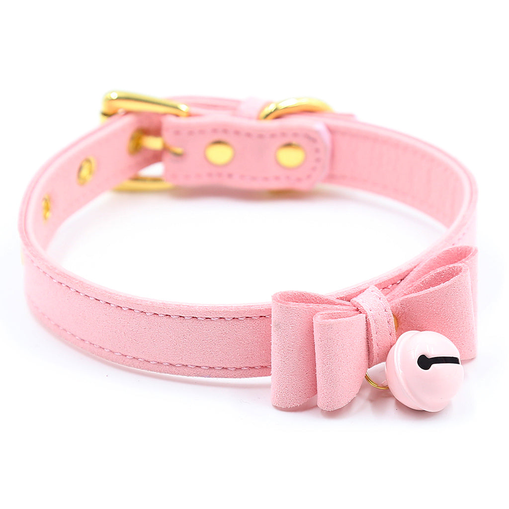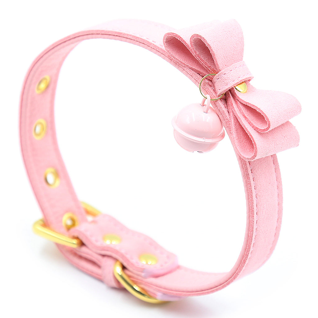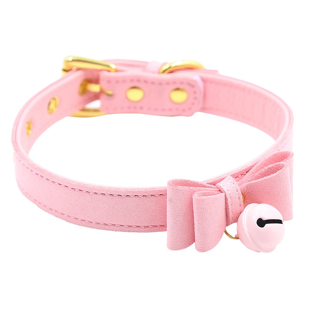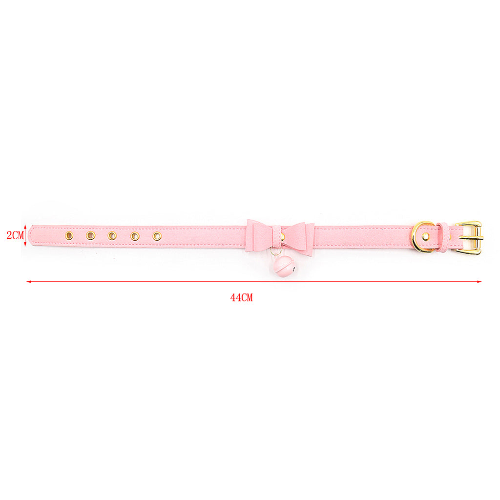 PU Leather Collar Bells Bowknot Pendant Choker Necklace Jewelry