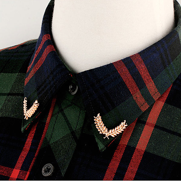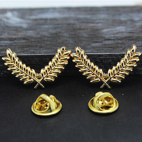 Punk Alloy Metal Carved Gold Wheat Women Shirt Clip Jewelry Collar Brooch Pin Tip