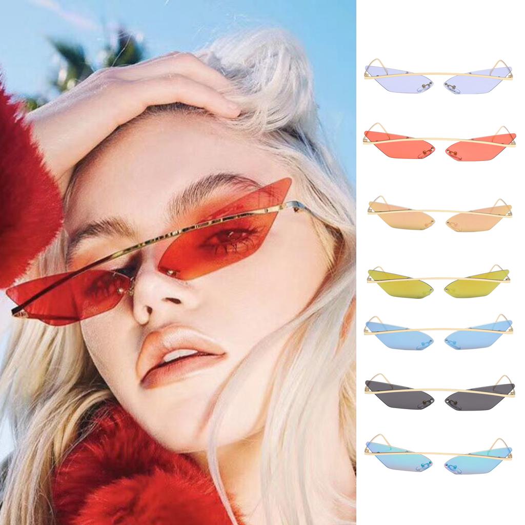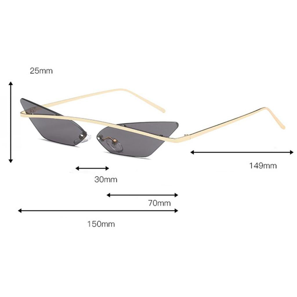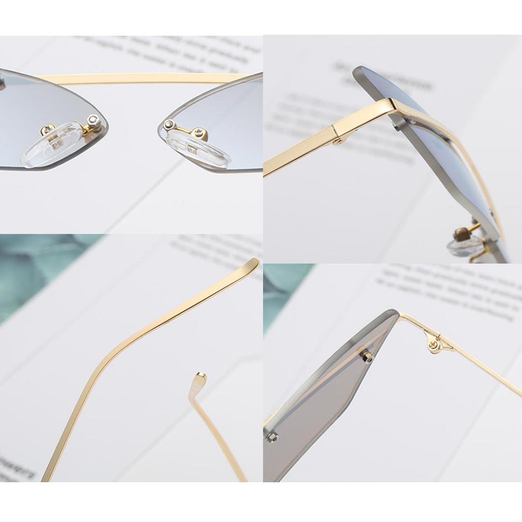 Chic small narrow cat eye shaped transparent lens, rimless, non-polarized, suitable for women and men