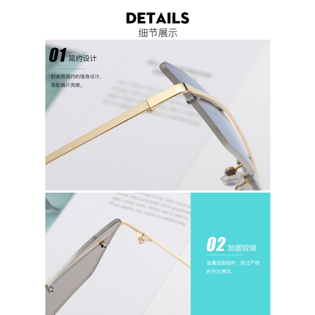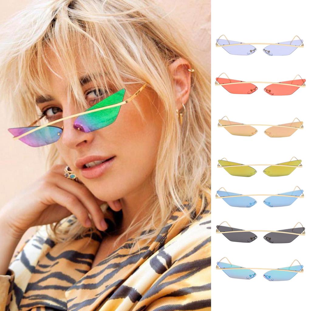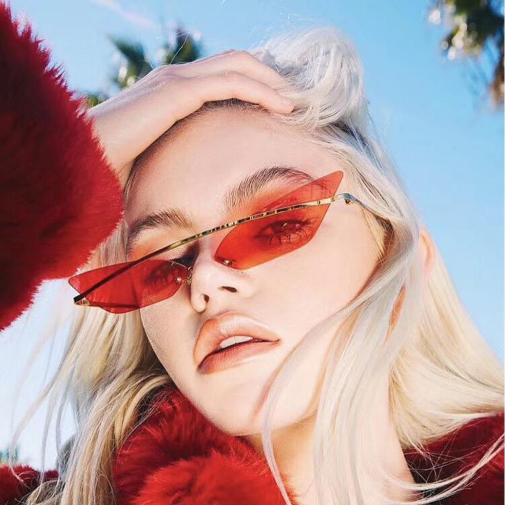 Chic small narrow cat eye shaped transparent lens, rimless, non-polarized, suitable for women and men