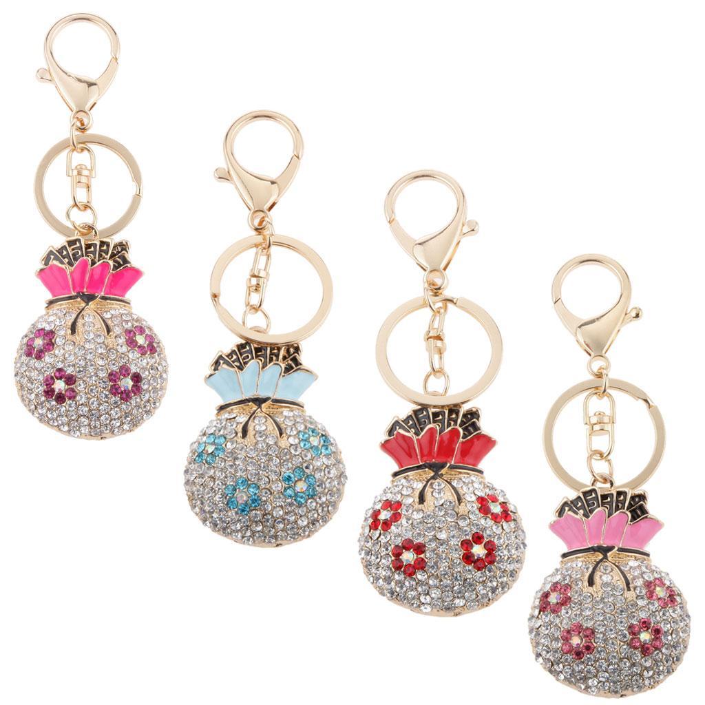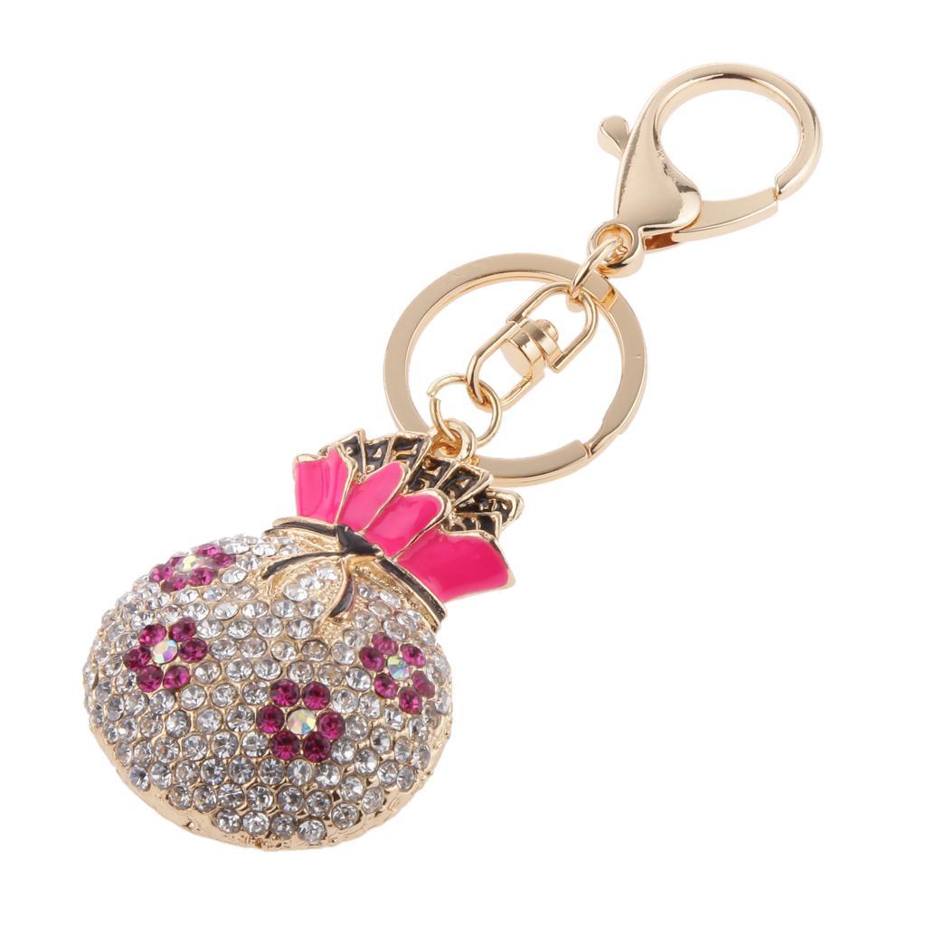 Rhinestone Crystal Bag Pendant Plum Flower Money Bags Pendant Keyring Keychain Handbag Hook Holder Plum Red