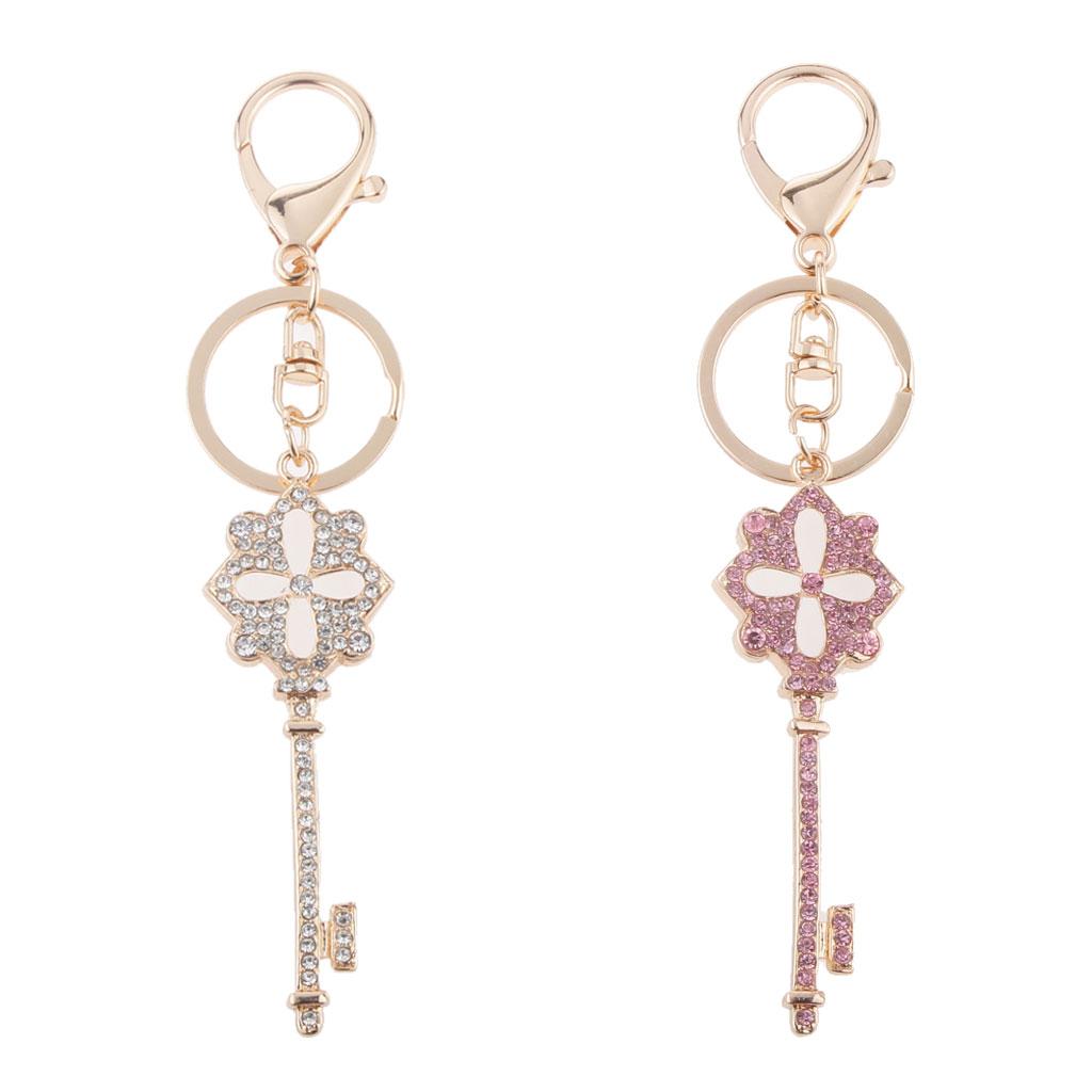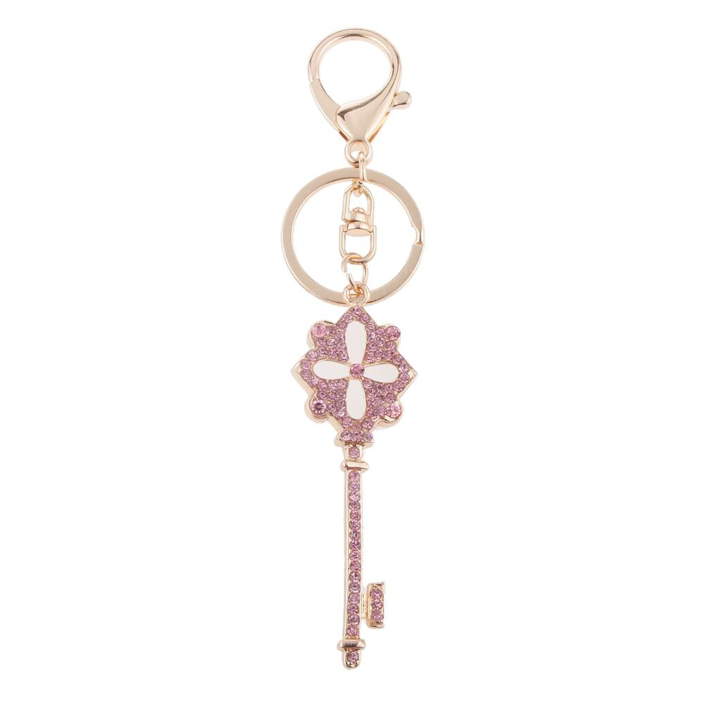 Rhinestone Crystal Car Key Hanger Wisdom Door Key Pendant Key Ring Keyfobs Pink