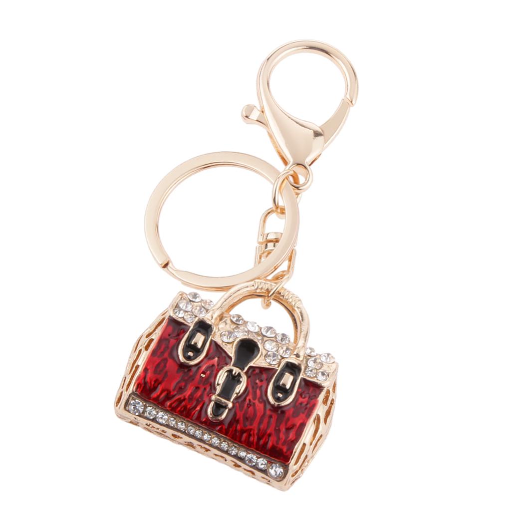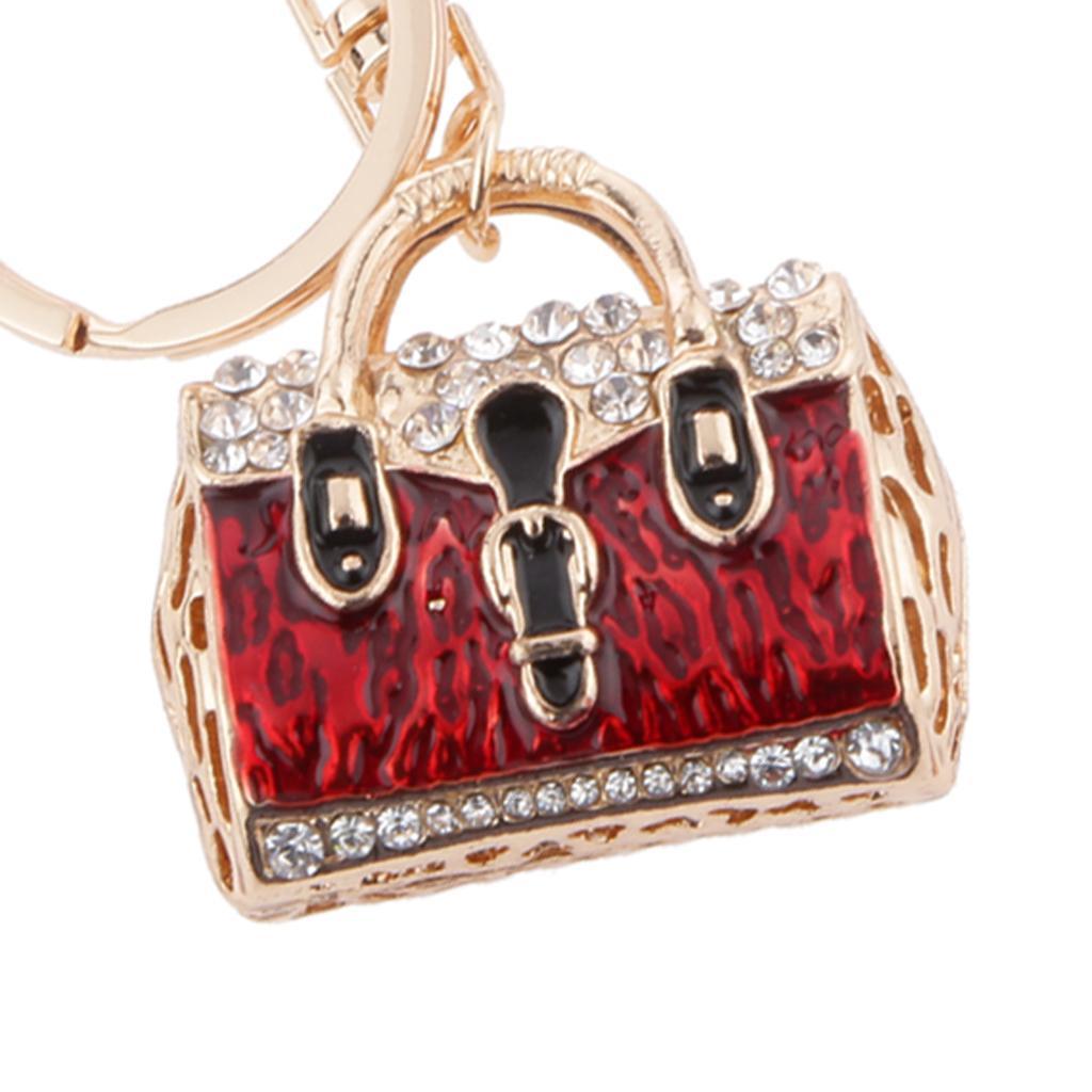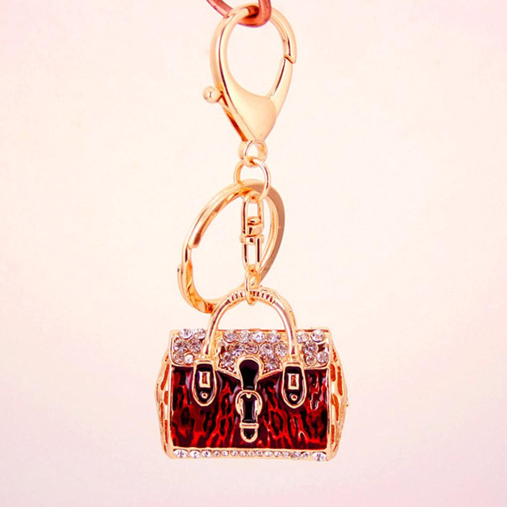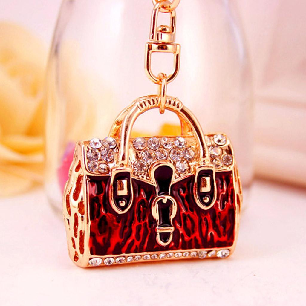 Rhinestone Crystal Fashion Ladies Handbag Keyring Keychain Red