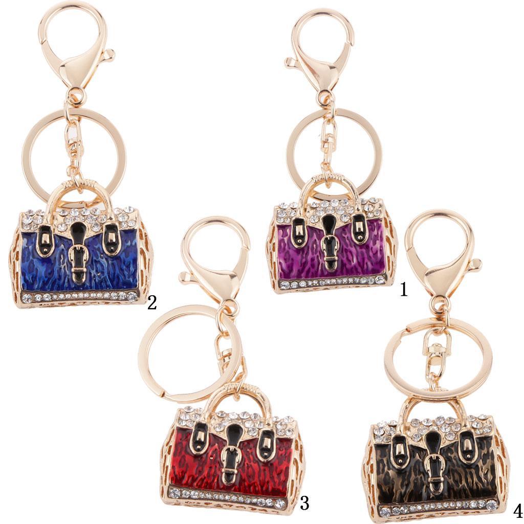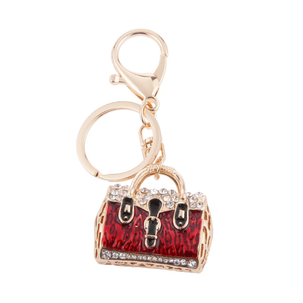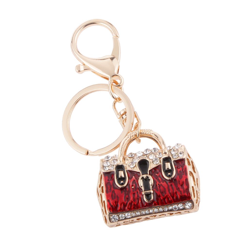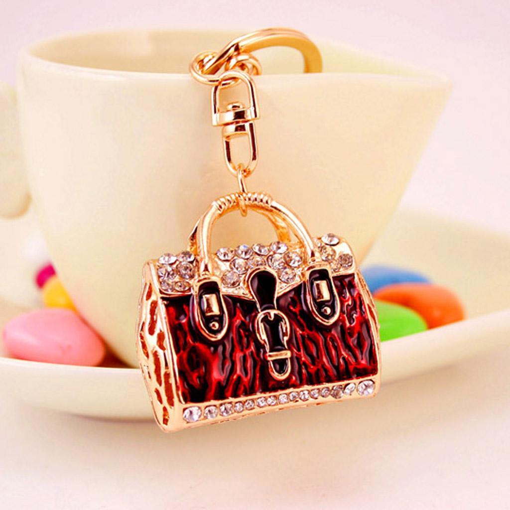 Rhinestone Crystal Fashion Ladies Handbag Keyring Keychain Red