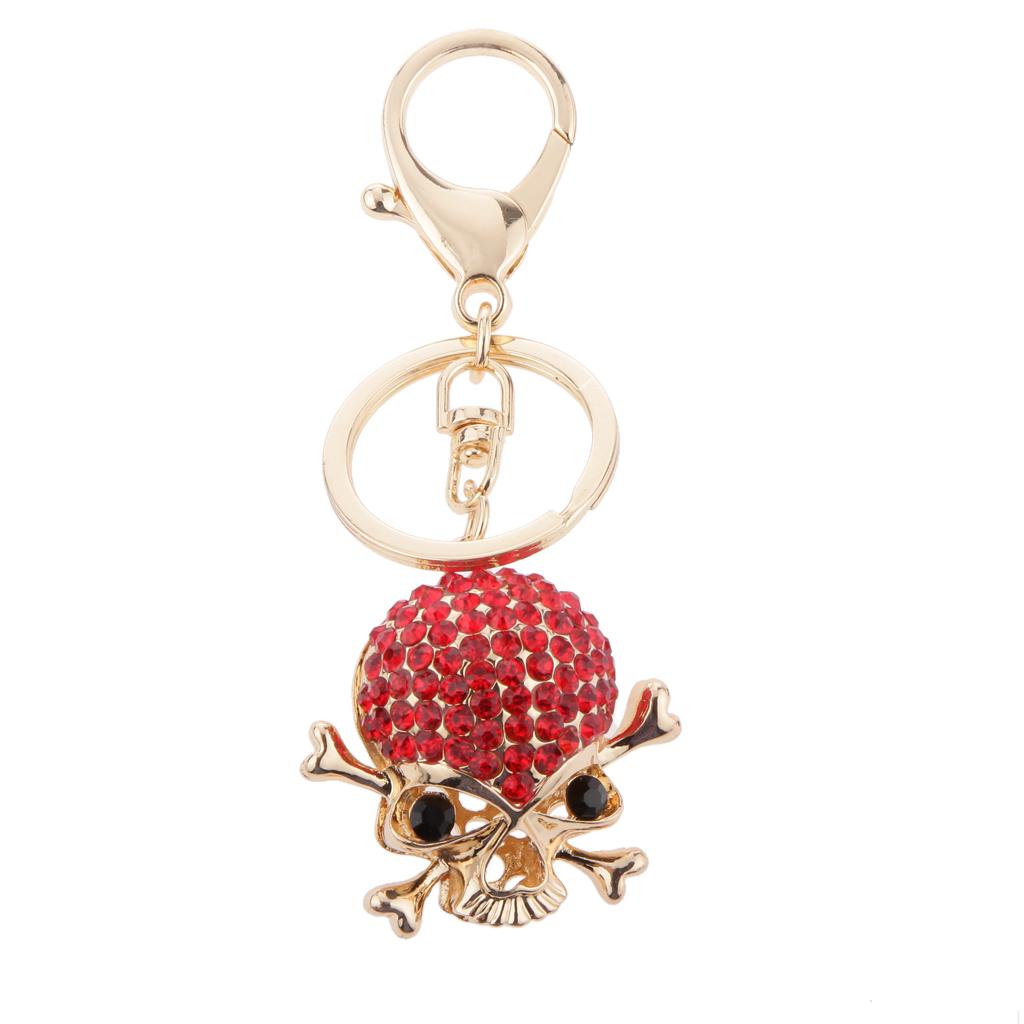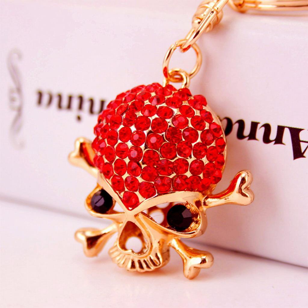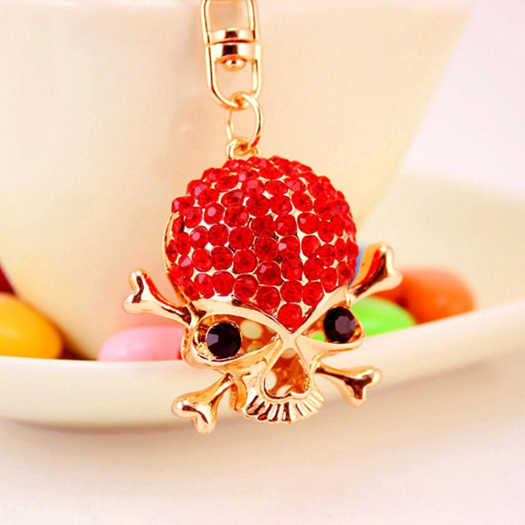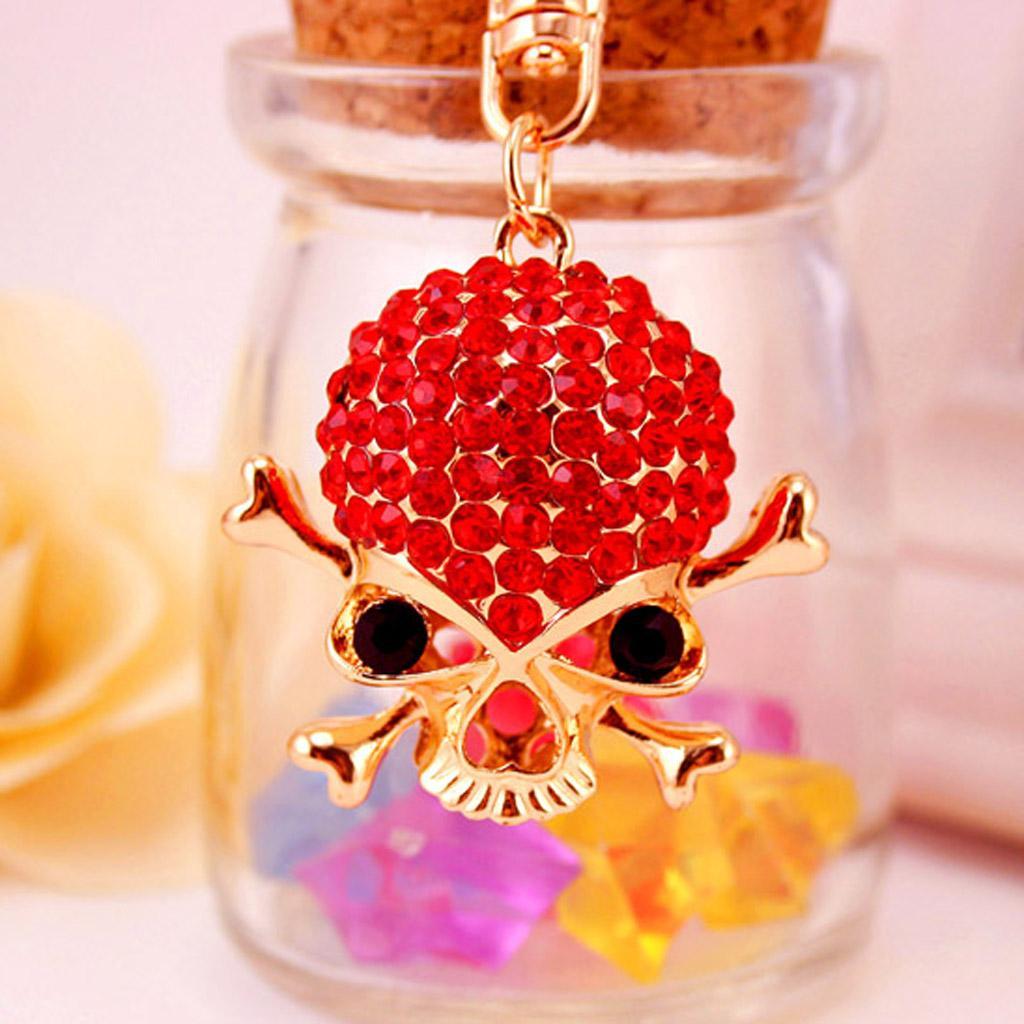 Rhinestone Crystal Fashion Skull Crossbones Keyring Keychain Red