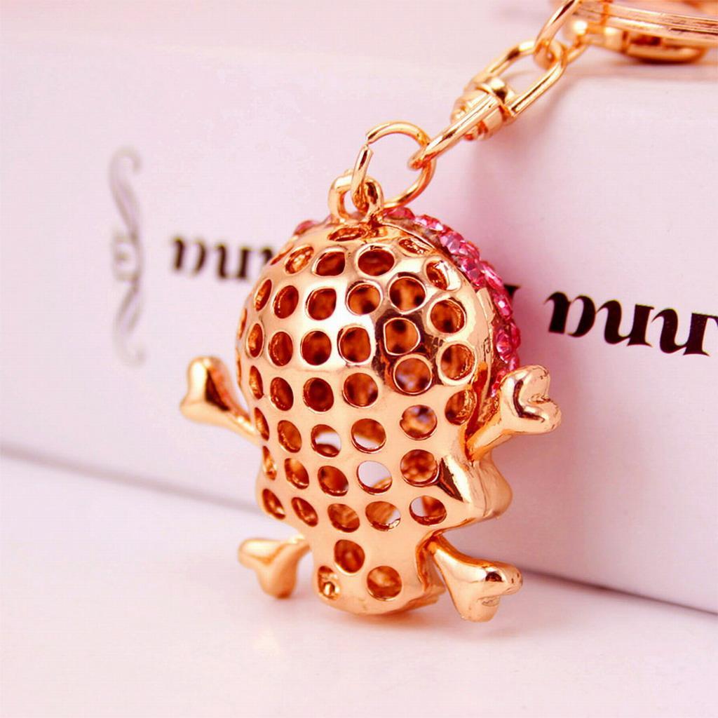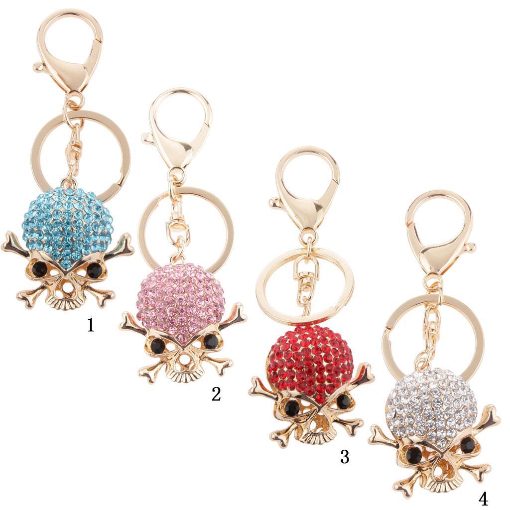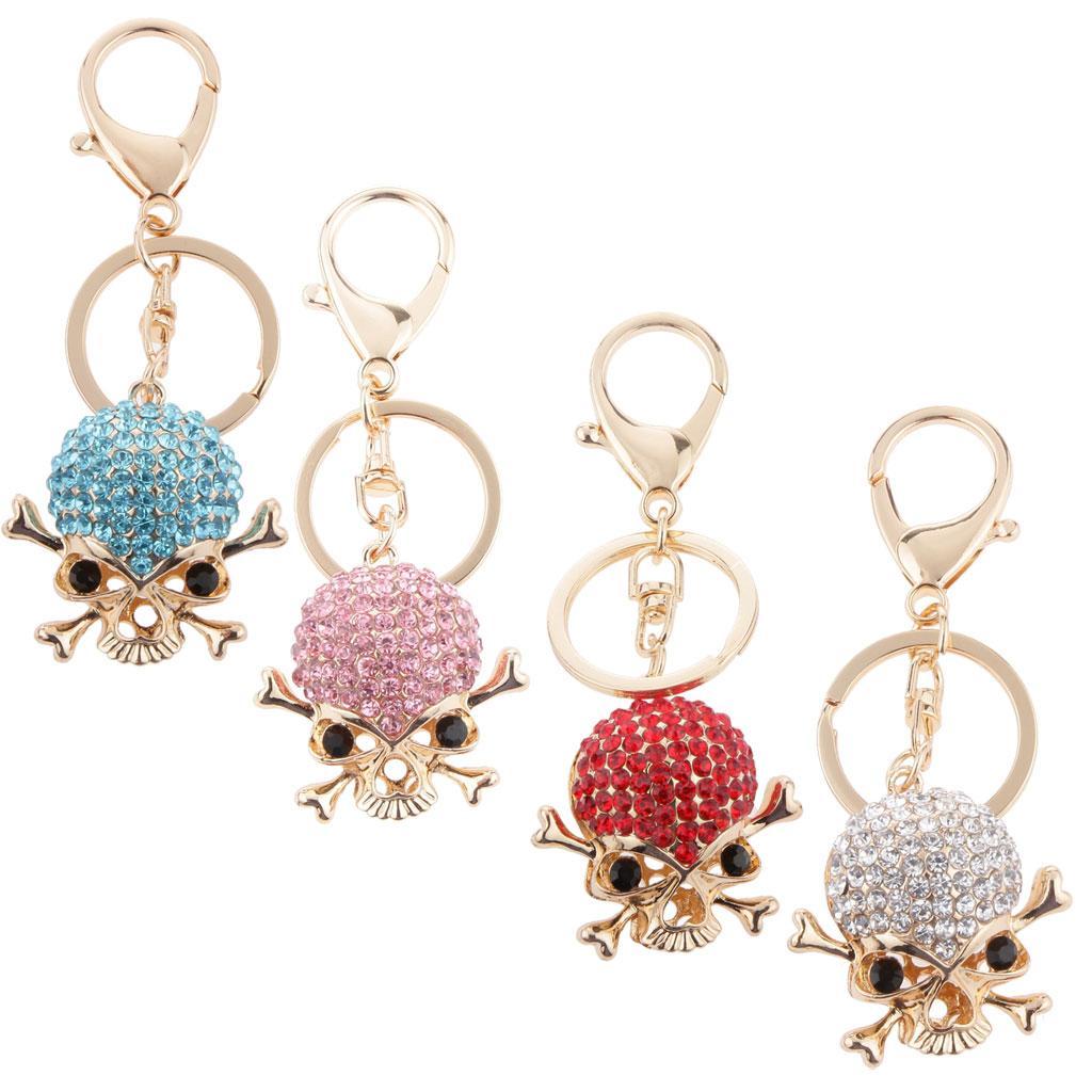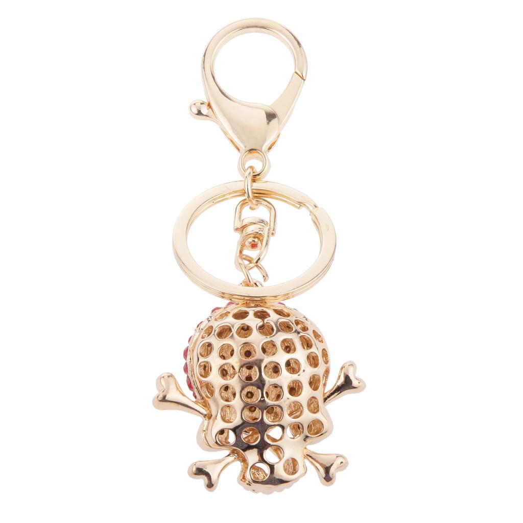 Rhinestone Crystal Fashion Skull Crossbones Keyring Keychain Red