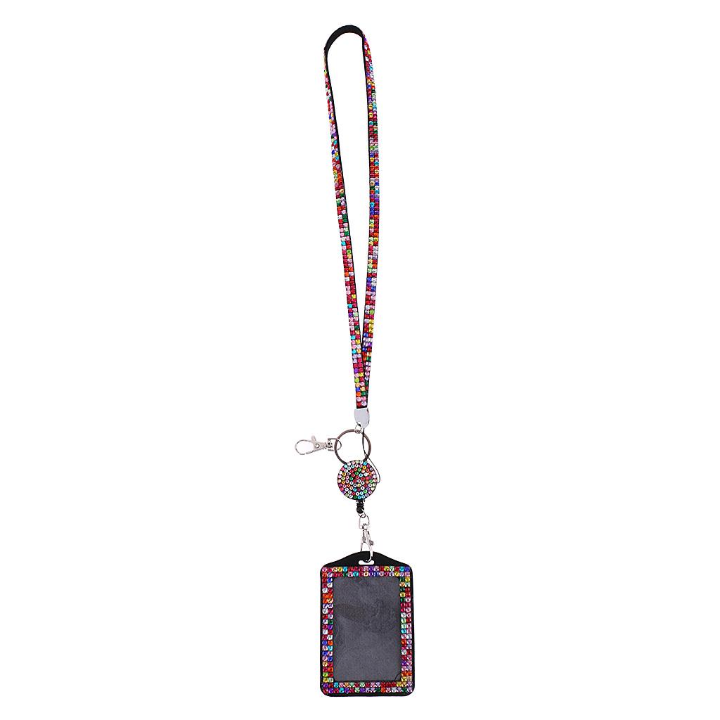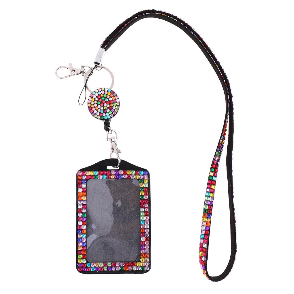 Vertical badge holder,rhinestone lanyard,retractable badge reel,detachable